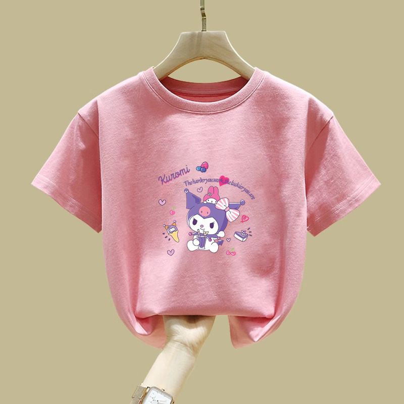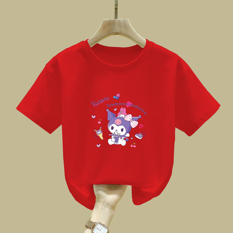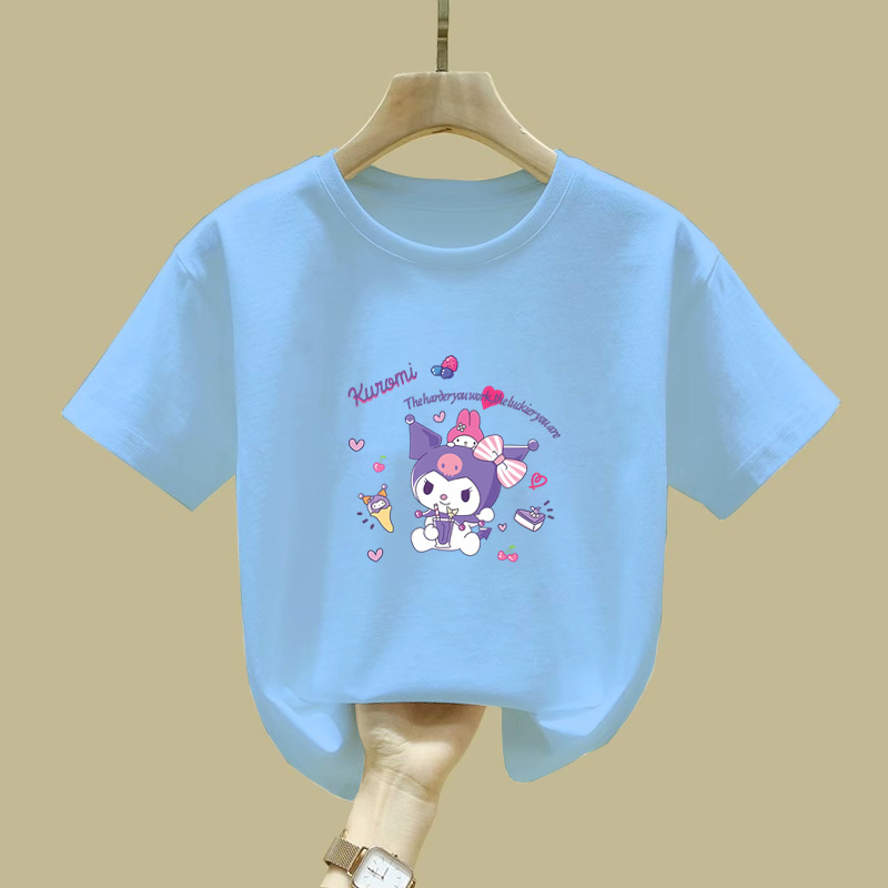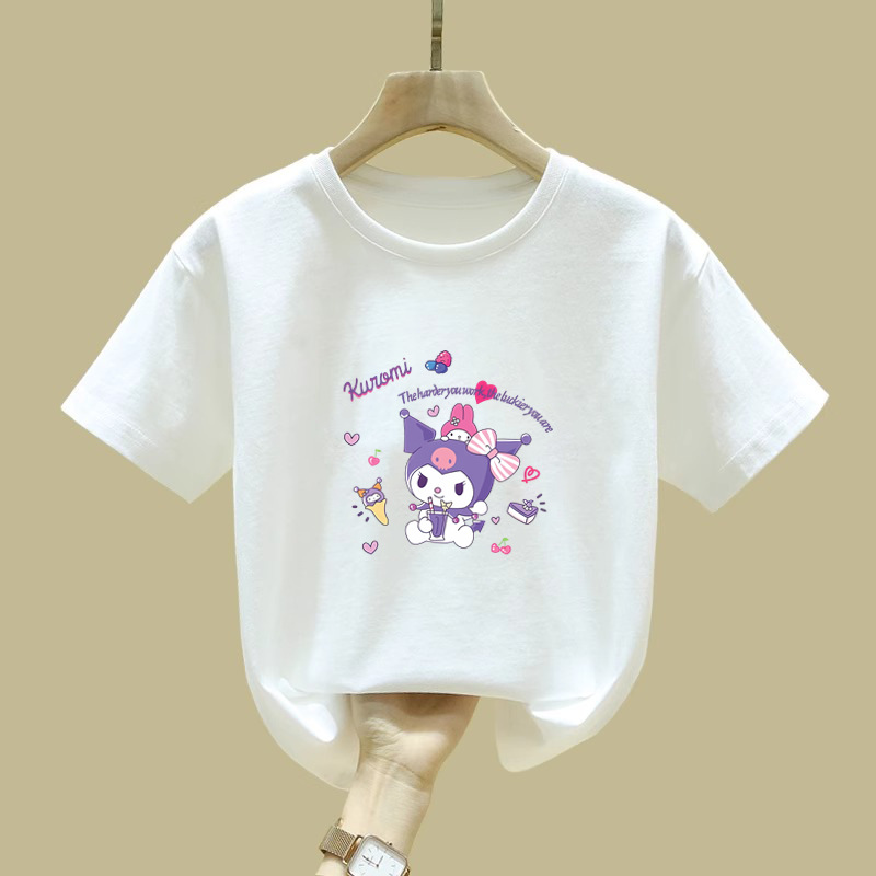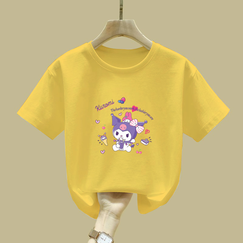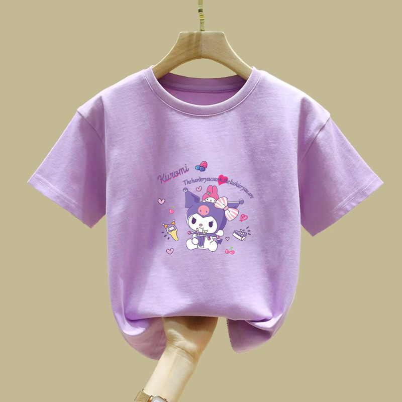 2344 # 여자 면 반소매 티셔츠 2025 새로운 아동복 소녀 여름 반소매 어린이 여름 루즈 티셔츠