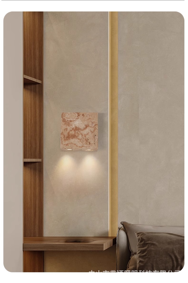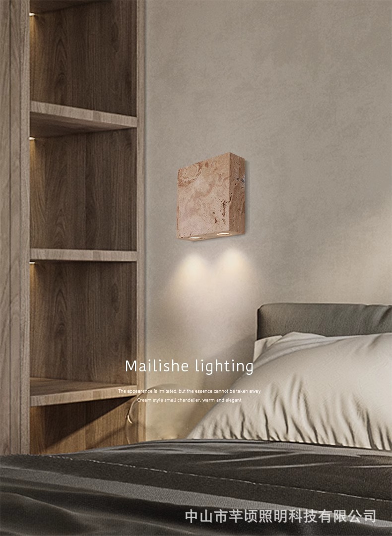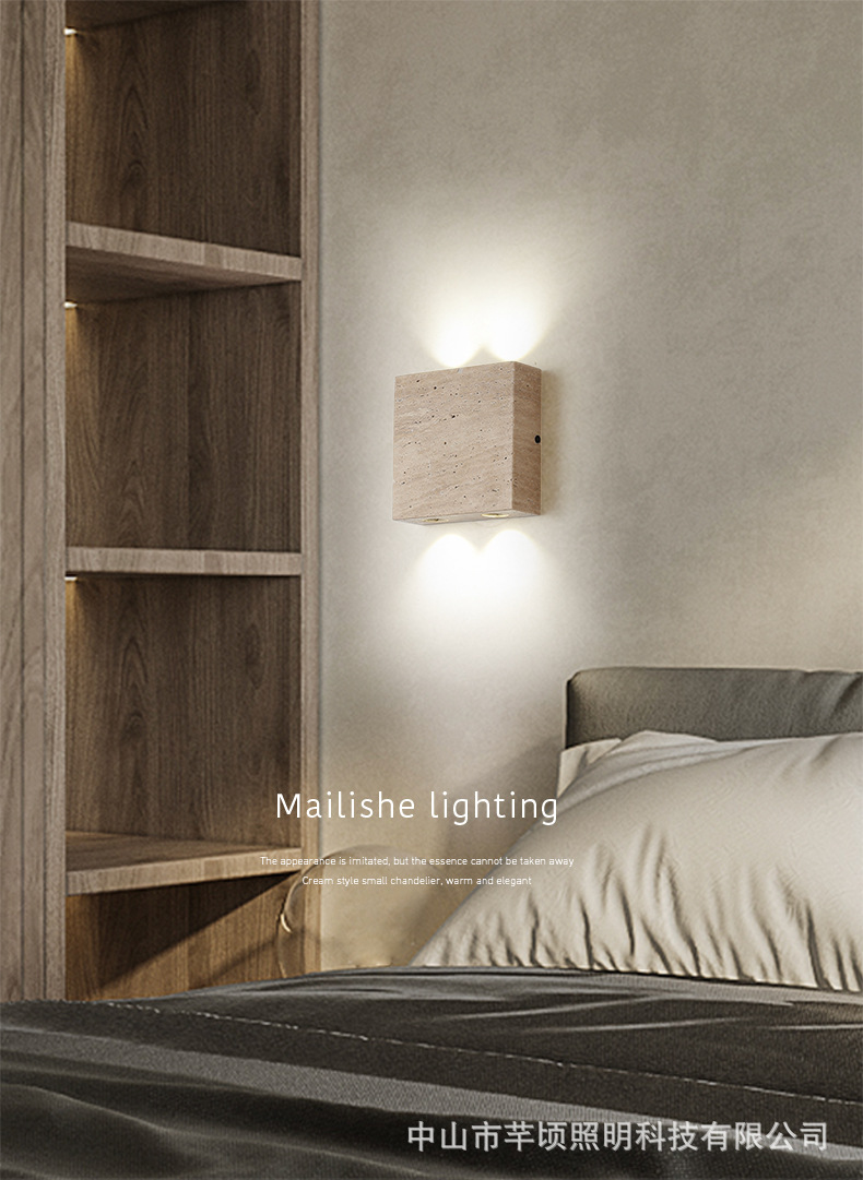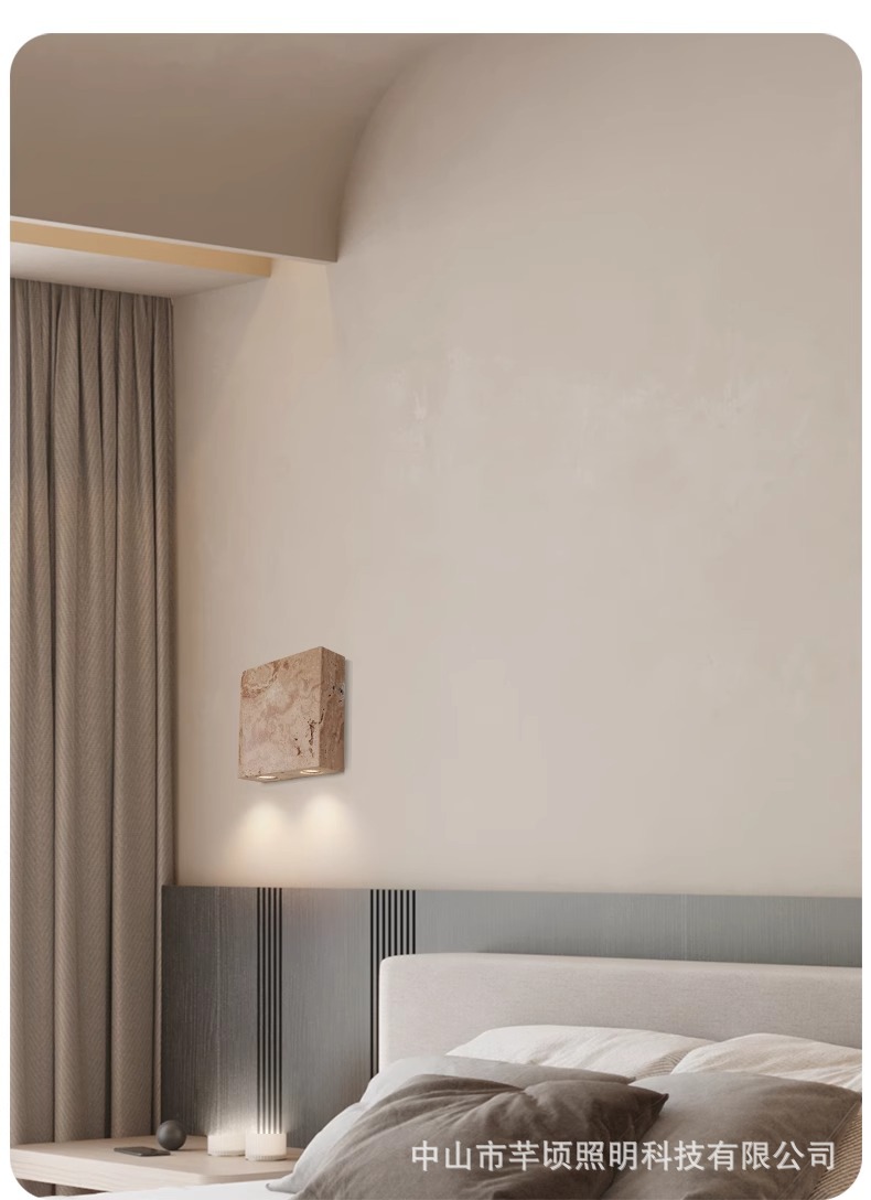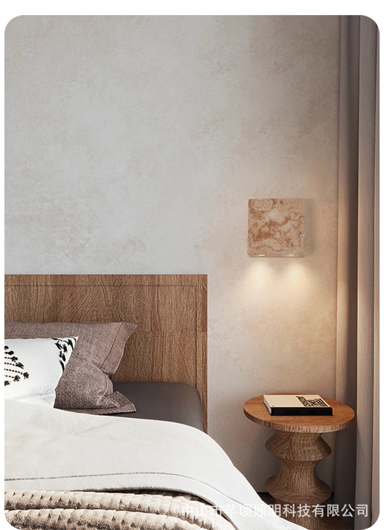 일본식 크림 바람 침실 침대 옆 벽 램프 노란색 동굴 돌 거실 복도 현관 빌라 계단 배경 벽 램프스토어 가기
