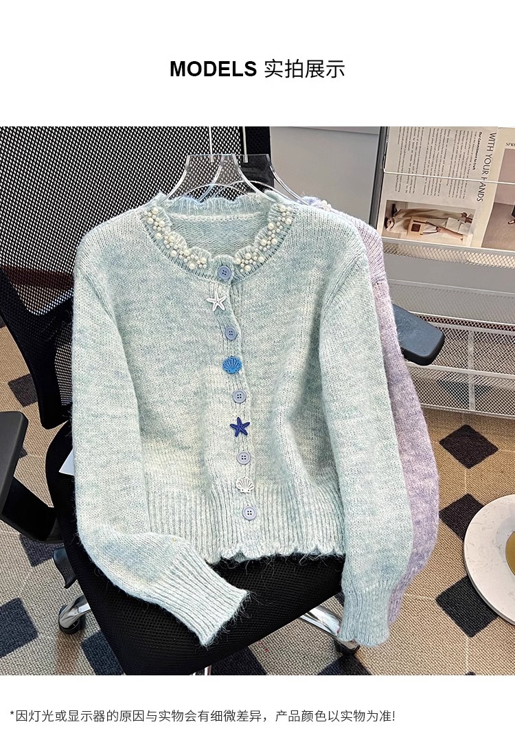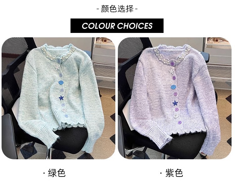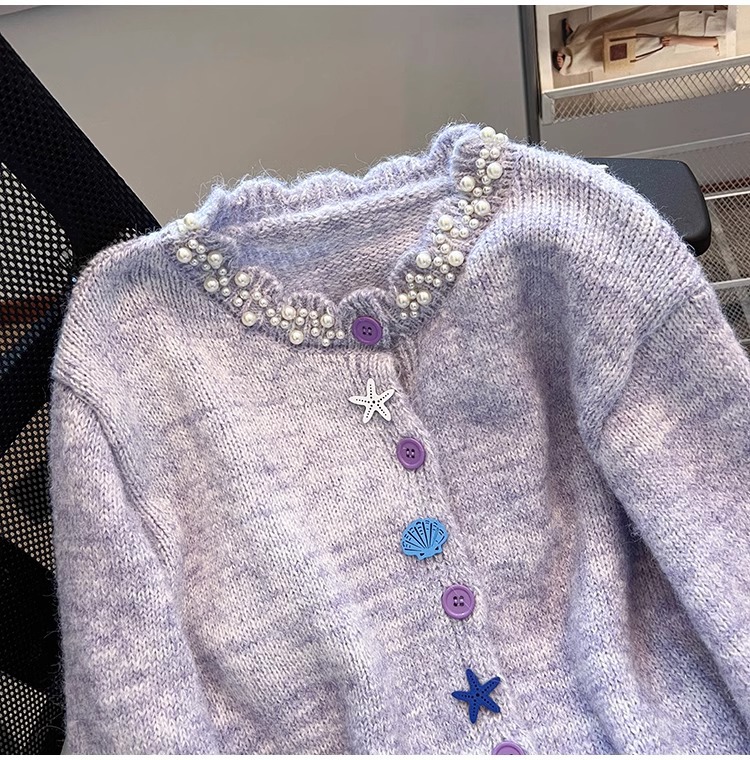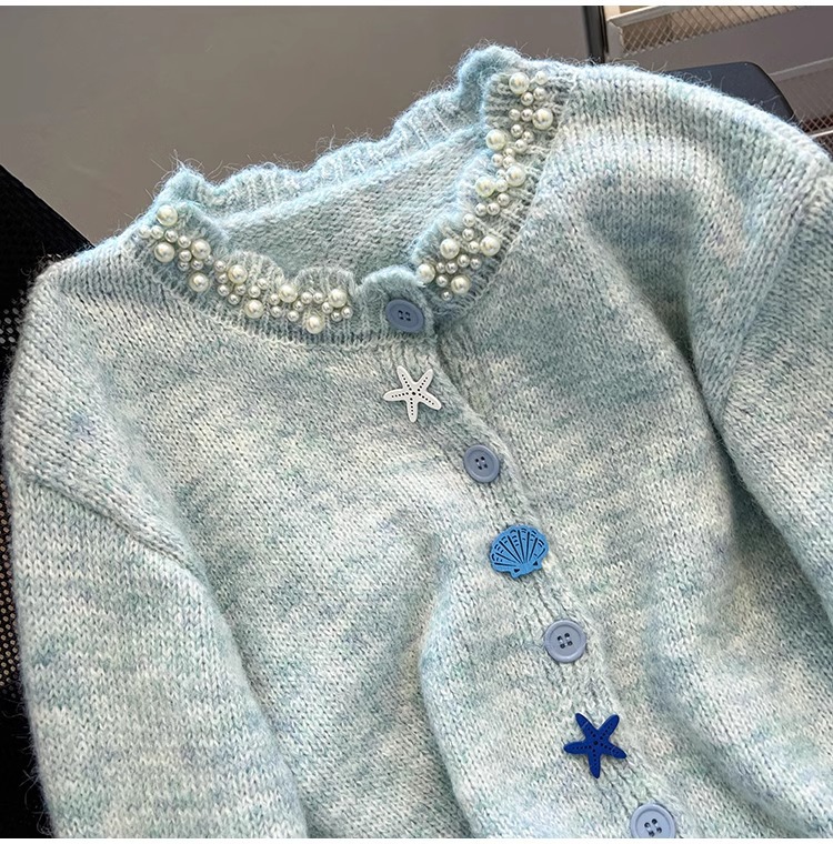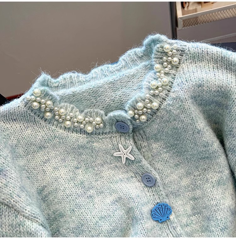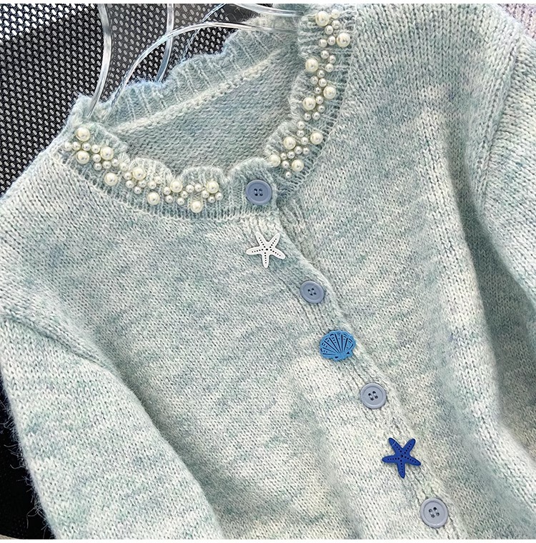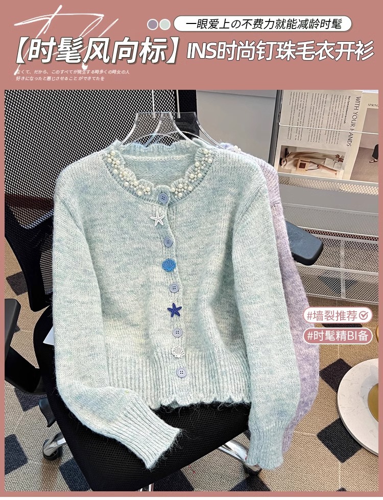 자기 유지 추천 ~ 구슬 둥근 목 긴 소매 니트 카디건 여성의 2025 년 봄과 가을 새로운 부드러운 왁스 스웨터 코트 조수스토어 가기