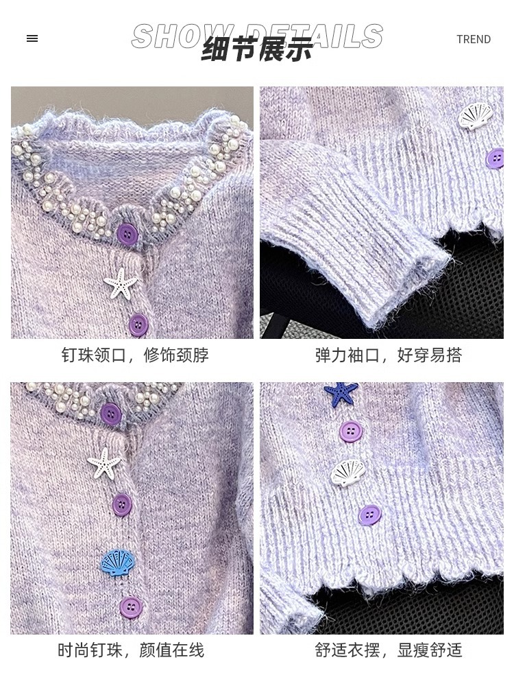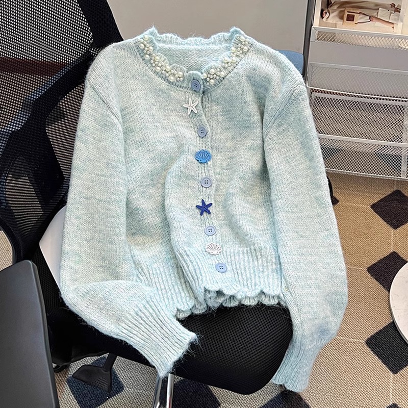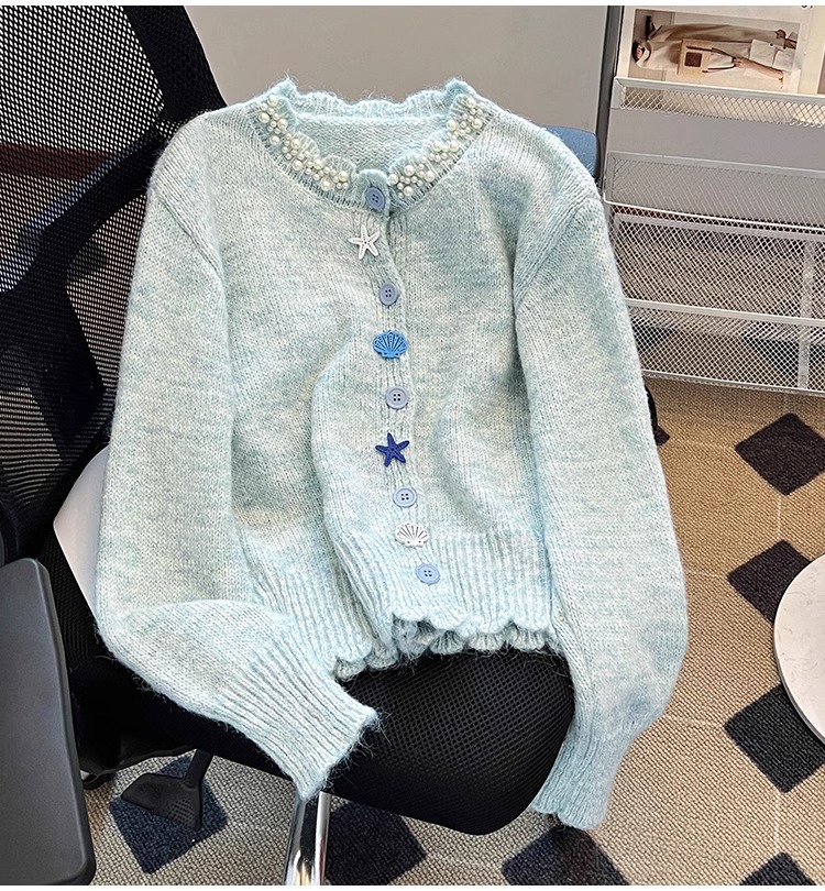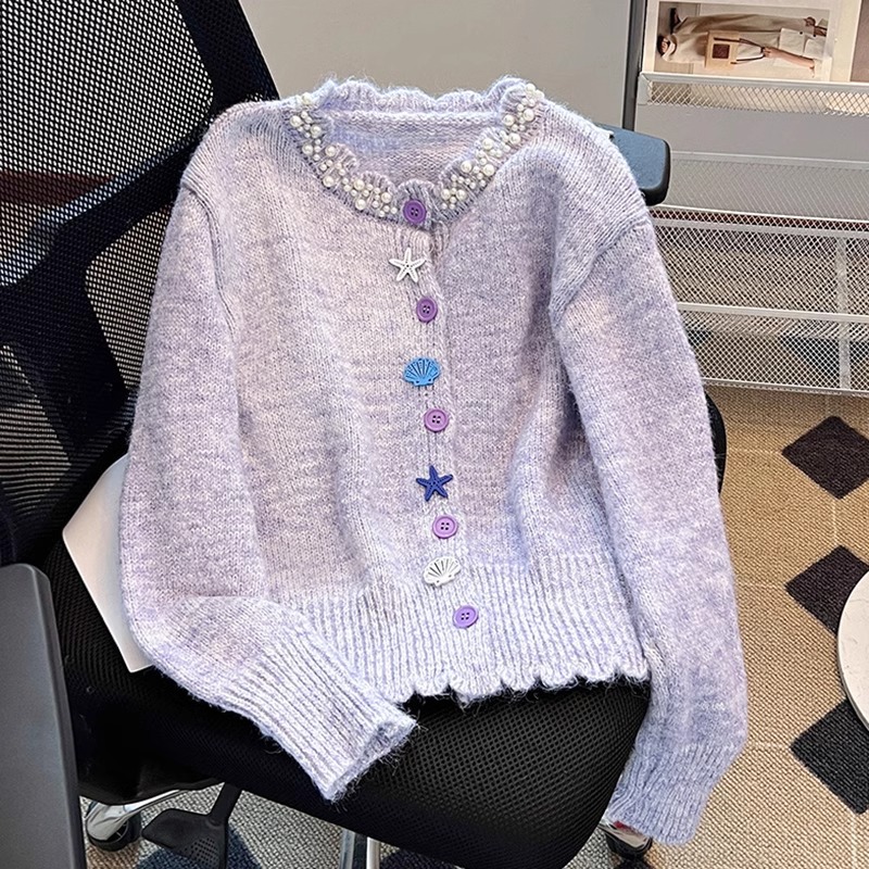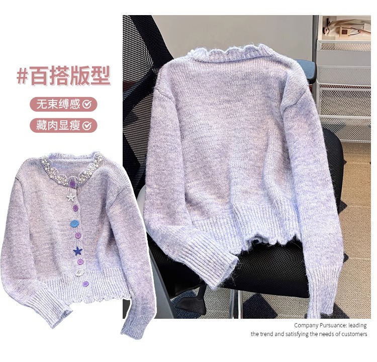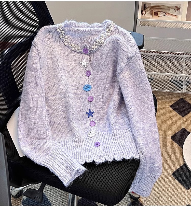 자기 유지 추천 ~ 구슬 둥근 목 긴 소매 니트 카디건 여성의 2025 년 봄과 가을 새로운 부드러운 왁스 스웨터 코트 조수스토어 가기