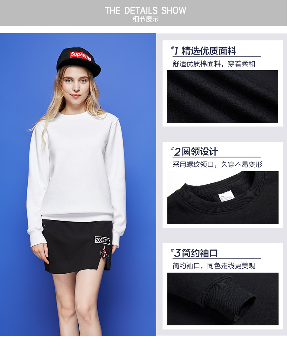 상하이 Cang K2/Jiabo Youwei 04EA 01 330gCVC 벨벳 성인 크루 넥 스웨트 셔츠