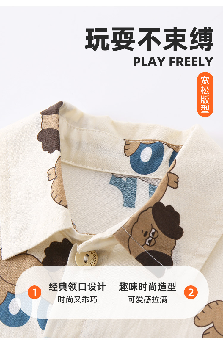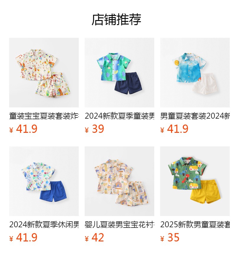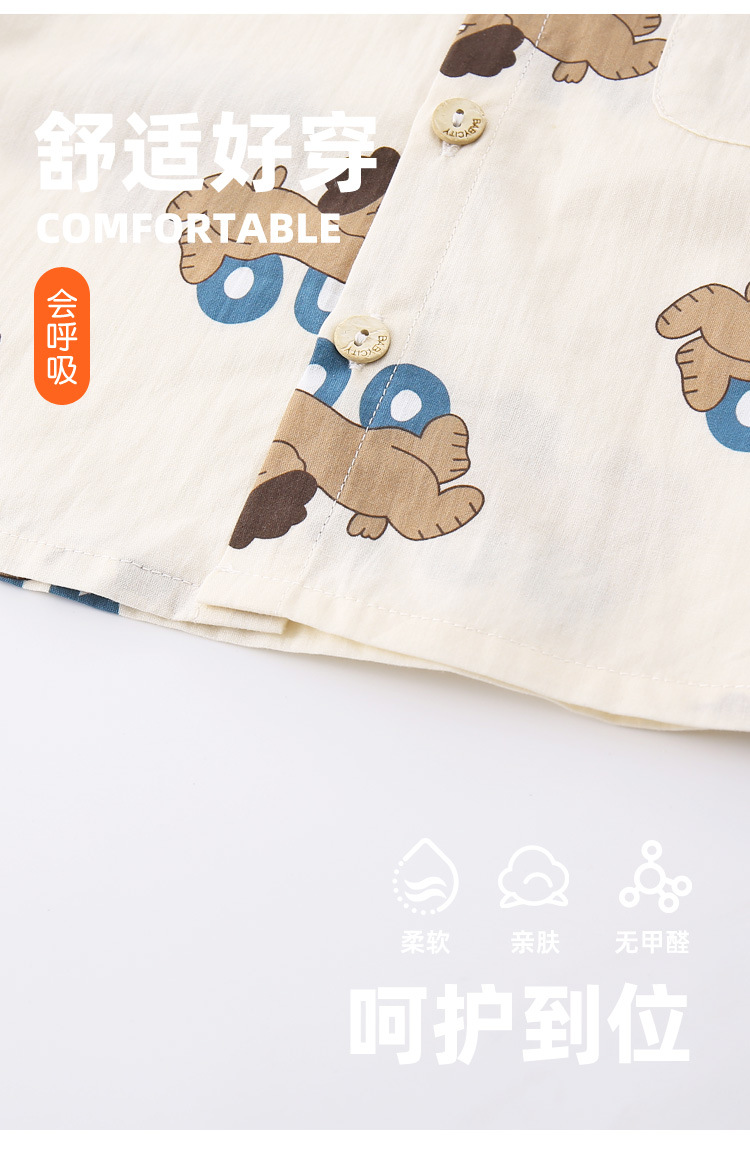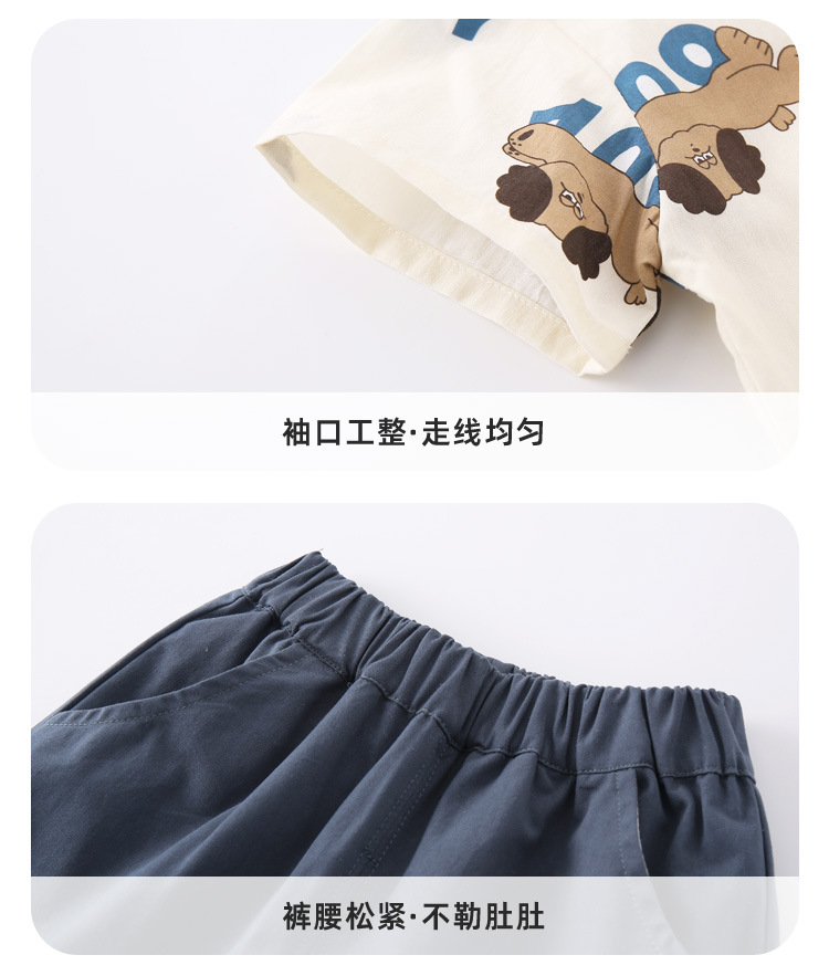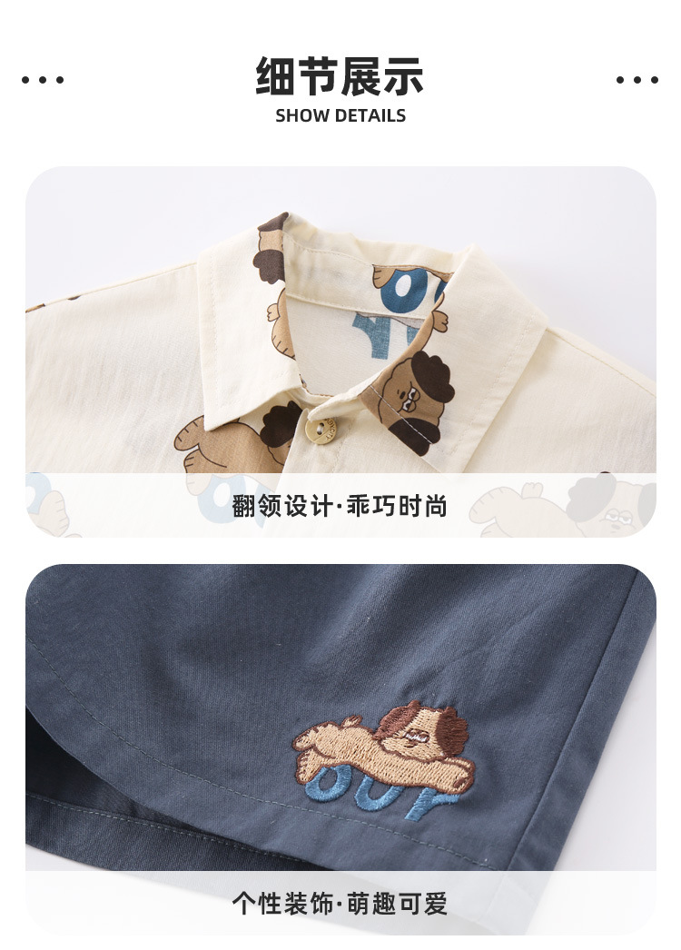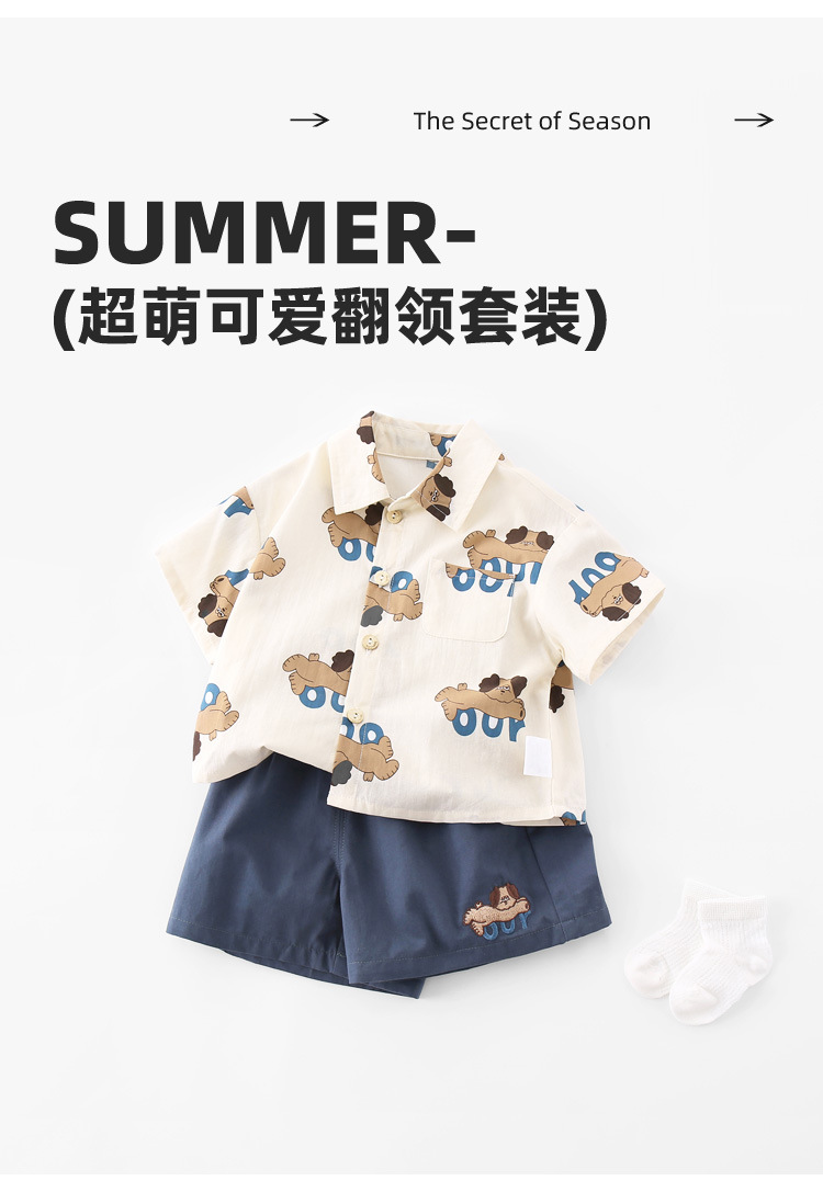 아기 여름 세트 소년 셔츠 투피스 2025 새로운 강아지 인쇄 짧은 소매 아기 어린이 의류 도매스토어 가기