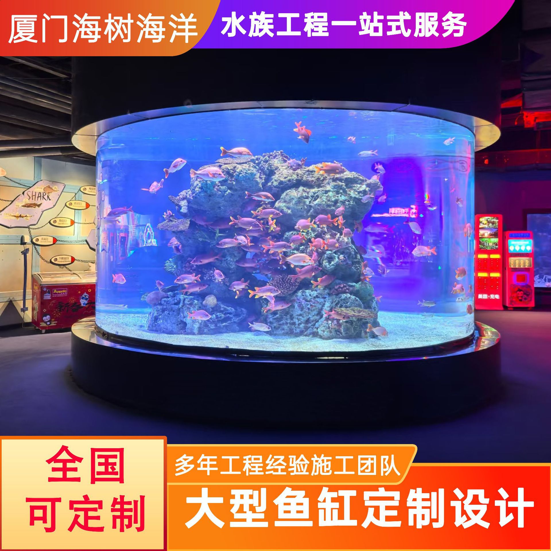 대형 현대식 두꺼운 원통형 아크릴 수조, 투명 해수 수조, 호텔, 쇼핑몰, 해양 놀이공원에 적합합니다.스토어 가기