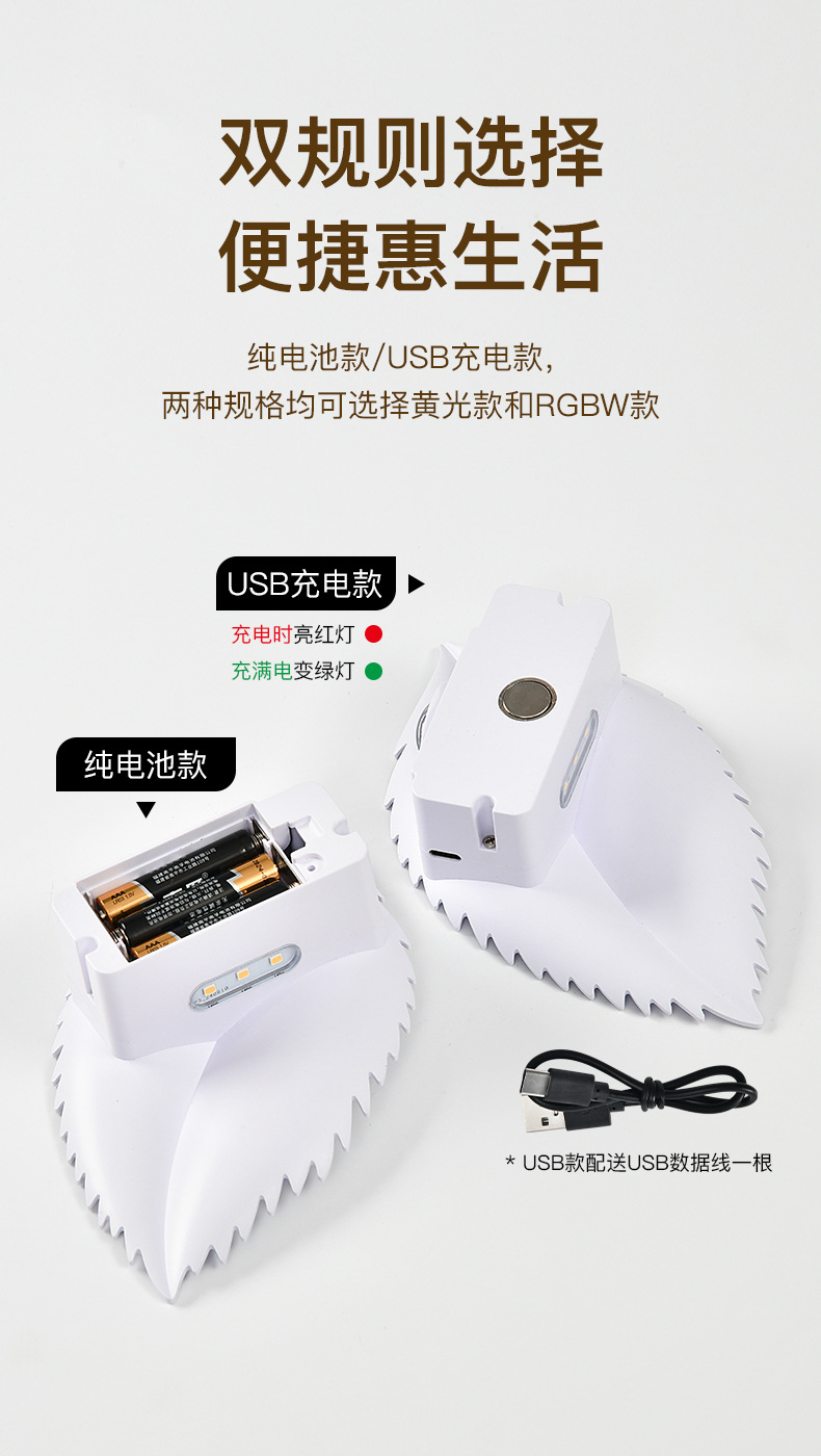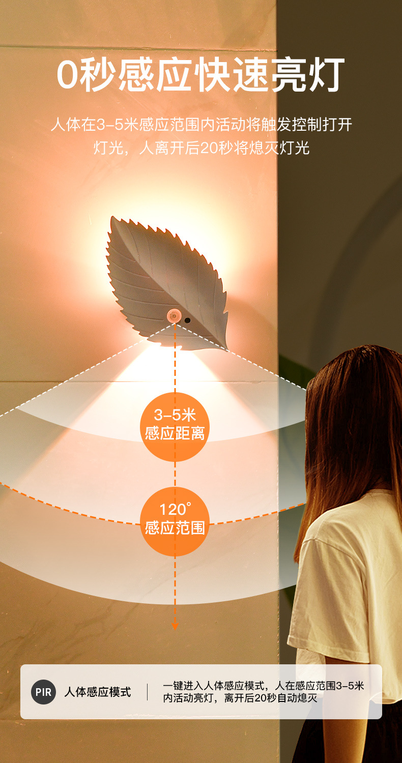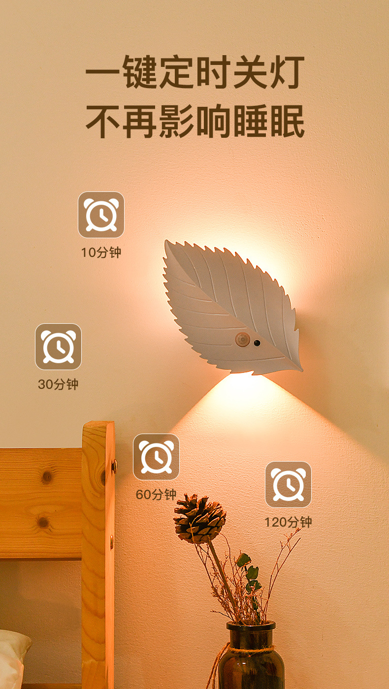 잎 인체 유도 램프 자기 접착 원격 제어 led 야간 조명 침실 물체 충전식 배터리 무선 벽 램프