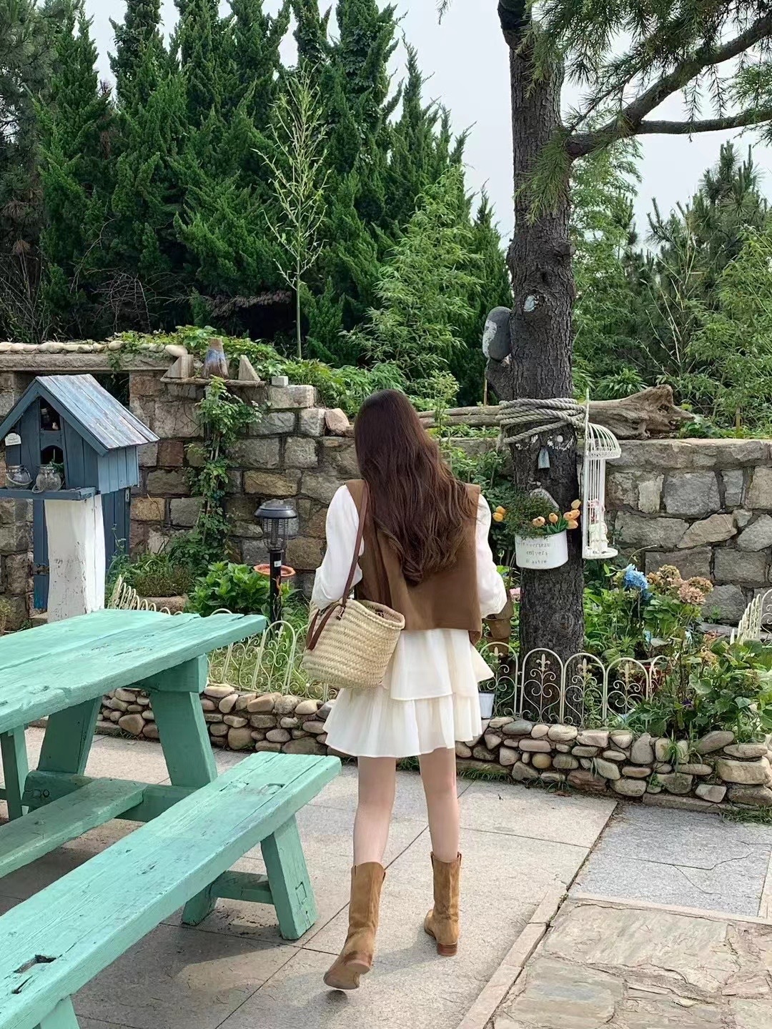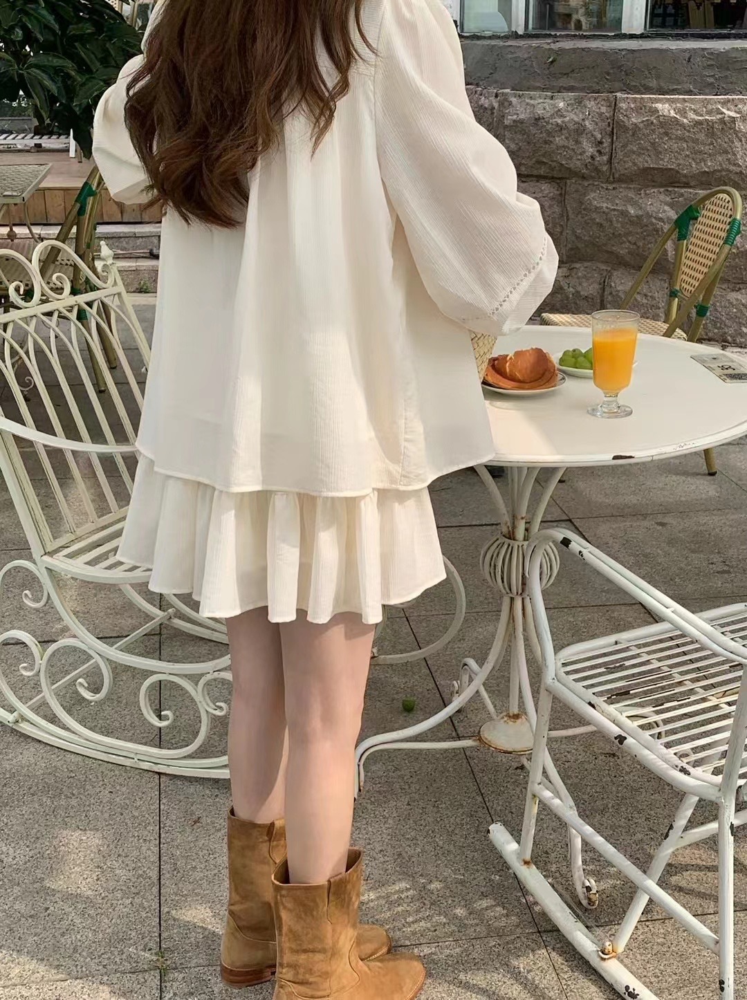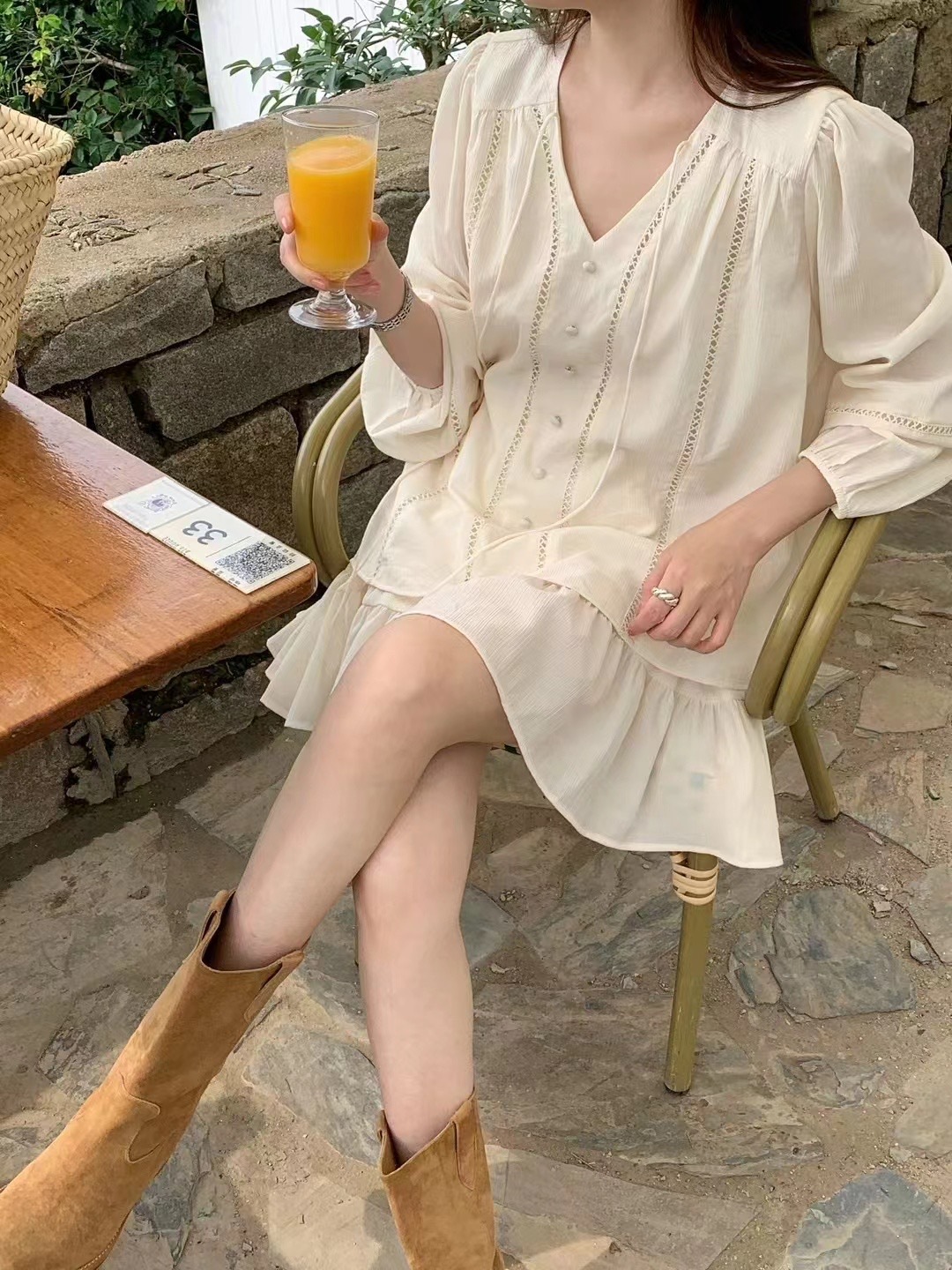 2025 새로운 한국 스타일 부드러운 스타일 V-Neck 할로우 레이스 업 셔츠 높은 허리 스커트 세트 여성용 2 피스 세트스토어 가기