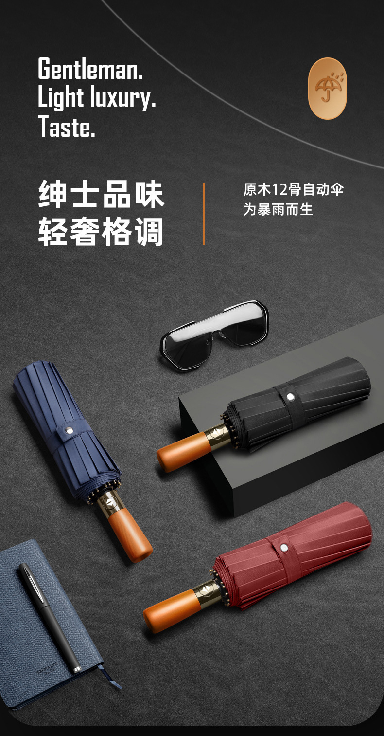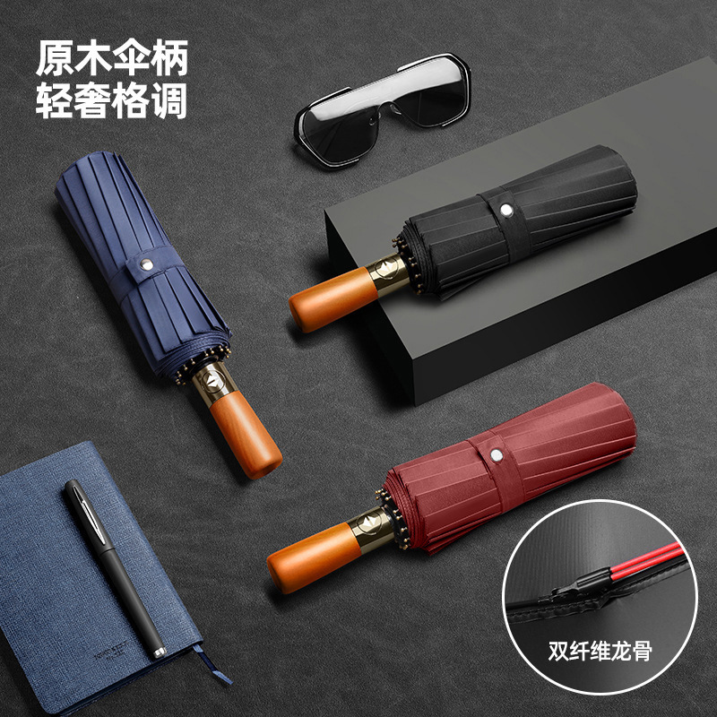 맑고 비오는 이중 사용 자동 신사 나무 손잡이 높은 수준 접는 우산 남자의 사업 두 배 사람 큰 대형 바람 방지 우산스토어 가기