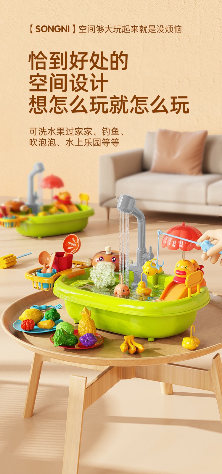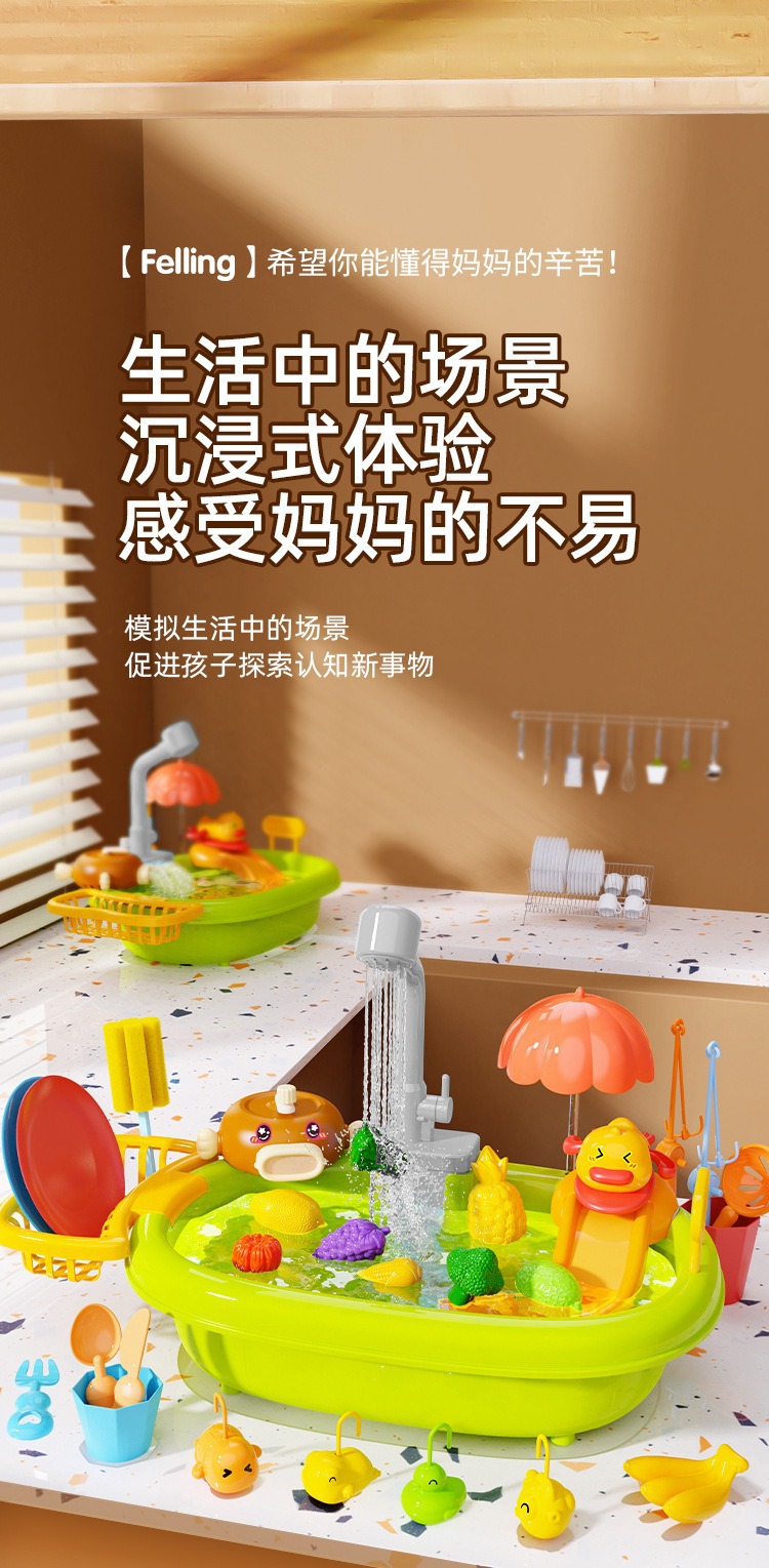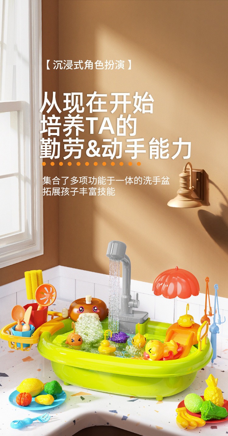 어린이 다기능 식기 세척기 세면대 아기 놀이 집 전기 수도꼭지 주방 교육 장난감스토어 가기