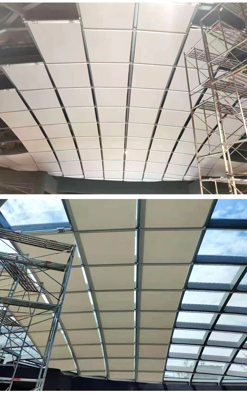 전동 차양막 쇼핑몰 선룸 지붕 단열 냉각 전동 개폐식 차양막 자외선 차단 유리 지붕 커튼