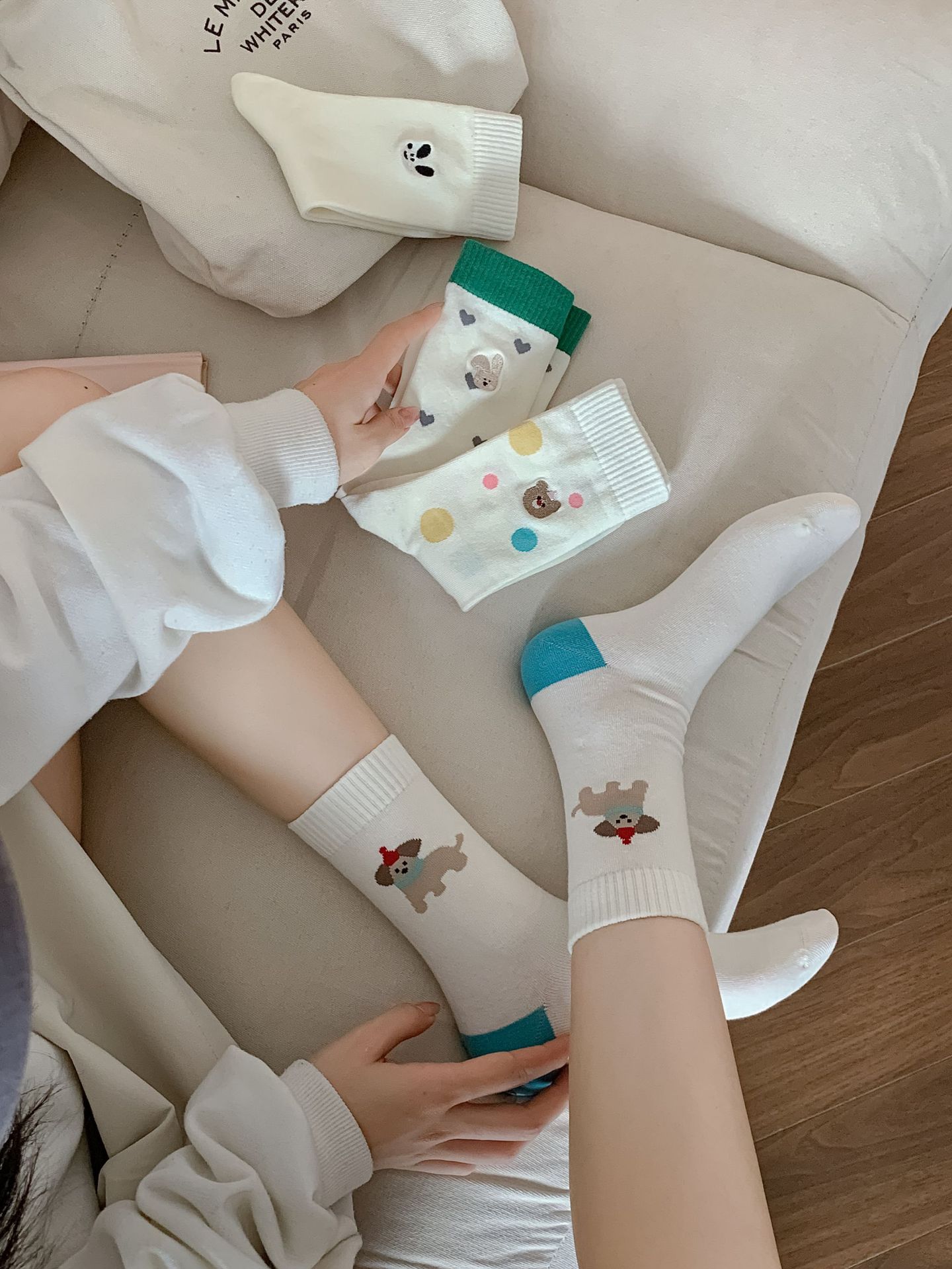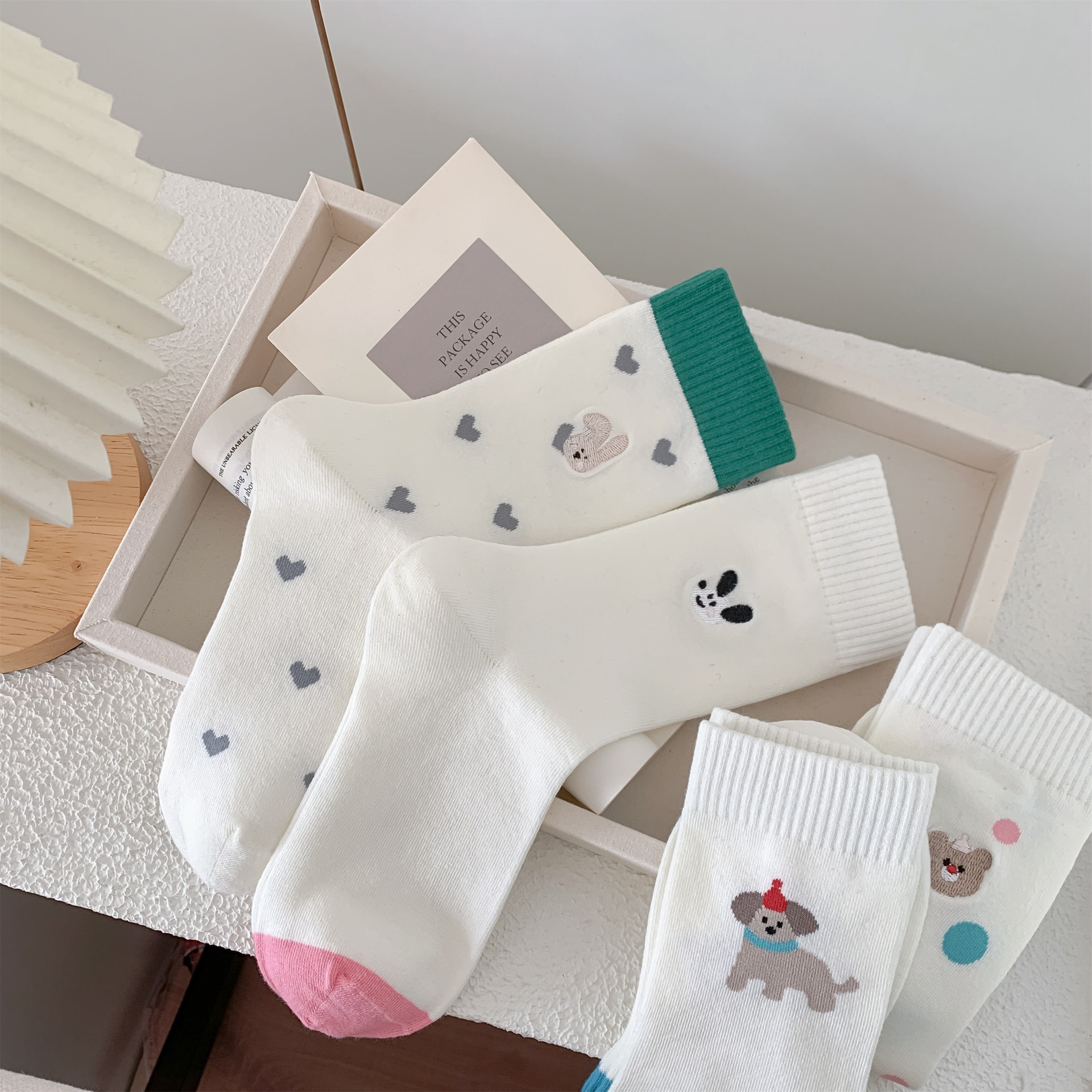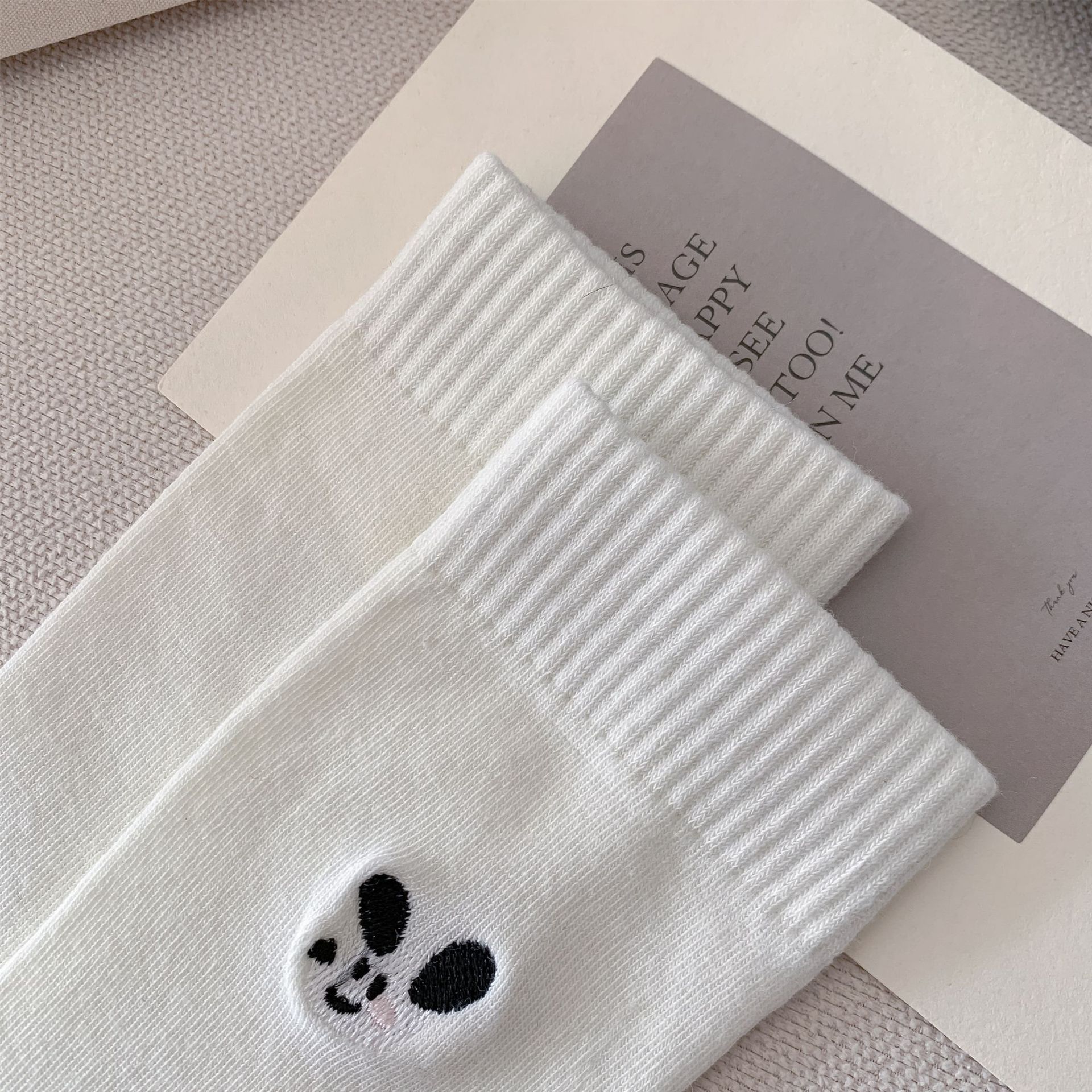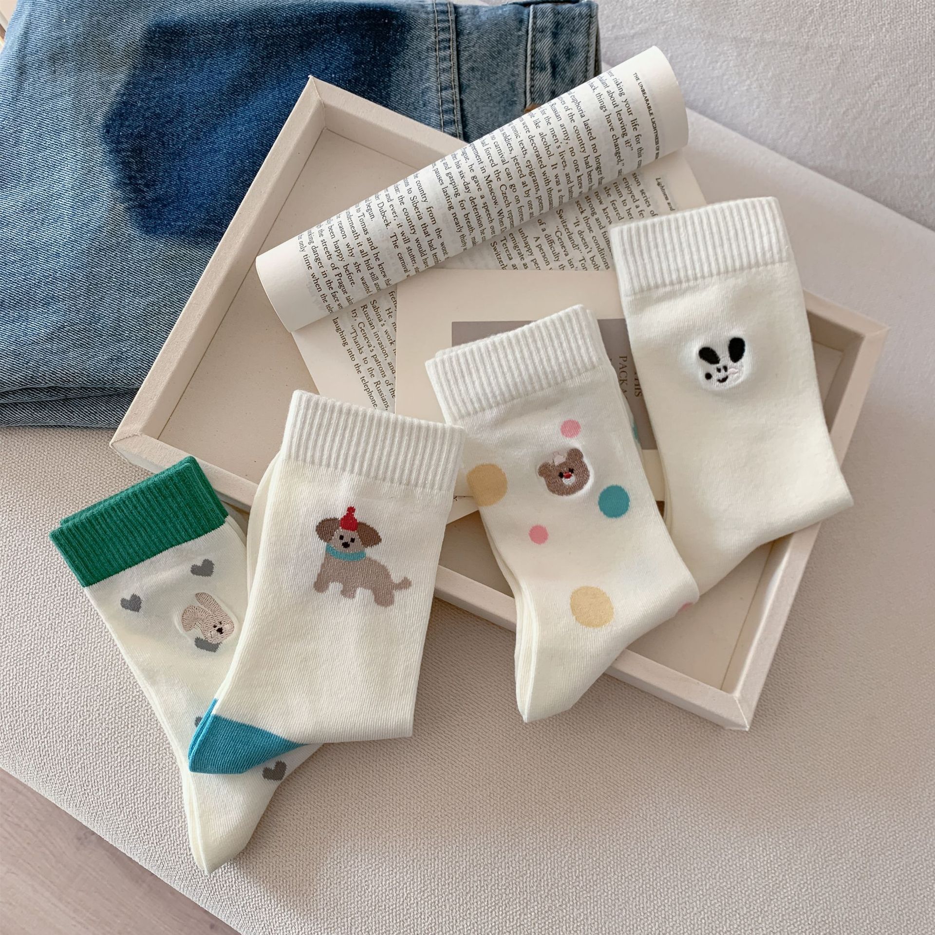 2025 양말 여성의 봄과 여름 새로운 캔디 컬러 귀여운 강아지 자수 아카데미 스타일 얇은 면 통기성 중형 양말스토어 가기