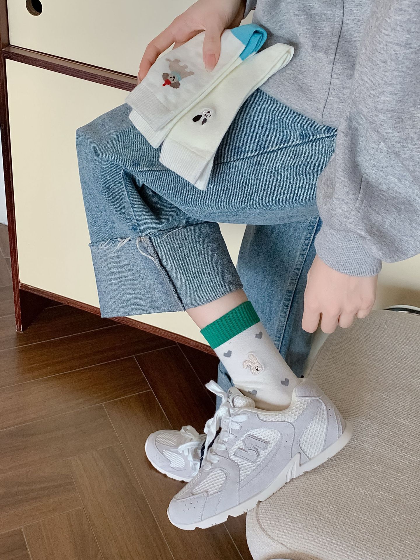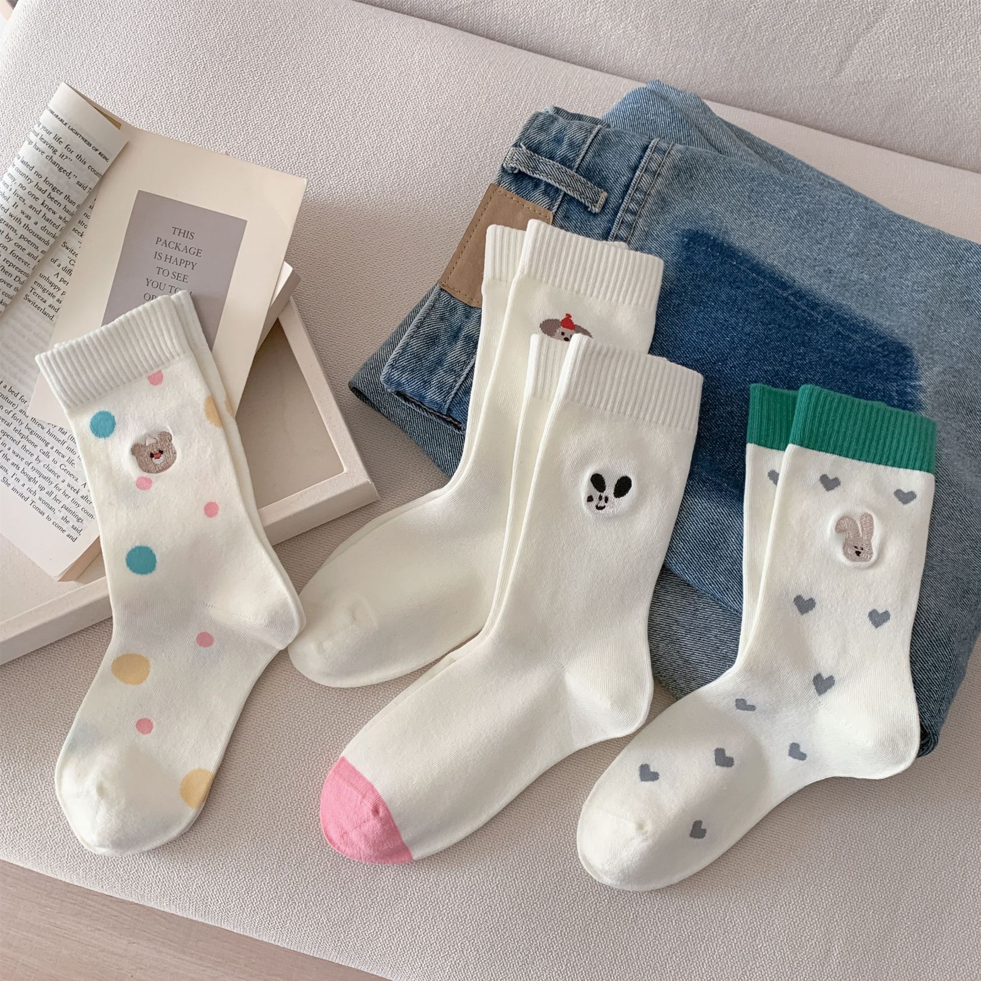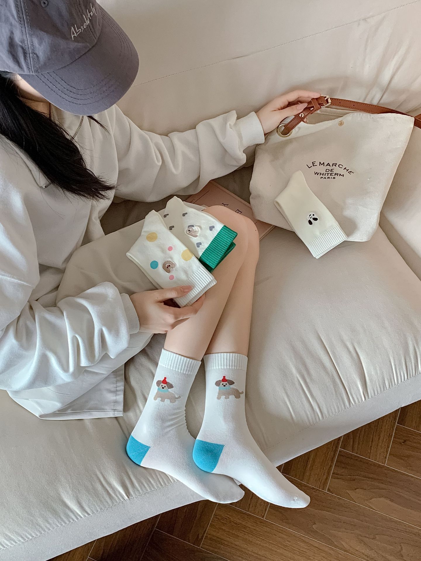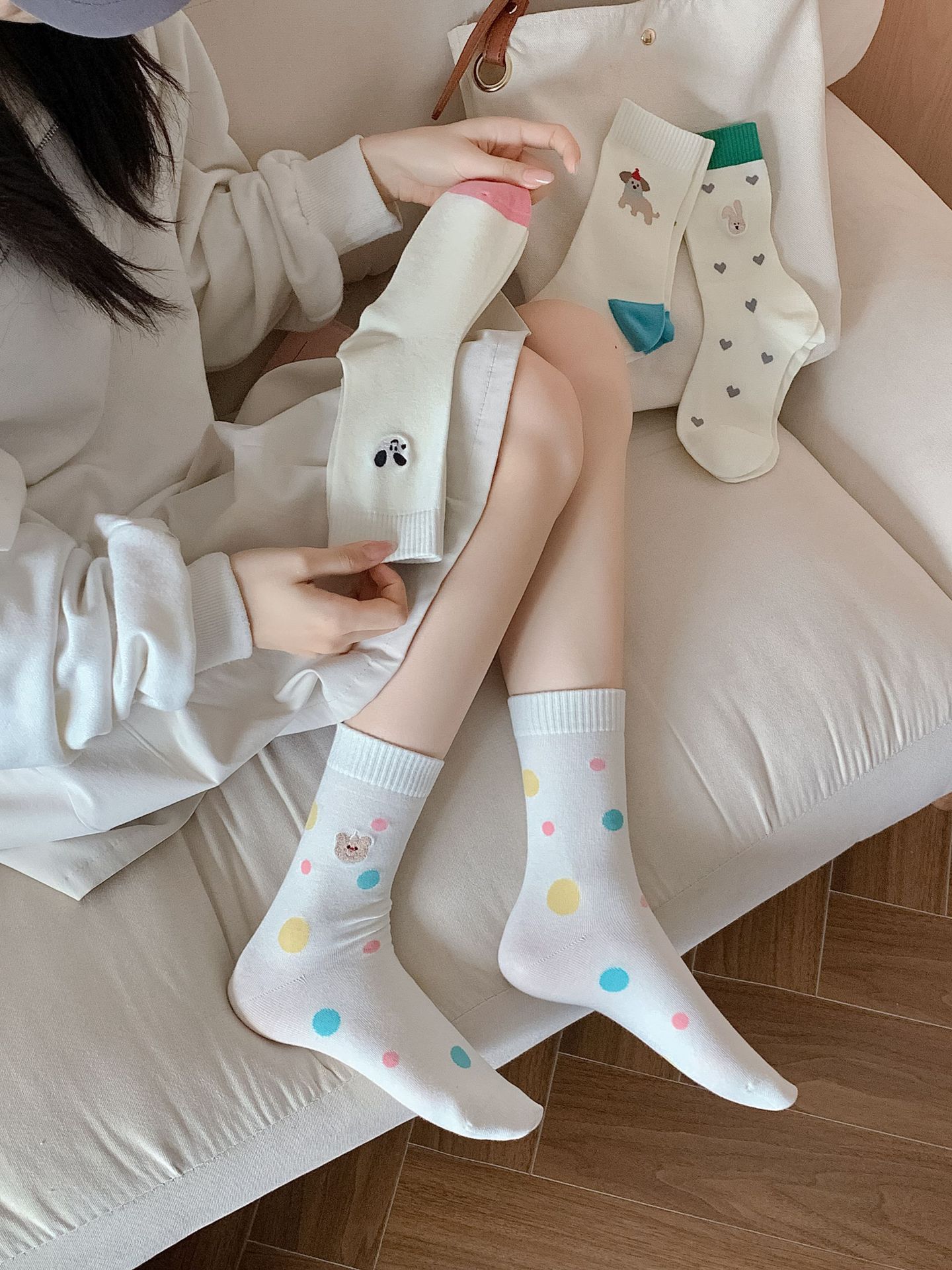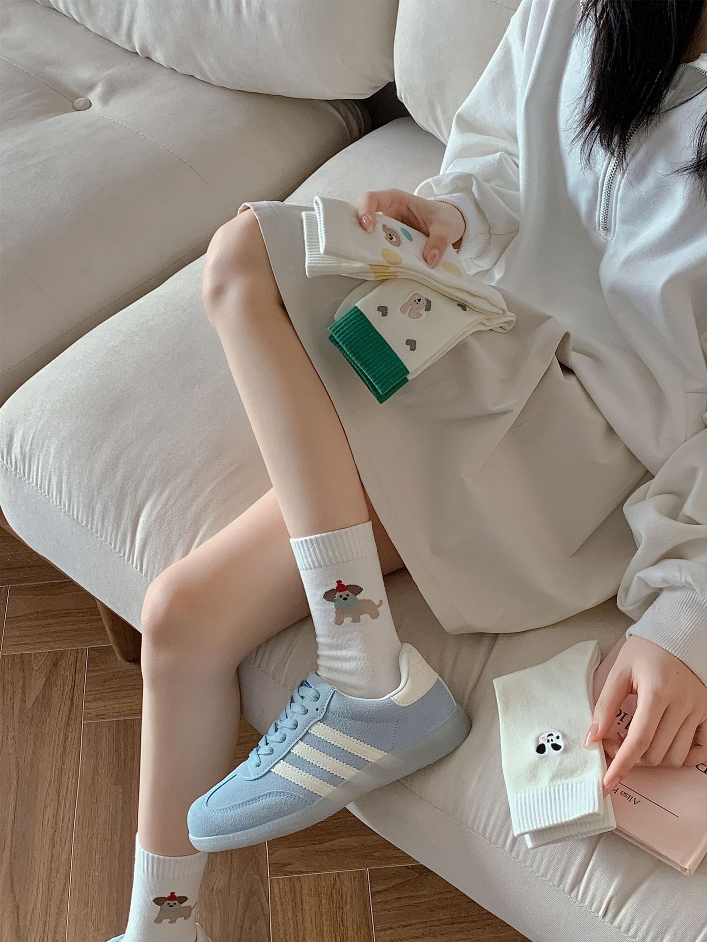 2025 양말 여성의 봄과 여름 새로운 캔디 컬러 귀여운 강아지 자수 아카데미 스타일 얇은 면 통기성 중형 양말스토어 가기