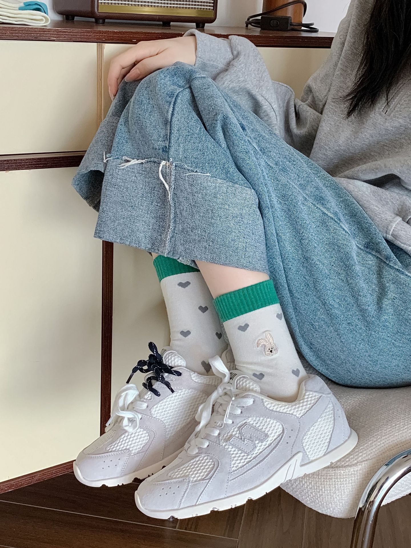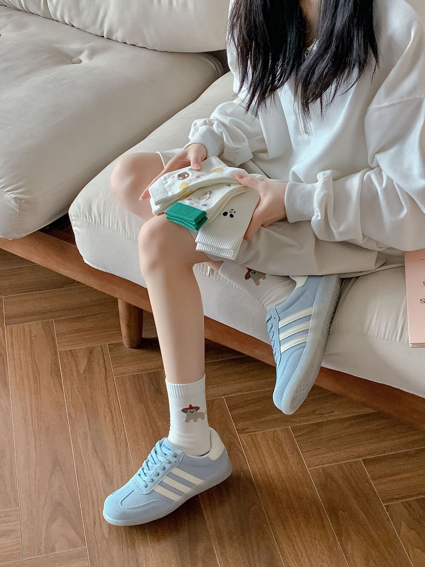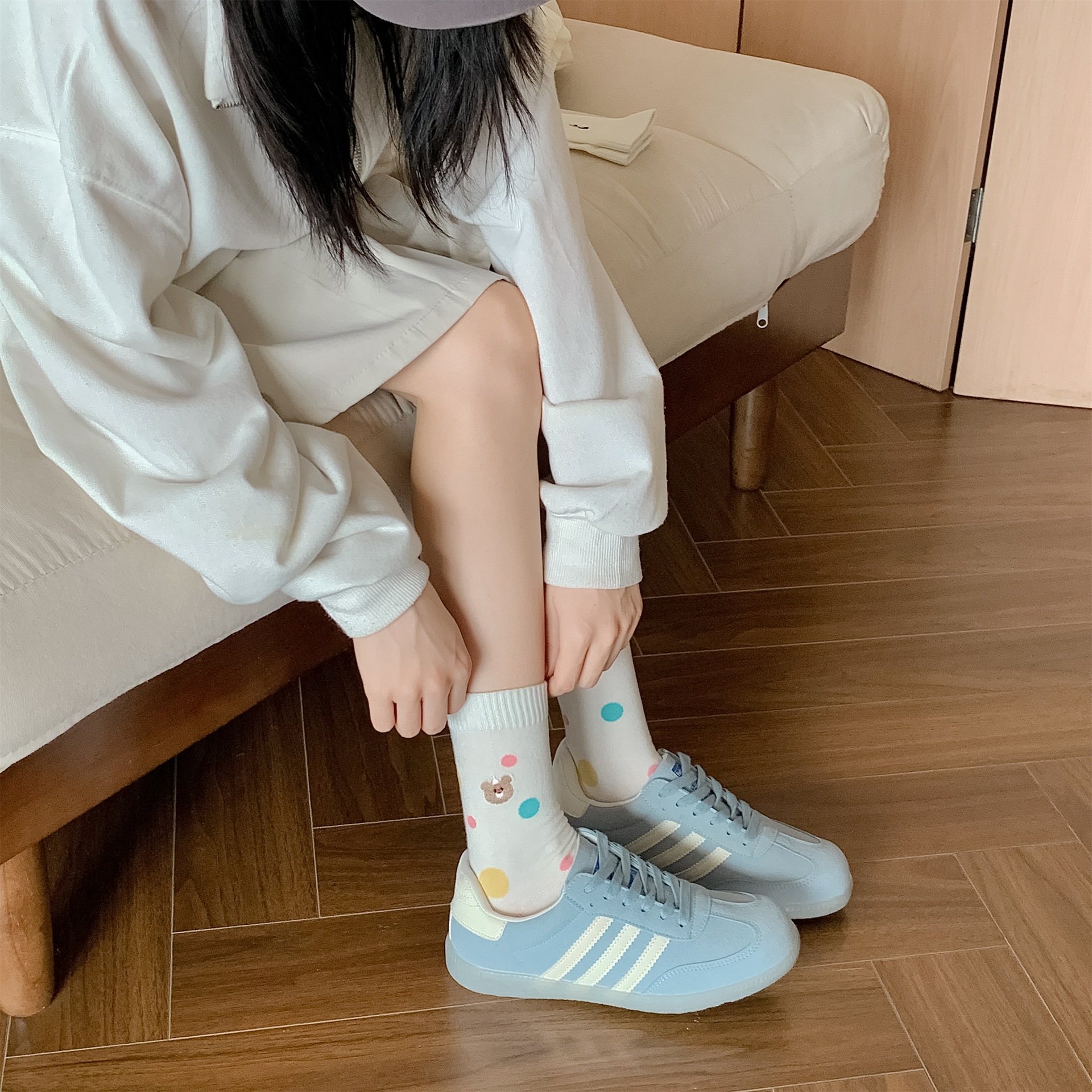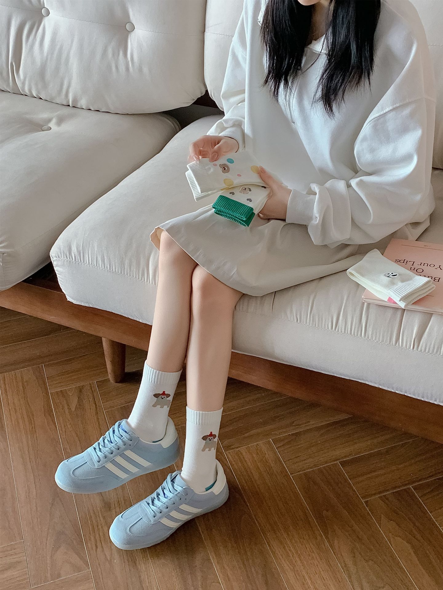 2025 양말 여성의 봄과 여름 새로운 캔디 컬러 귀여운 강아지 자수 아카데미 스타일 얇은 면 통기성 중형 양말스토어 가기