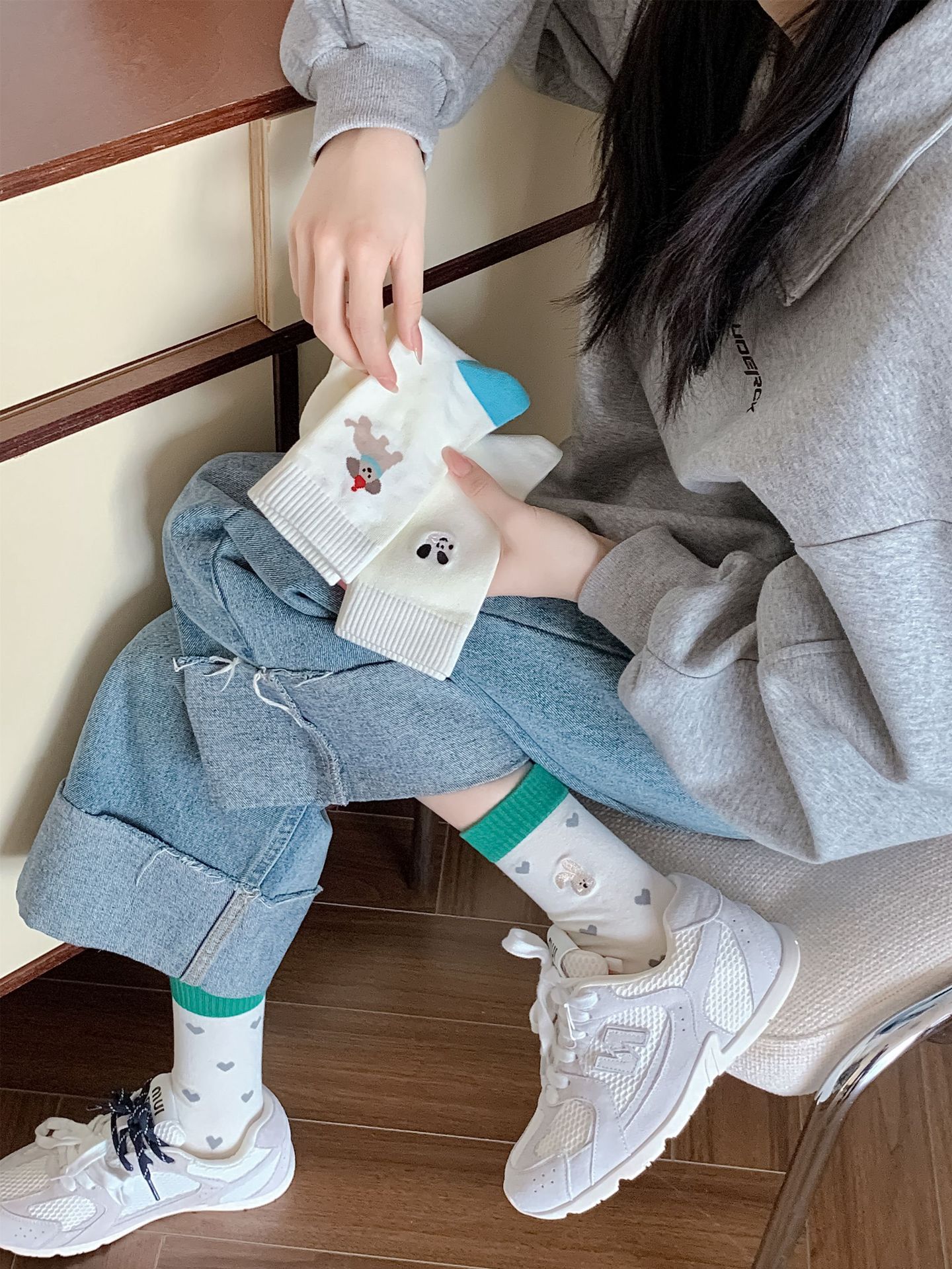 2025 양말 여성의 봄과 여름 새로운 캔디 컬러 귀여운 강아지 자수 아카데미 스타일 얇은 면 통기성 중형 양말