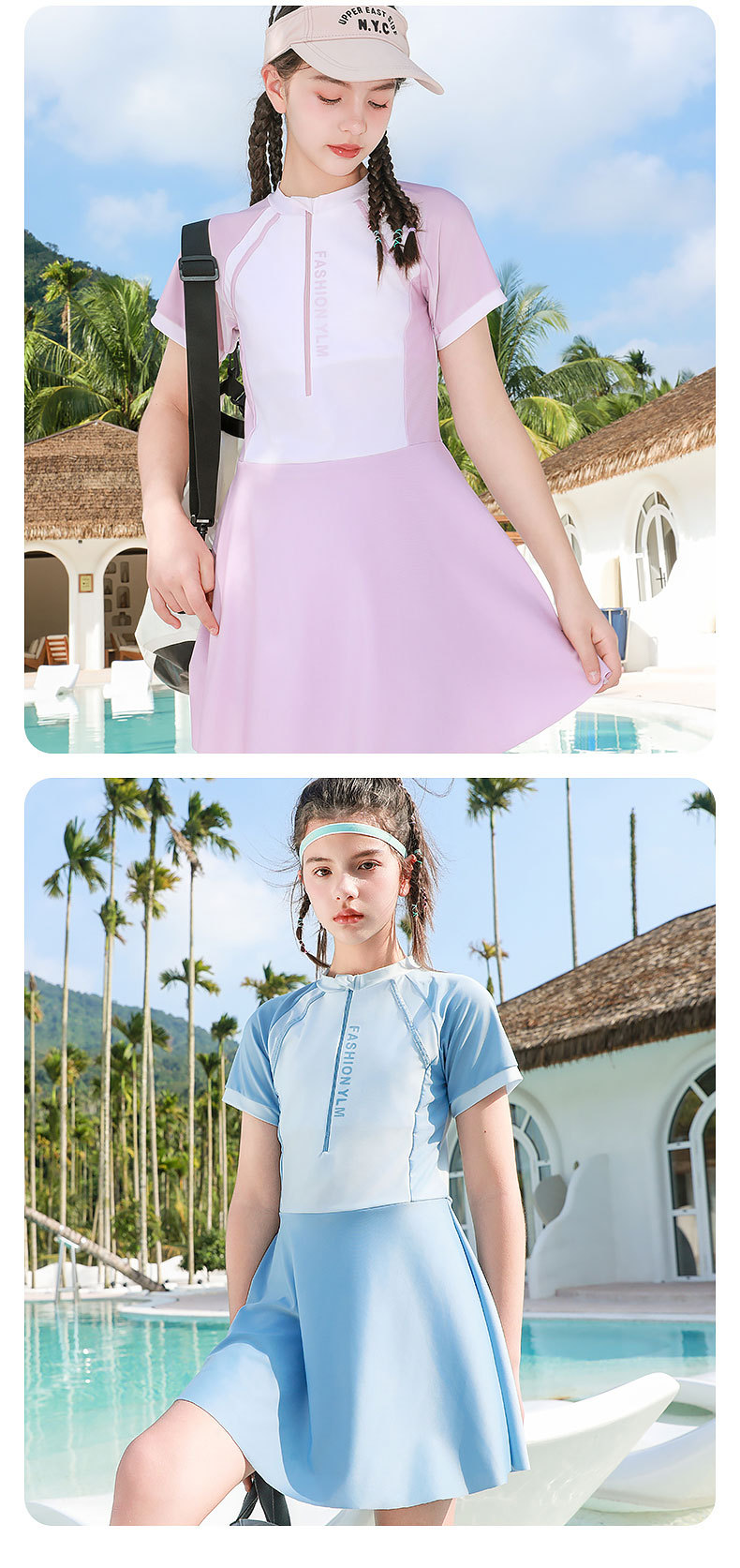 중대형 아동 수영복, 여성용 신상 원피스 스타일 수영복, 학생용 원피스 자외선 차단 스커트 스타일 공주 수영복, 대외 무역