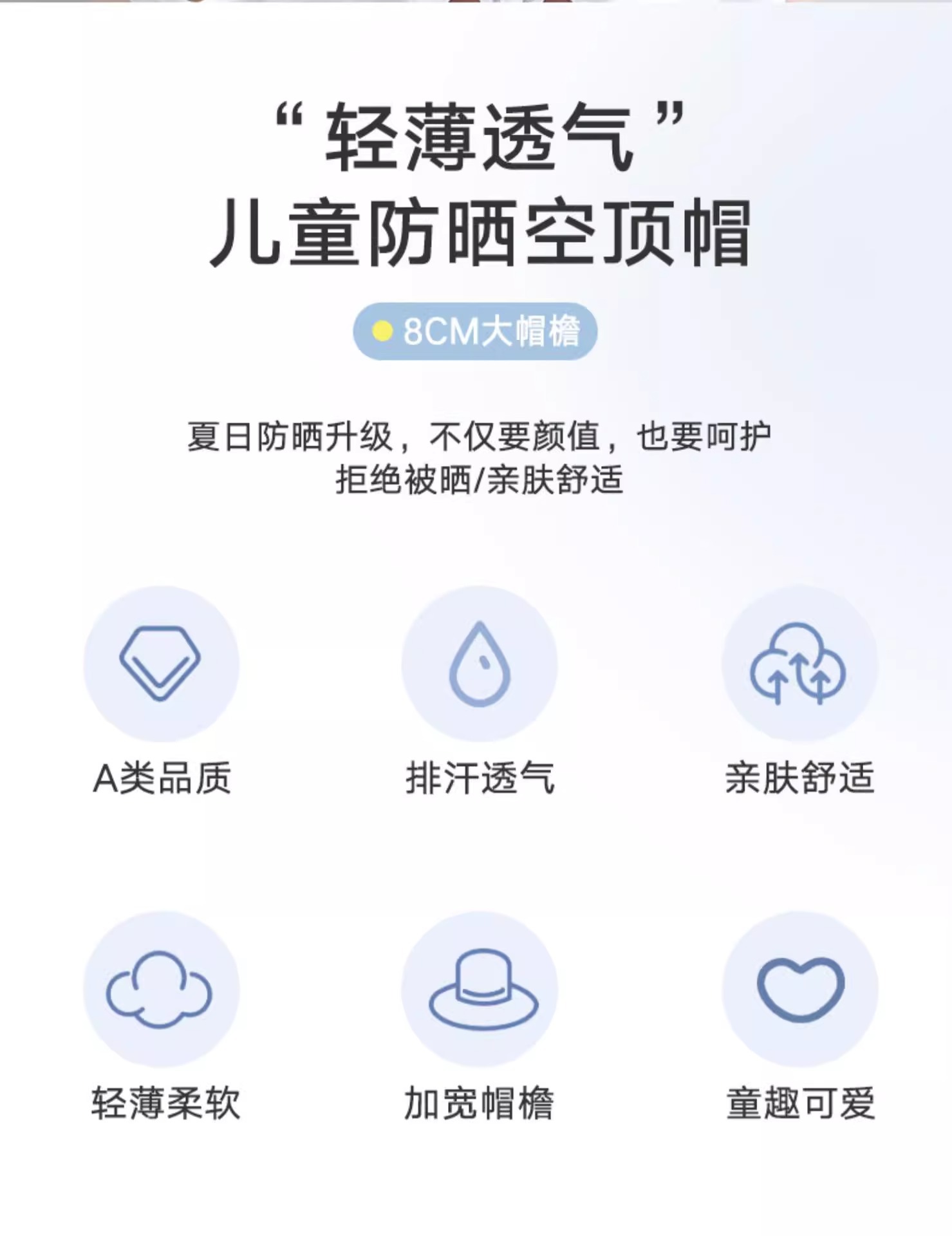 어린이 선 스크린 모자 접이식 여름 작은 노란 모자 아기 그늘 모자 소녀 빈 탑 모자 소년 태양 UV
