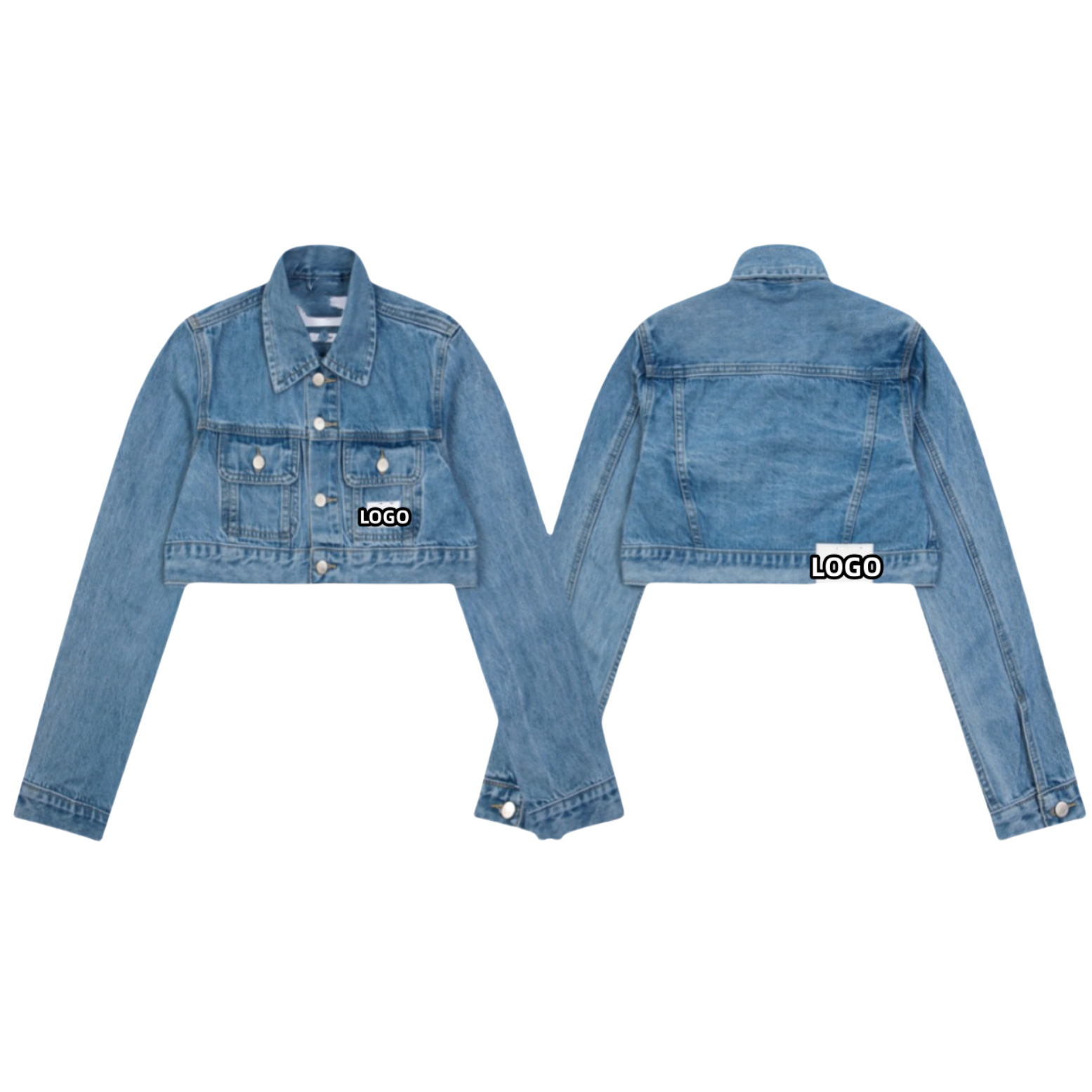 니니와 같은 스타일의 C 시리즈 짧은 데님 재킷, 앞면과 뒷면에 문자 라벨이 있는 로고, 여자 핫걸 하이웨이스트 재킷스토어 가기