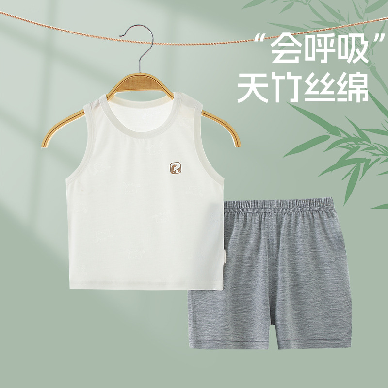 어린이 대나무 세트 유아 클래스 대나무 섬유 여름 조끼 세트 소년 소녀 에어컨 의류 홈 옷스토어 가기