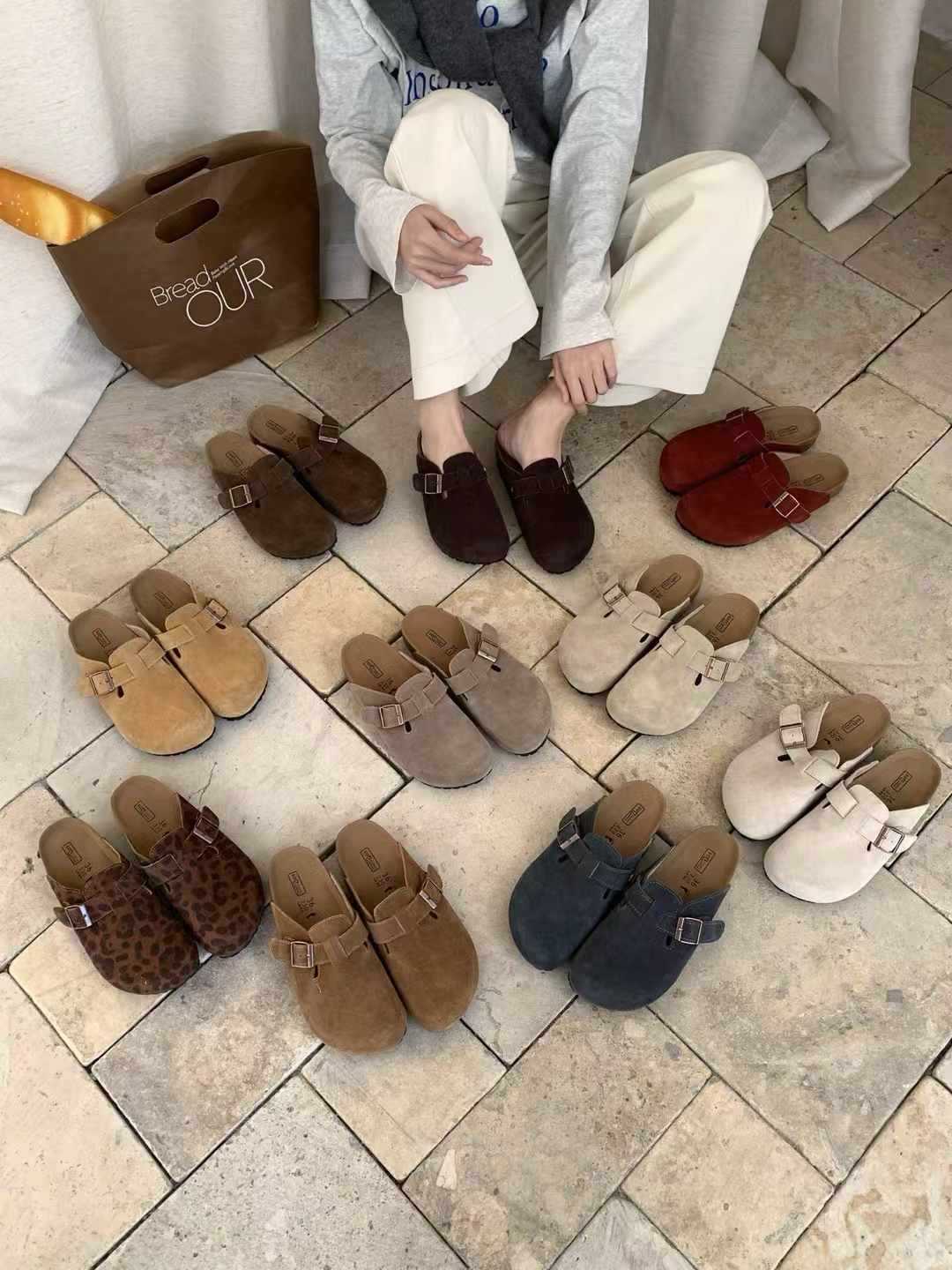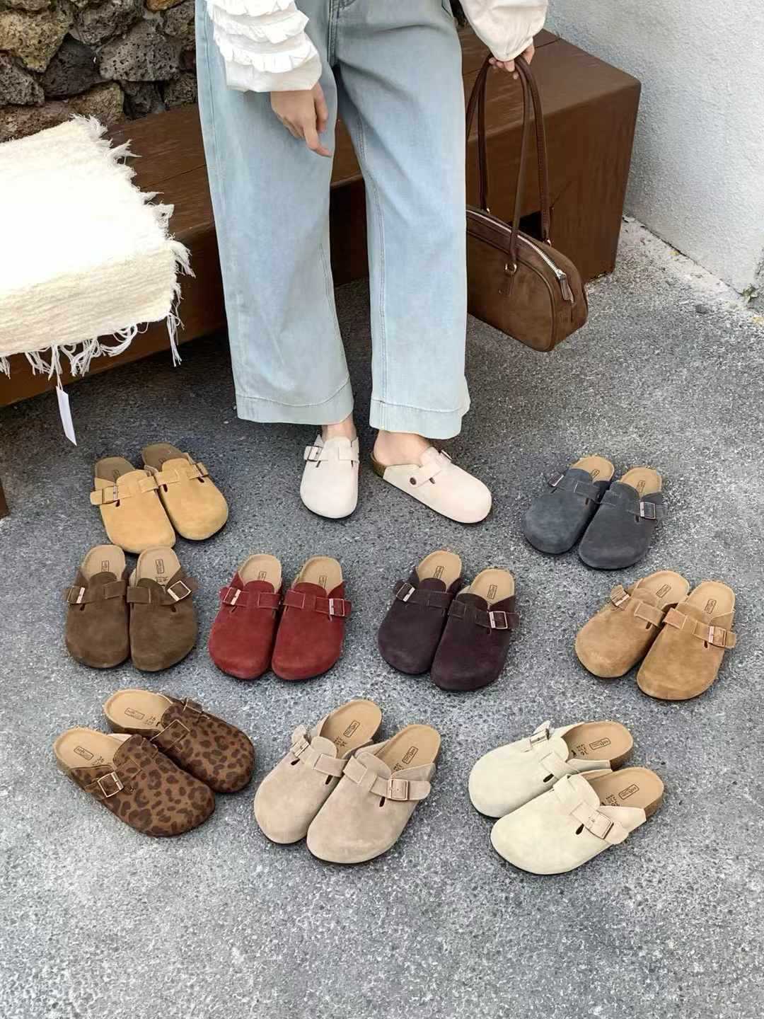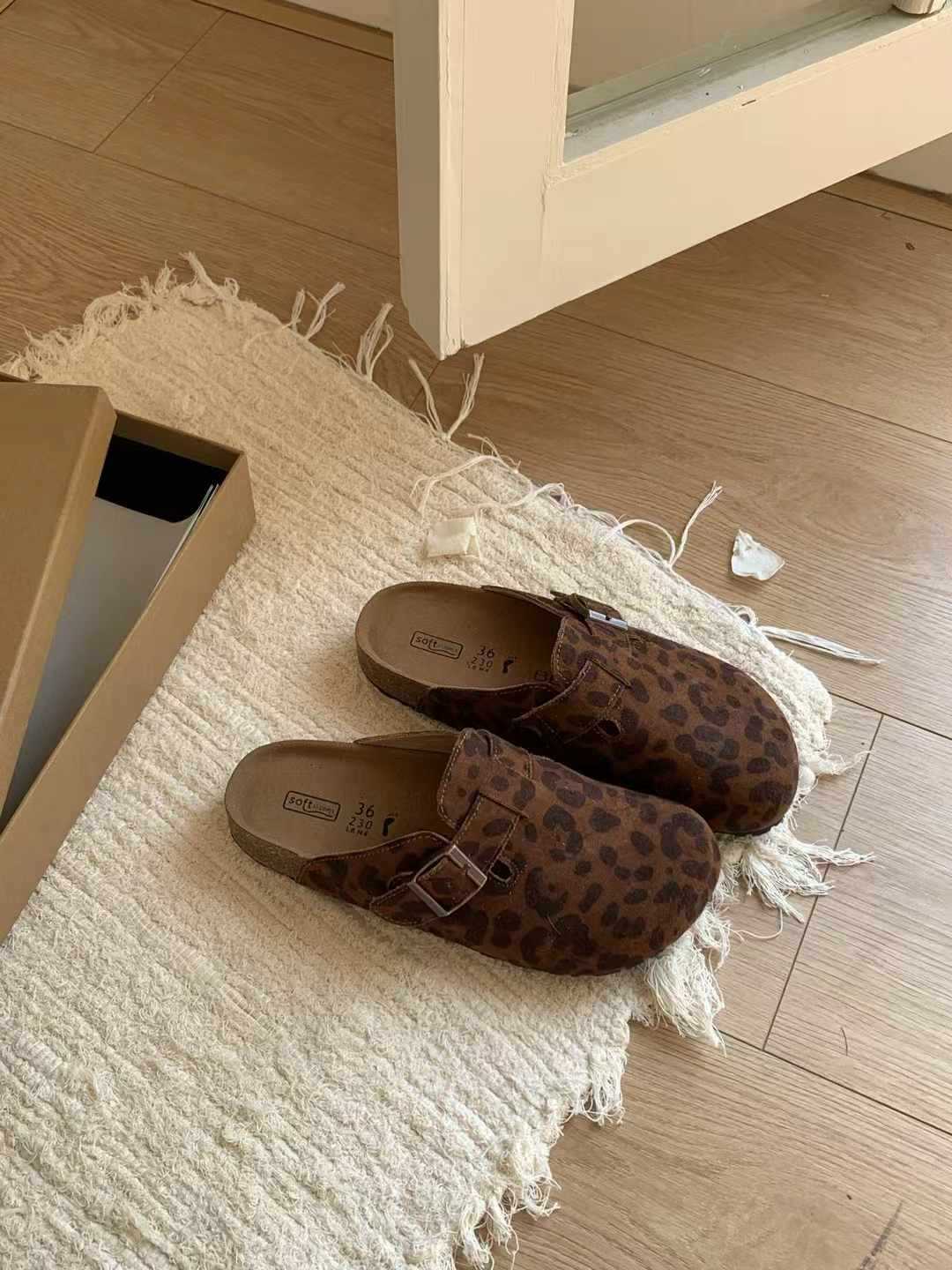 여성용 천연가죽 앞코가 가죽으로 된 하프 슬리퍼, 2026년 봄 신상품, 가볍고 부드러운 밑창, 편하게 신을 수 있는 하프 슬리퍼스토어 가기