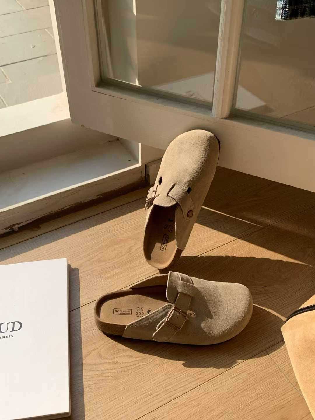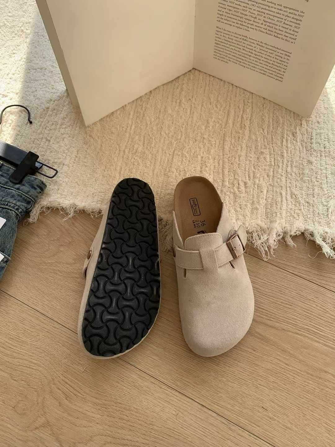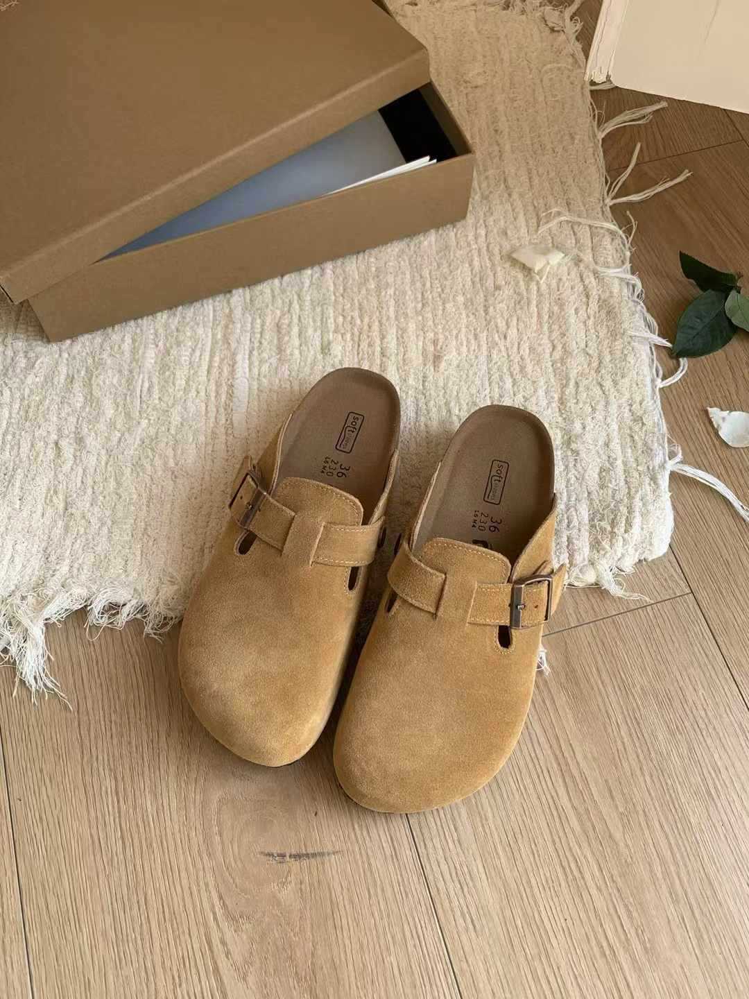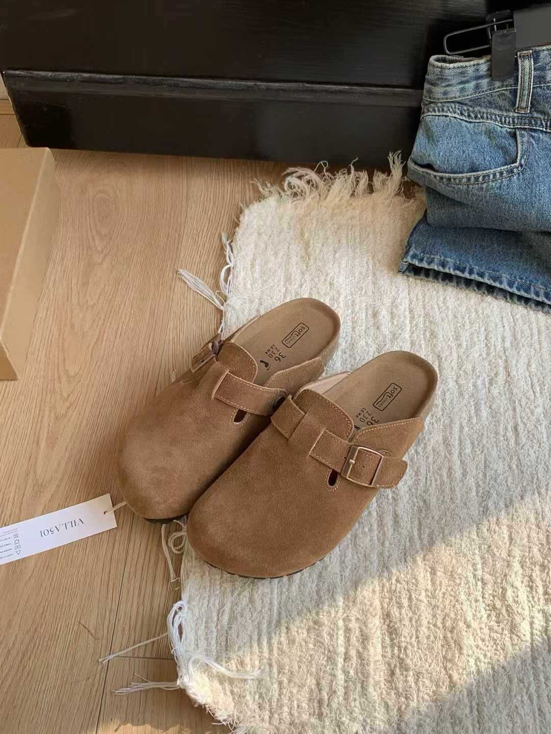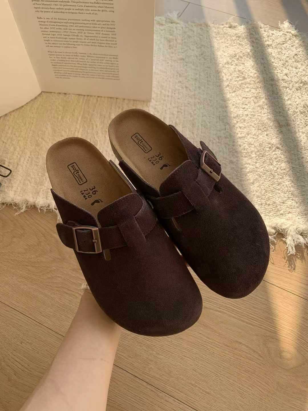 여성용 천연가죽 앞코가 가죽으로 된 하프 슬리퍼, 2026년 봄 신상품, 가볍고 부드러운 밑창, 편하게 신을 수 있는 하프 슬리퍼