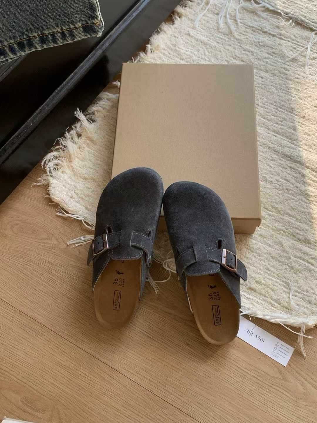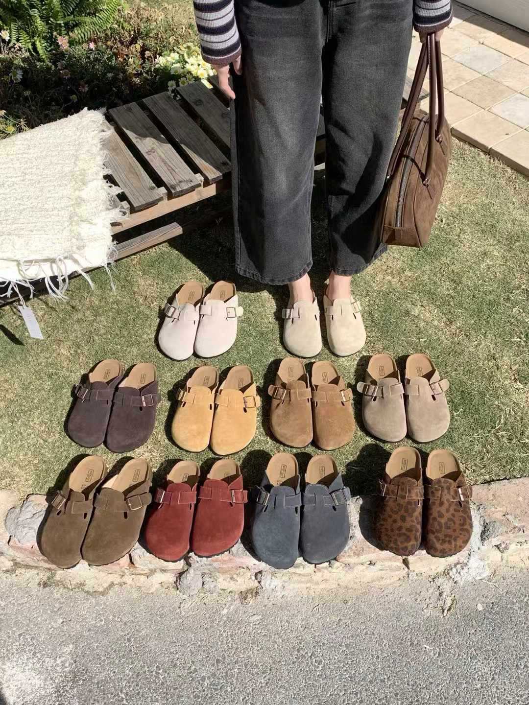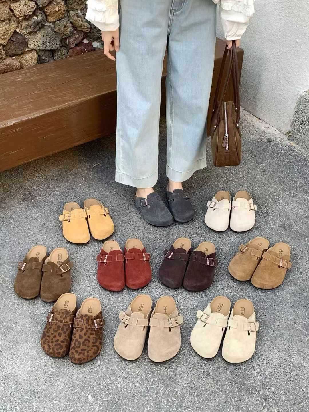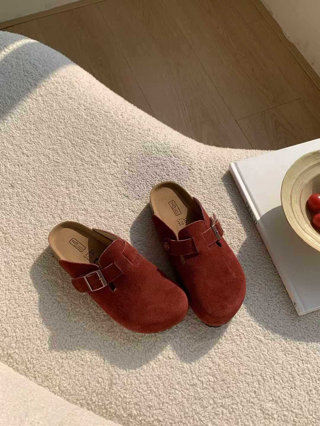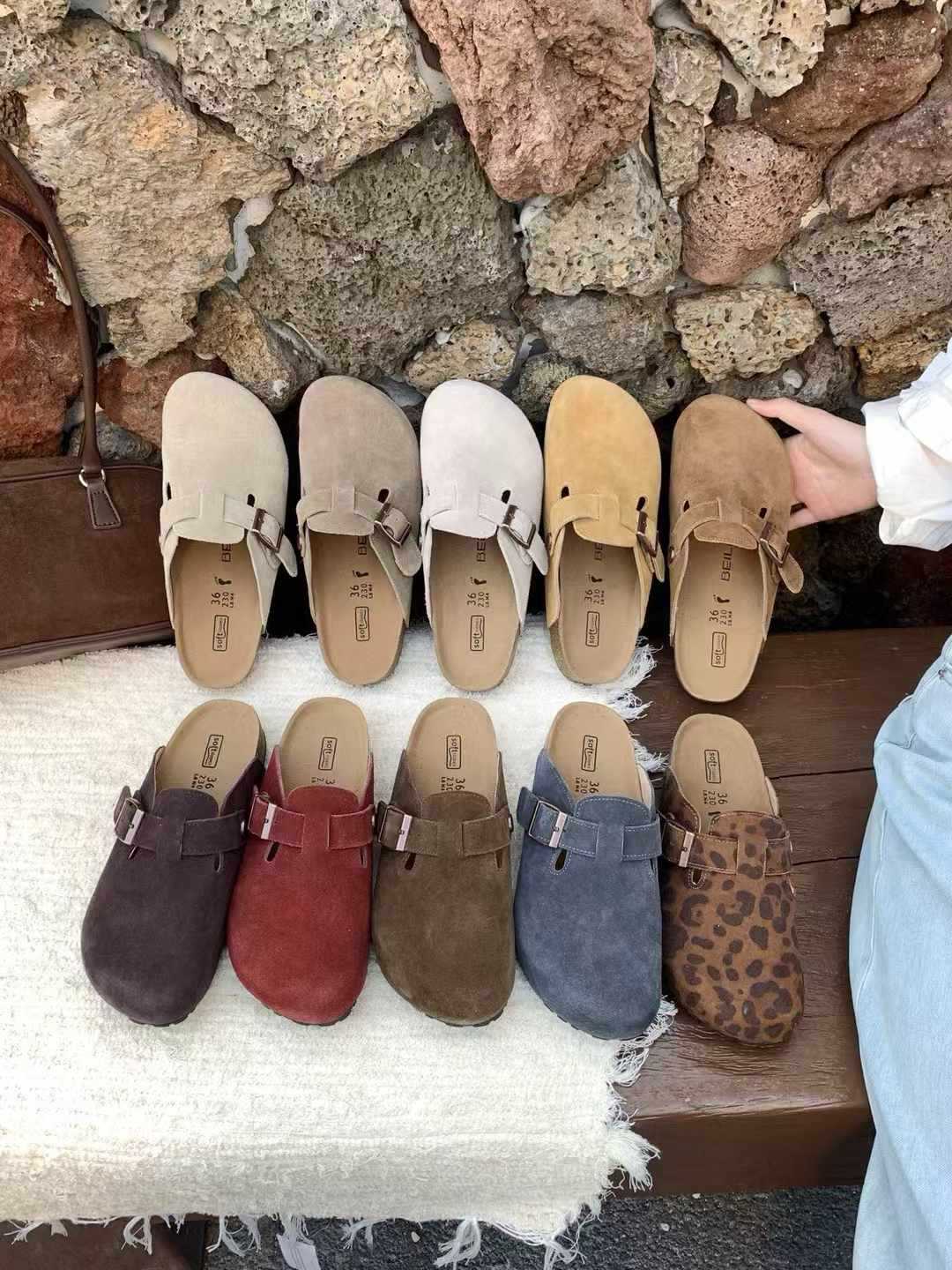 여성용 천연가죽 앞코가 가죽으로 된 하프 슬리퍼, 2026년 봄 신상품, 가볍고 부드러운 밑창, 편하게 신을 수 있는 하프 슬리퍼