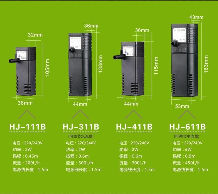 어항 필터 3 대 1 산소 증가 거북이 탱크 필터 소형 잠수정 펌프 음소거 HJ-111B/311B