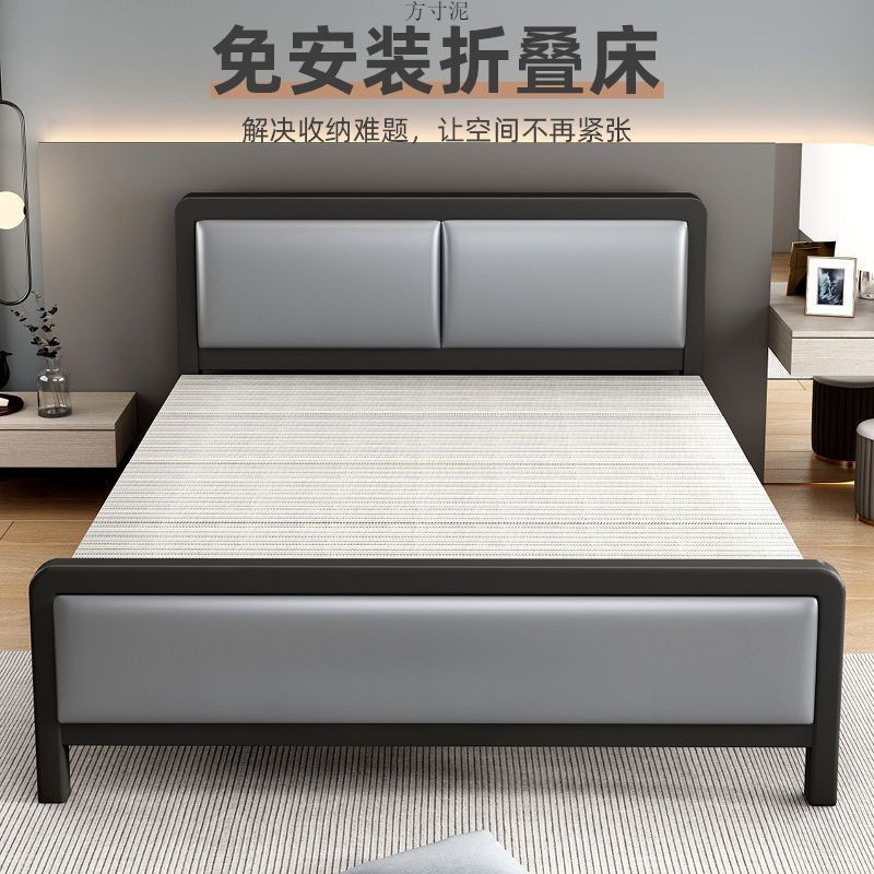 4 배 접이식 침대 더블 침대 가정용 간단한 나무 침대 아이언 침대 싱글 침대 렌탈 룸 플레이트 침대 점심 휴식 침대 철공 침대스토어 가기