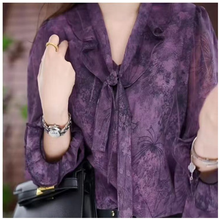 TikTok 폭발 2025 봄 새로운 패션 활 인쇄 풀오버 여성의 얇은 슬림 셔츠 여성 의류스토어 가기