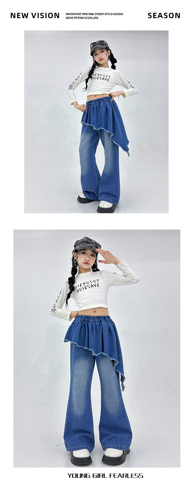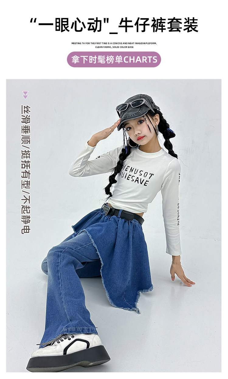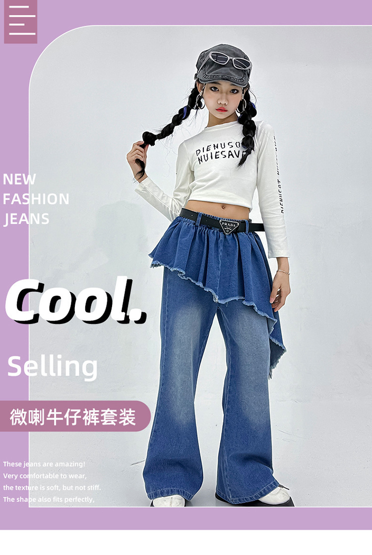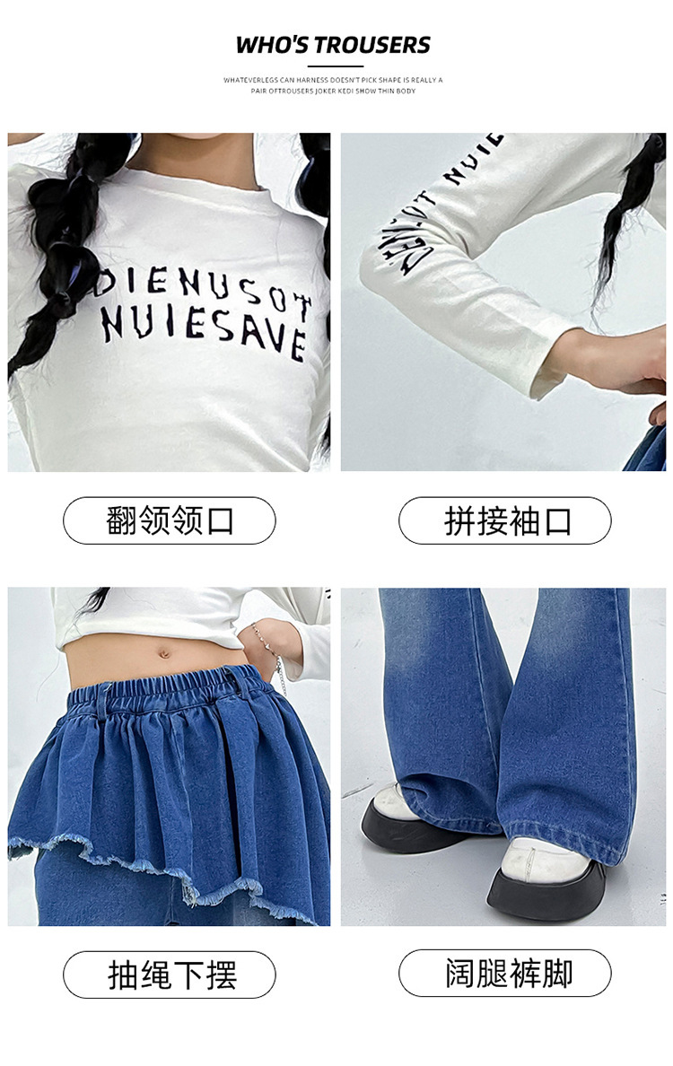 소녀 아메리칸 스타일 마이크로 라 청바지 스파이스 걸스 봄과 가을 불규칙한 가짜 투피스 컬롯 샷 스트리트 디자인 센스 바지스토어 가기