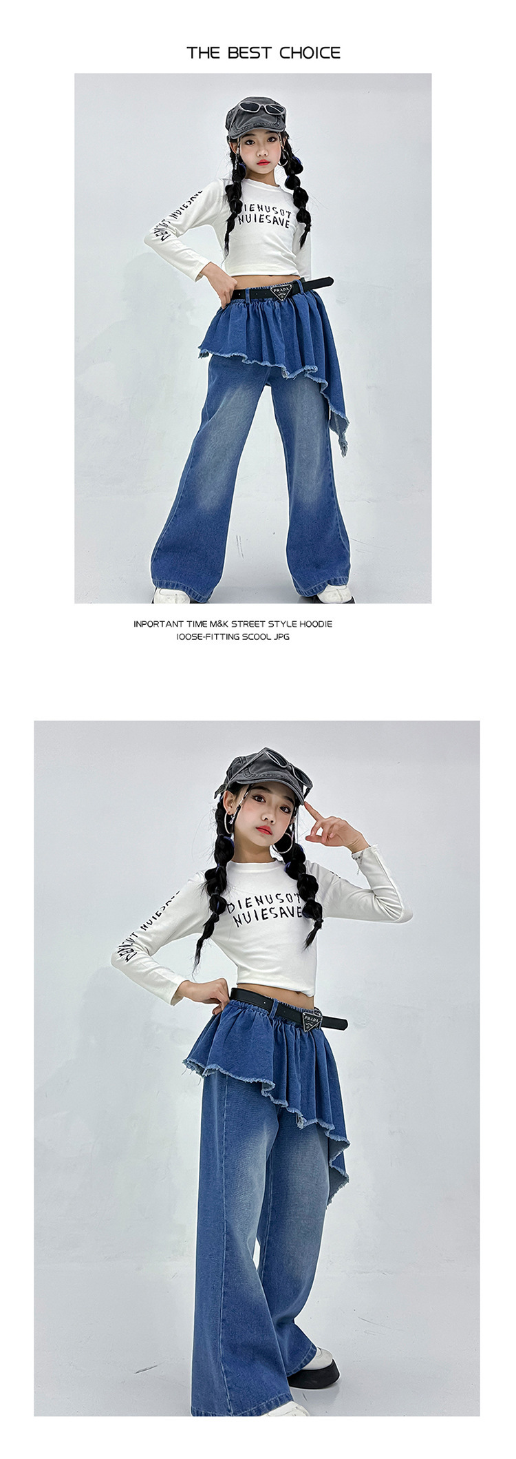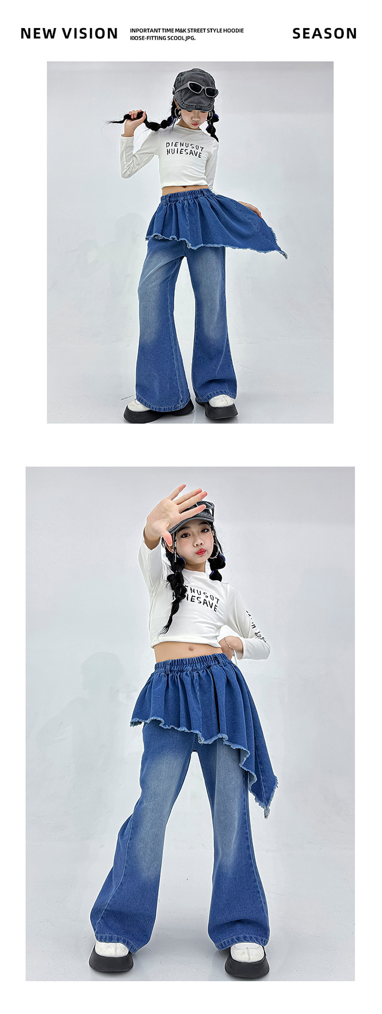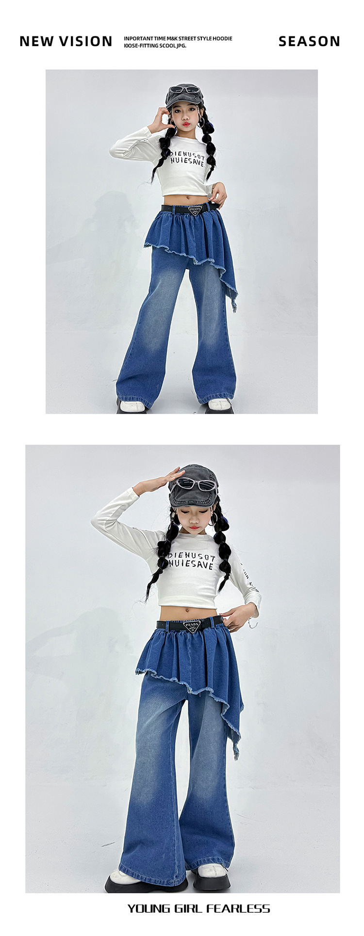 소녀 아메리칸 스타일 마이크로 라 청바지 스파이스 걸스 봄과 가을 불규칙한 가짜 투피스 컬롯 샷 스트리트 디자인 센스 바지스토어 가기