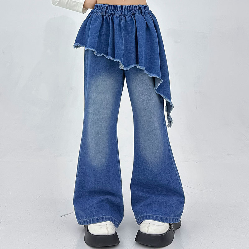 소녀 아메리칸 스타일 마이크로 라 청바지 스파이스 걸스 봄과 가을 불규칙한 가짜 투피스 컬롯 샷 스트리트 디자인 센스 바지