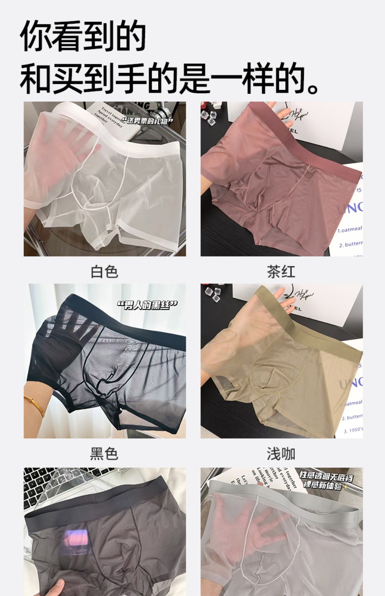 20D 남성용 레이스 속옷, 메쉬, 가볍고 투명하며 무감각, 원피스 아이스 실크, 투명, 섹시하고 얇은 사각형스토어 가기