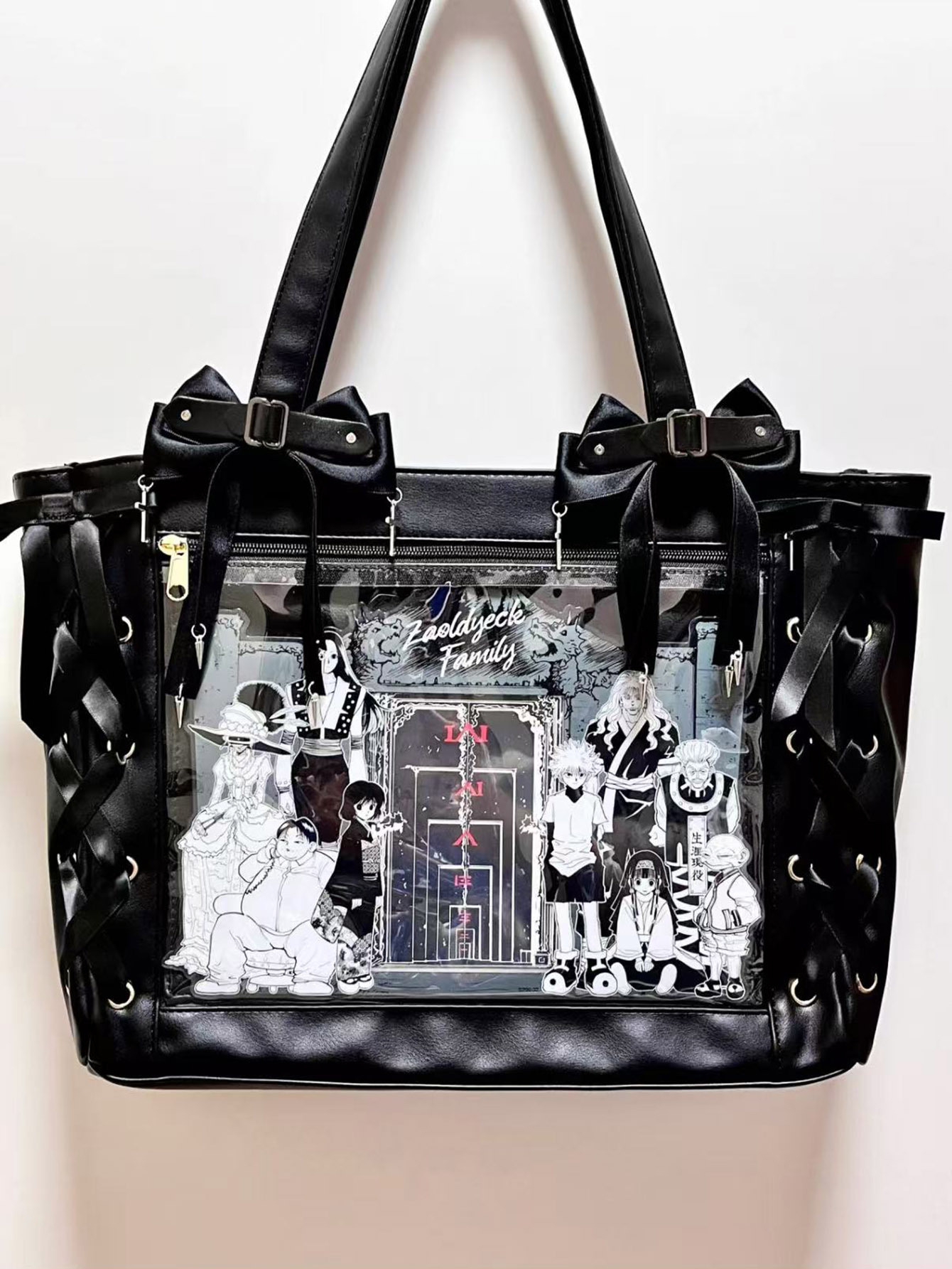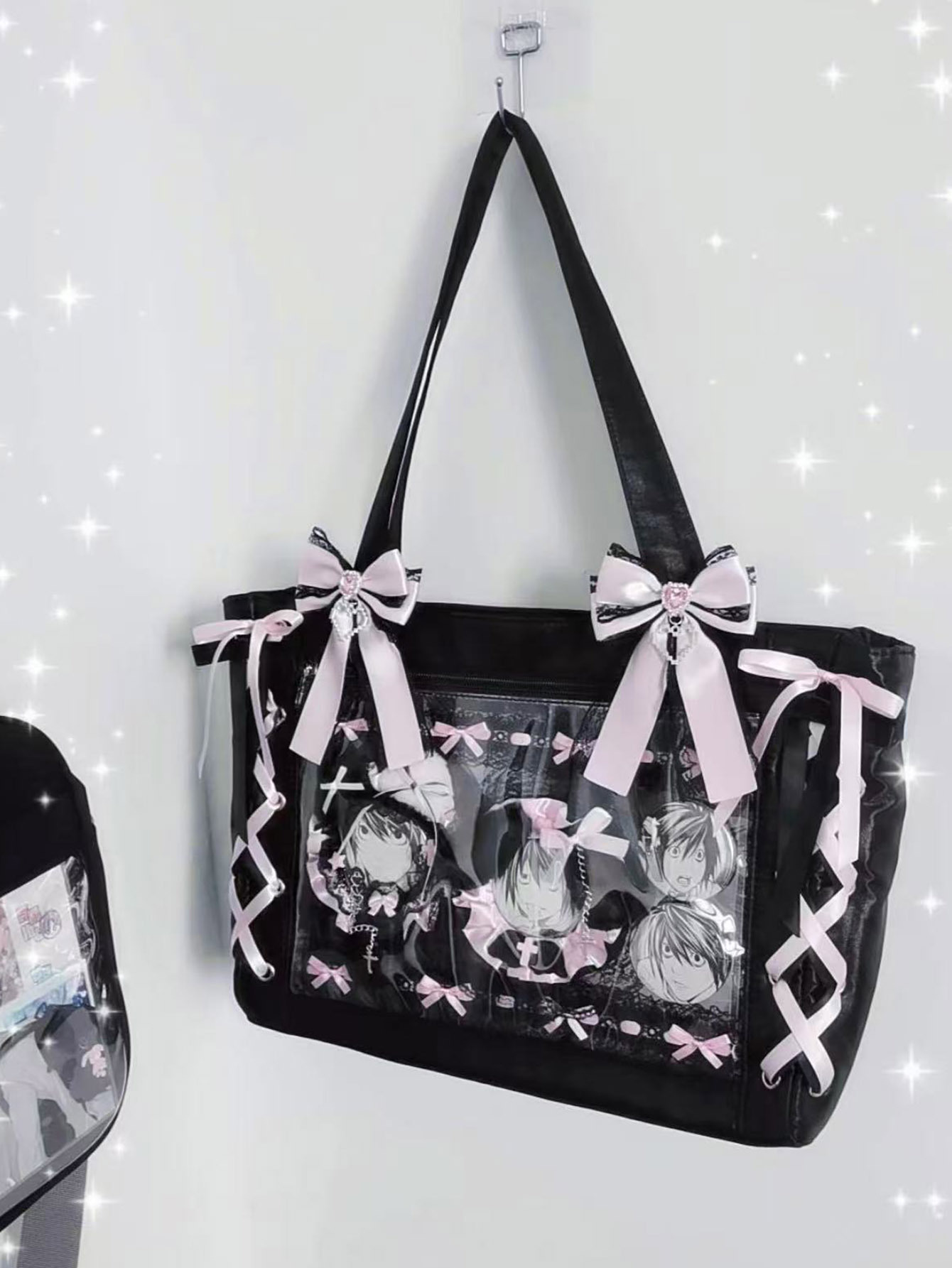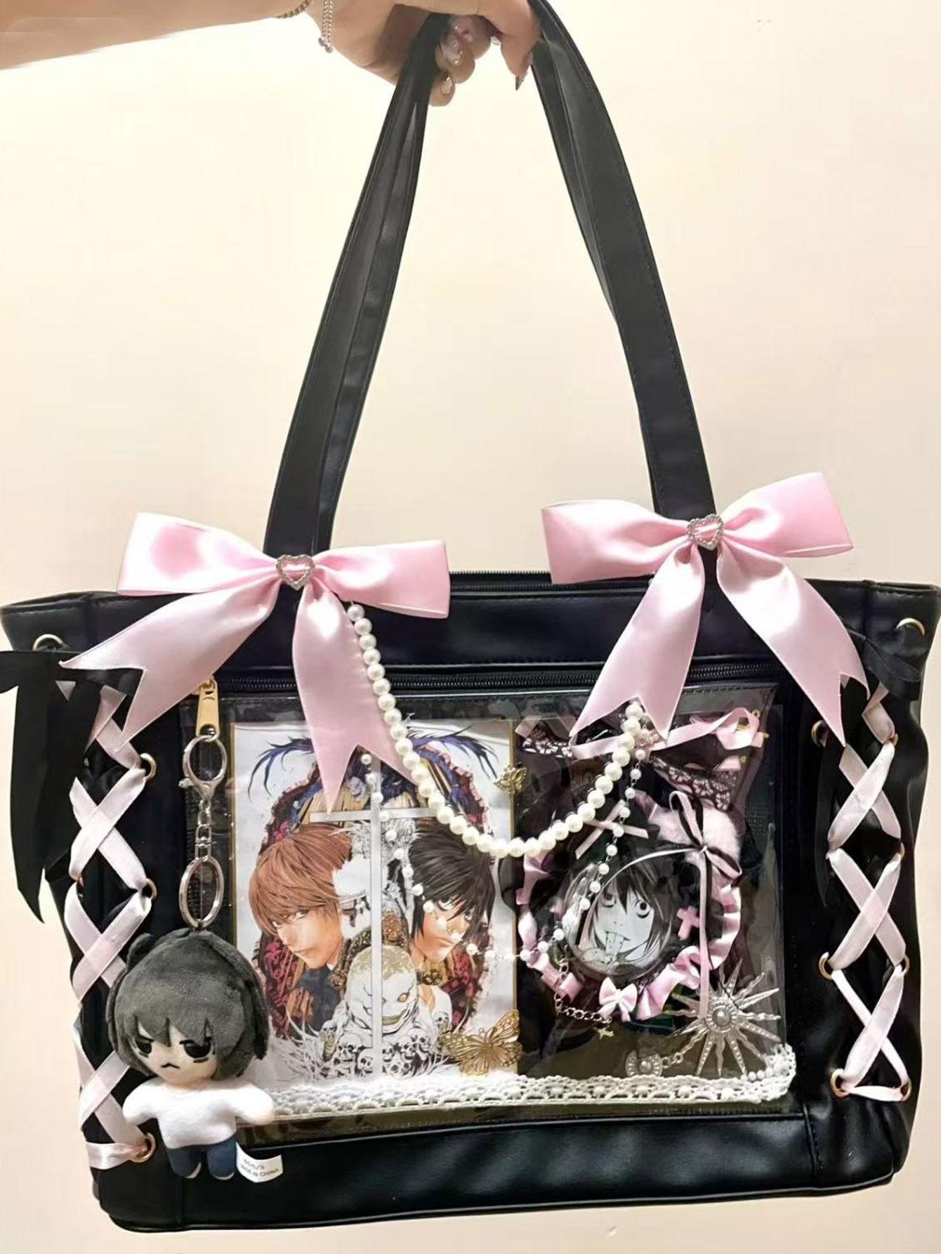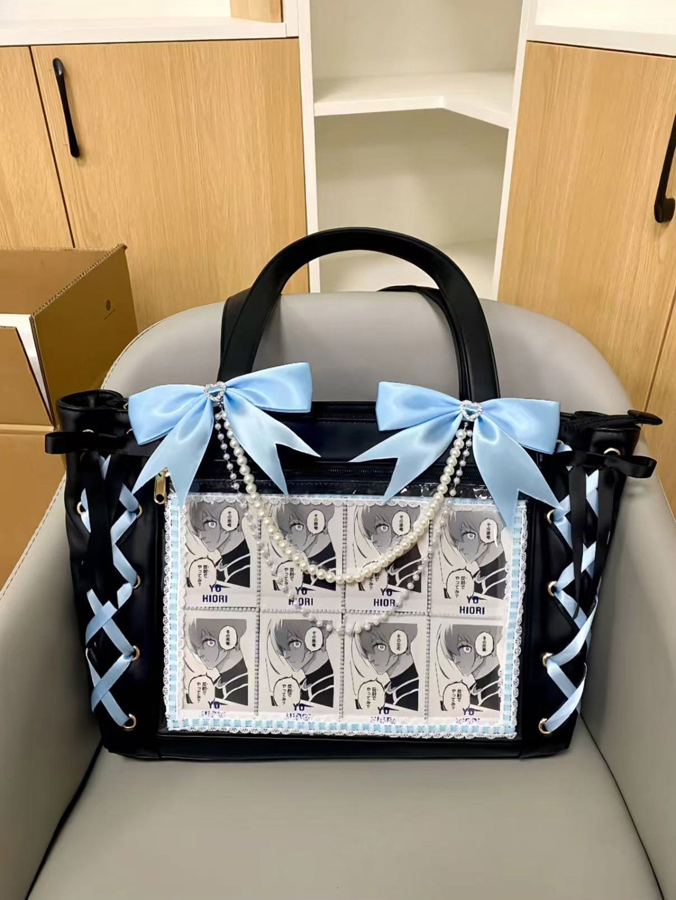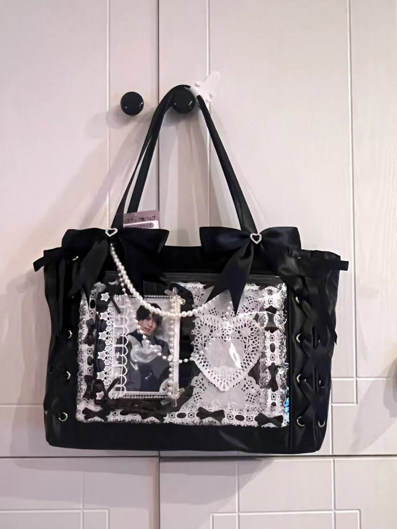 일본식 센통 국경 대형 토트 올매치 리본 활 외국식 핸드백 캐주얼 투명 숄더 백