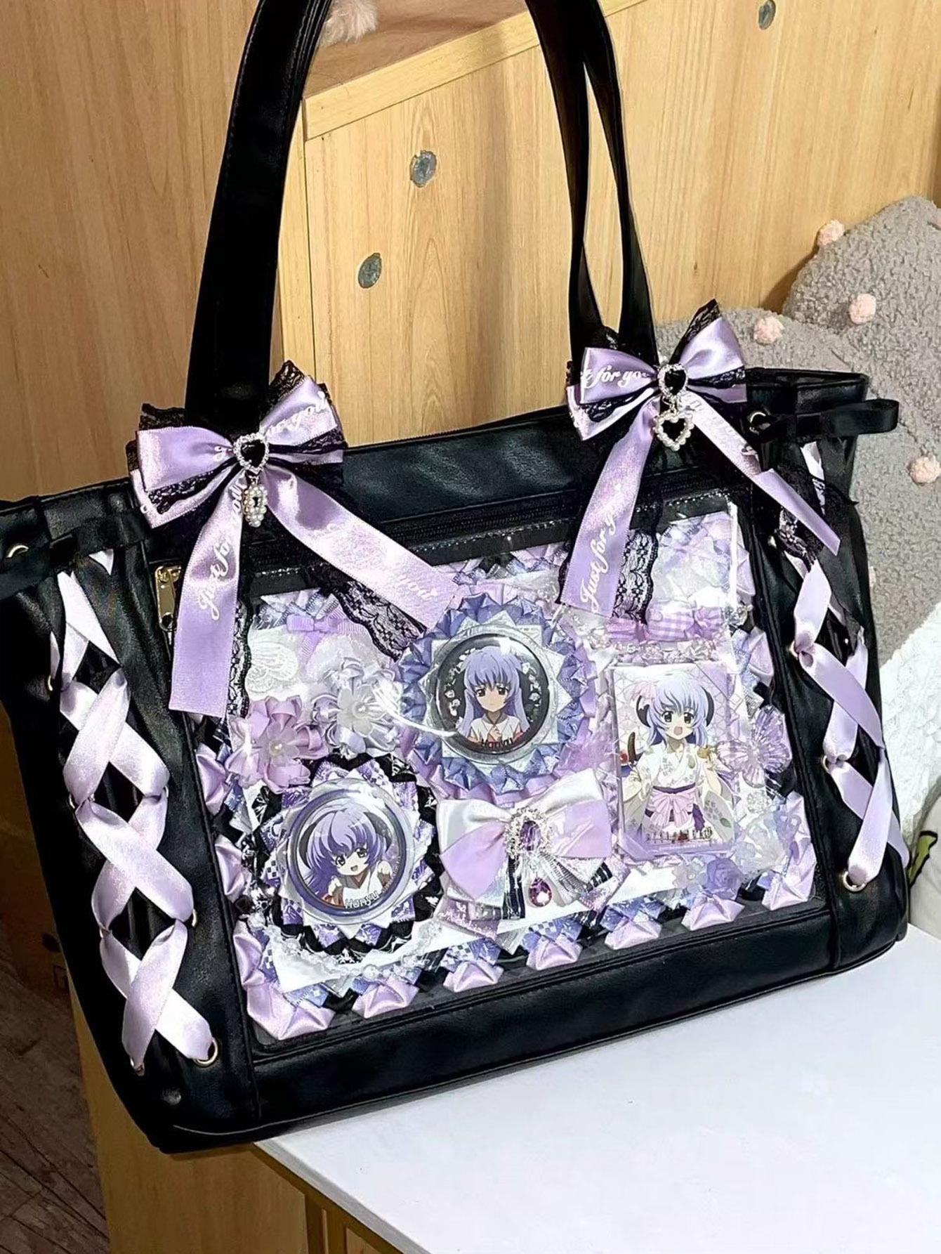 일본식 센통 국경 대형 토트 올매치 리본 활 외국식 핸드백 캐주얼 투명 숄더 백스토어 가기