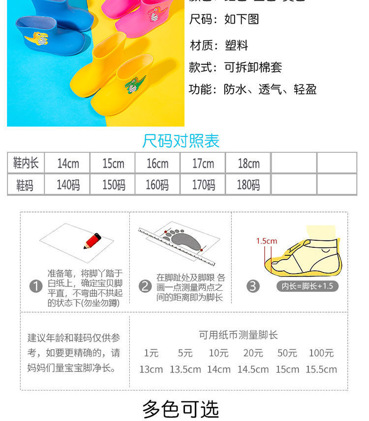 어린이 비 부츠 소년 방수 장화 여자 아기의 경량 비 슬립 워터 부츠 어린이 작은 공룡 워터 부츠스토어 가기