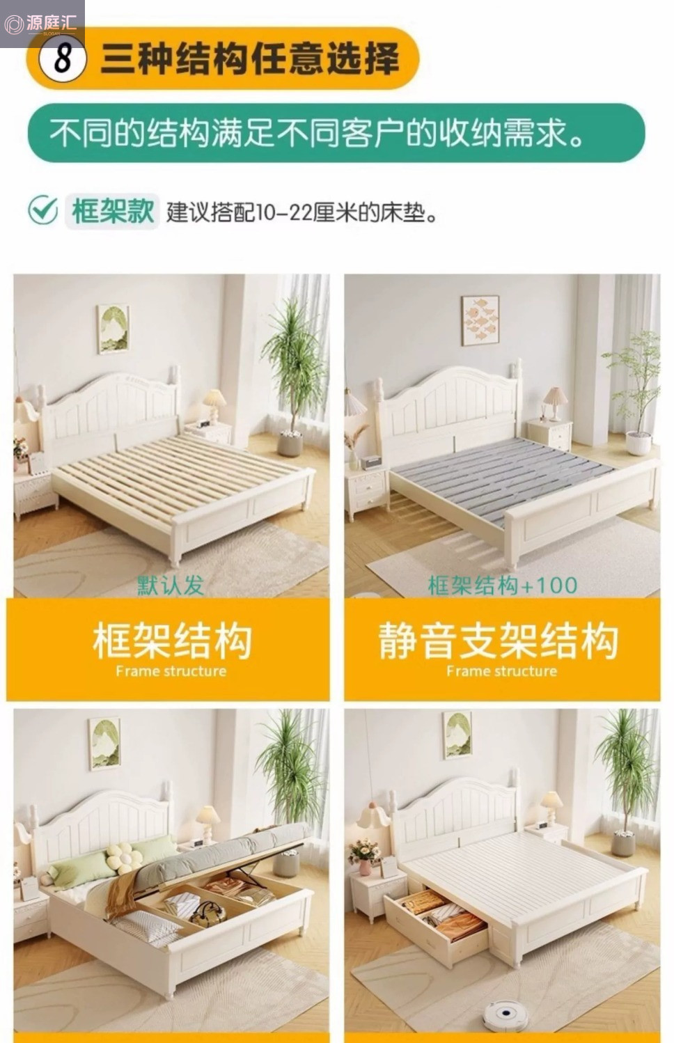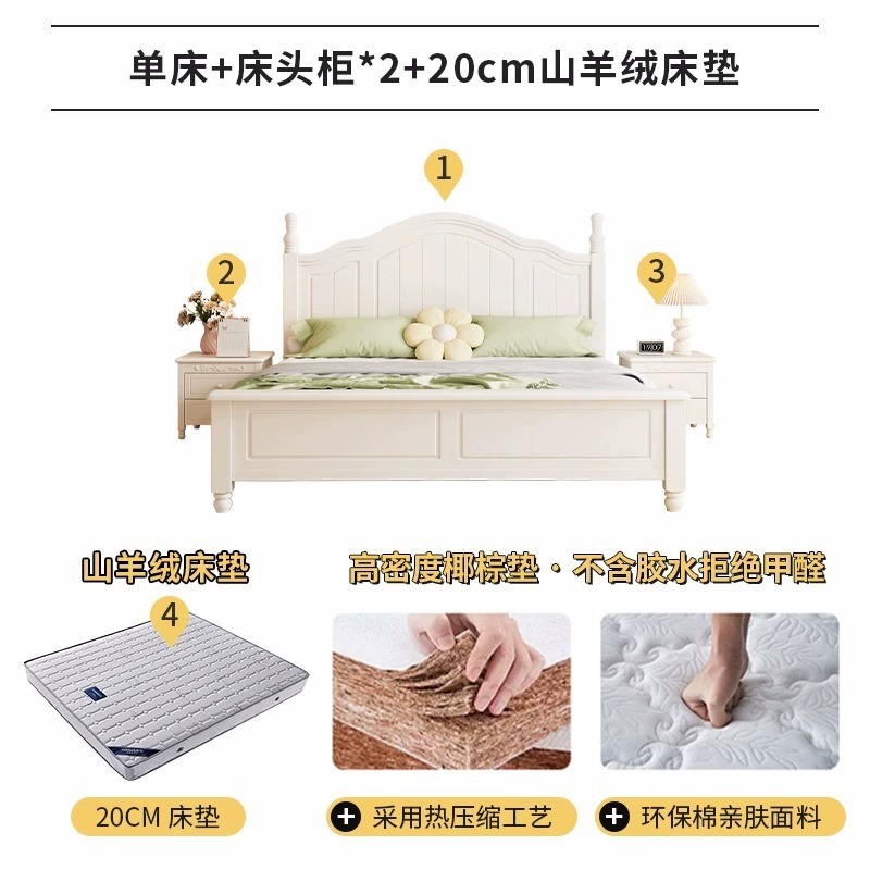 • 침대 + 20cm 코코넛 야자뼈 보호 매트리스 + 침대 옆 탁자 * 2 조합 모델
