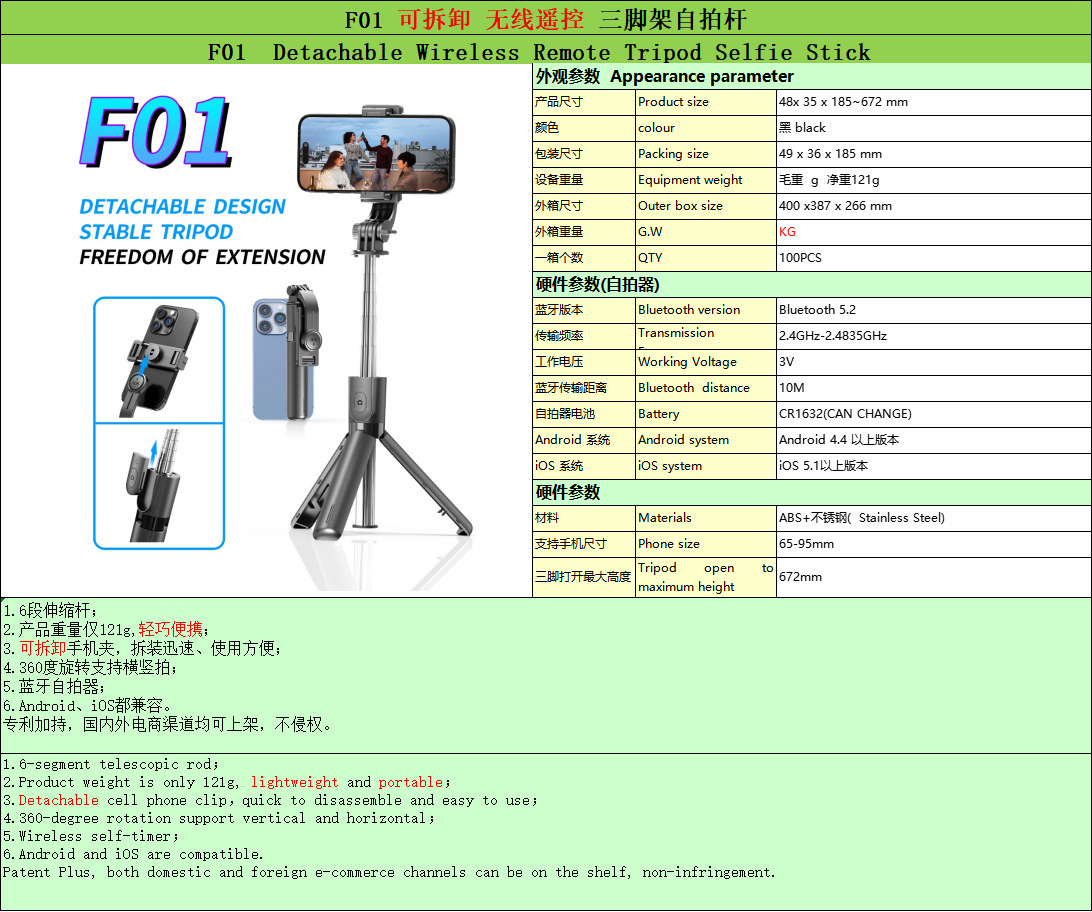 새로운 F01 삼각대 셀카 스틱 휴대 전화 범용 휴대용 휴대용 카메라 라이브 방송 스탠드 여행 vlog 비디오