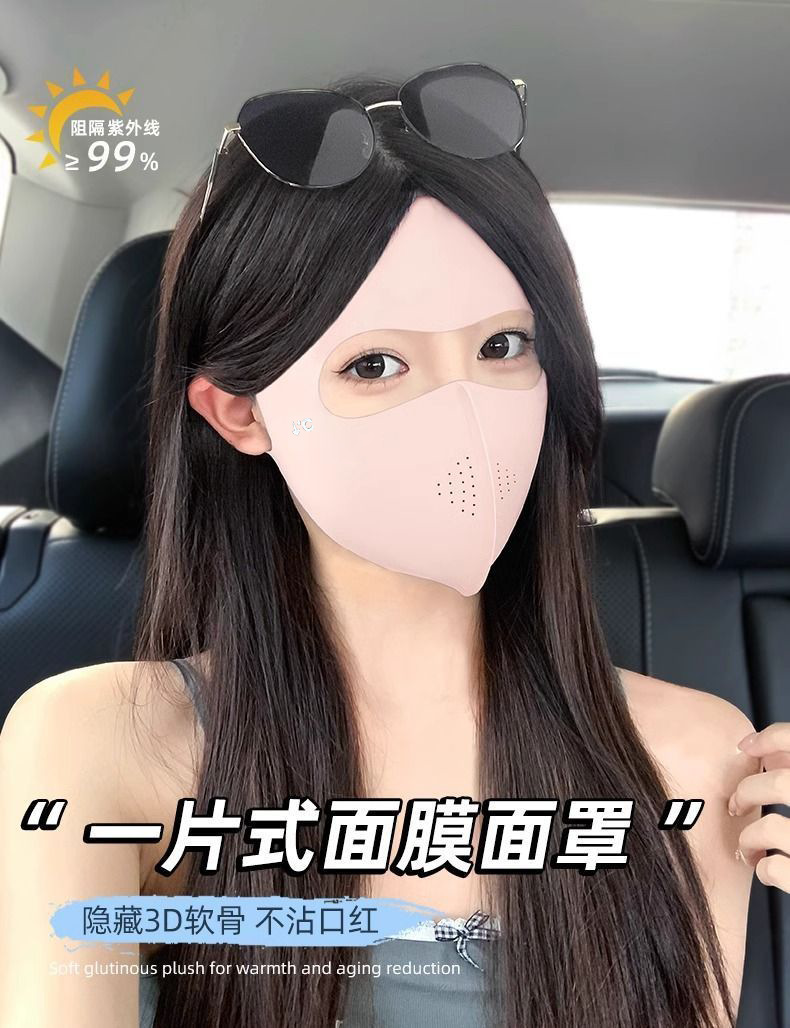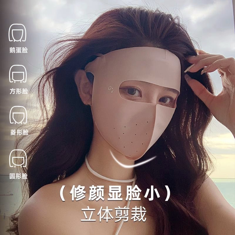 새로운 야외 승마 추적없는 얼굴 지니 선 스크린 여성의 UV 보호 아이스 실크 마스크 여름 양산 얼굴 마스크