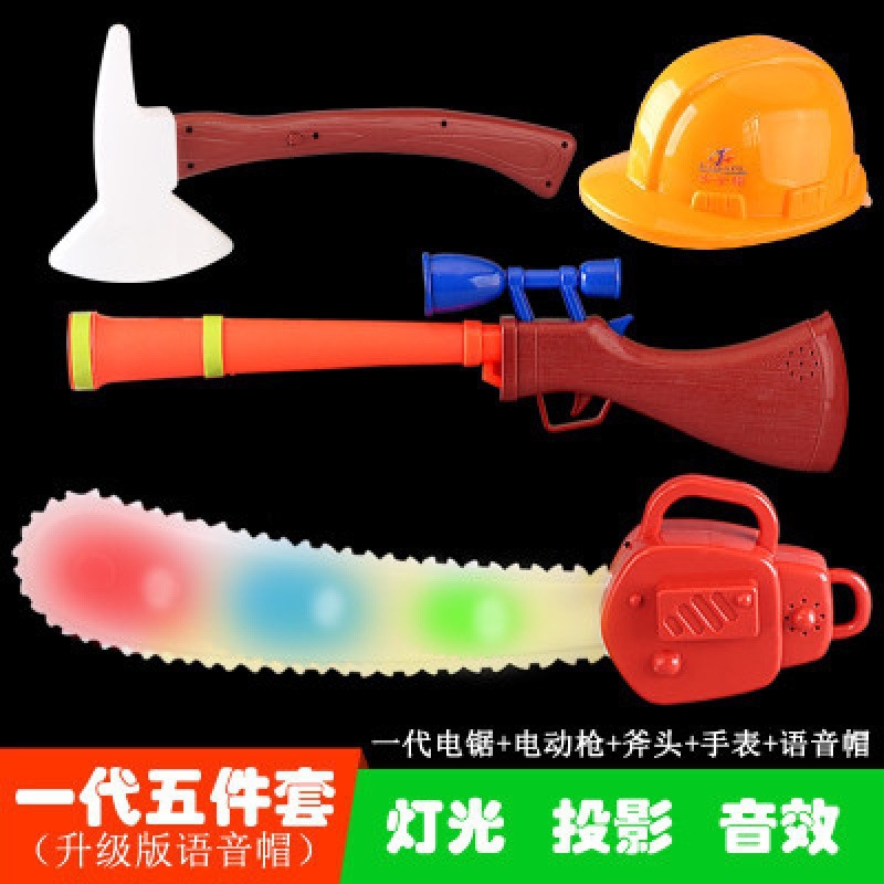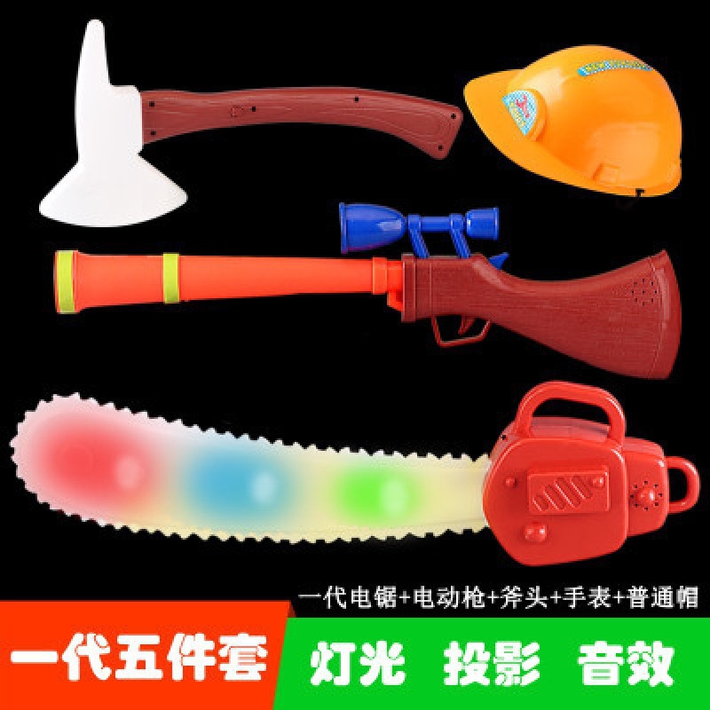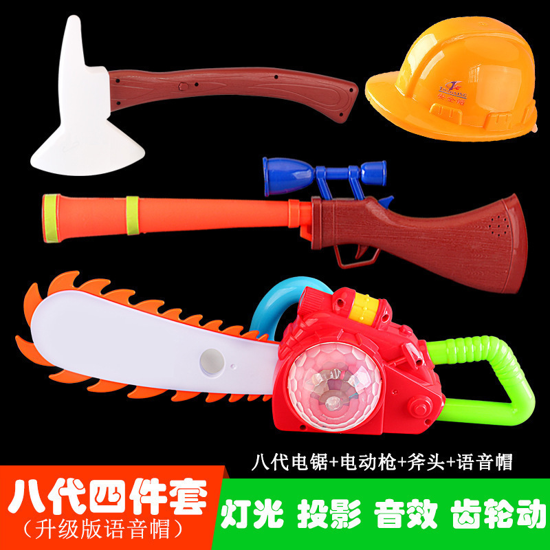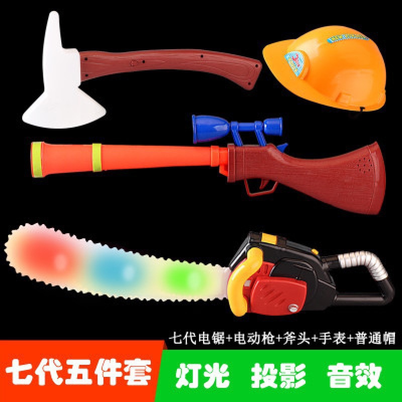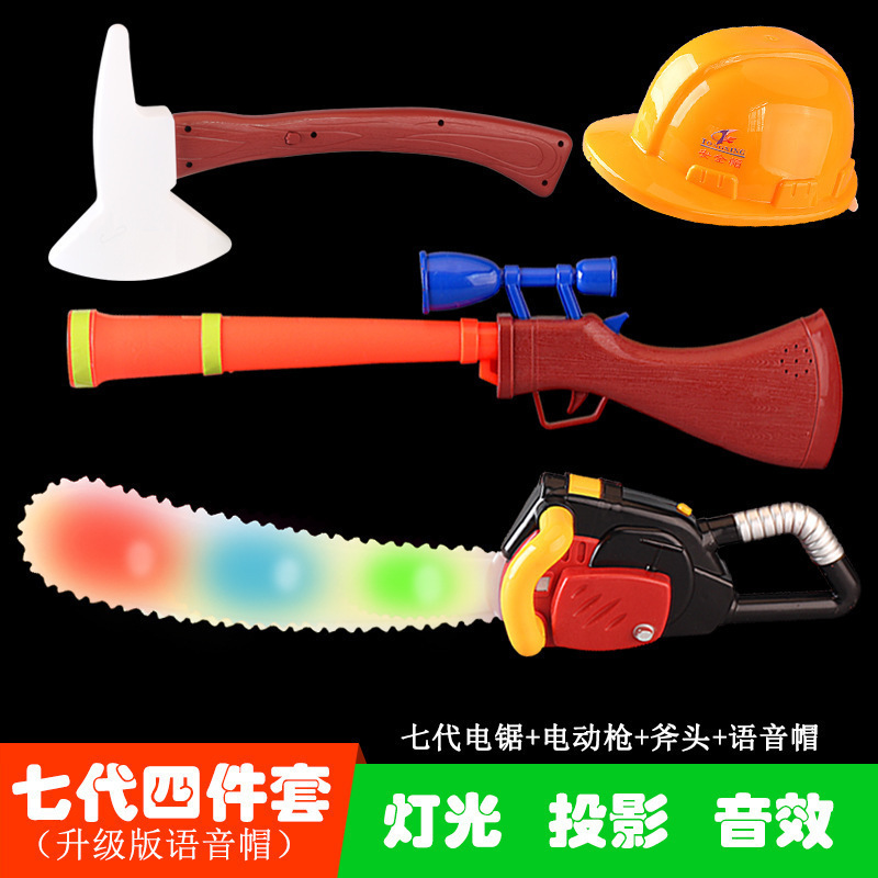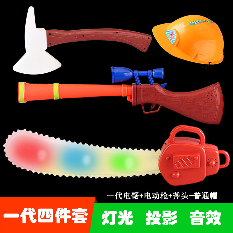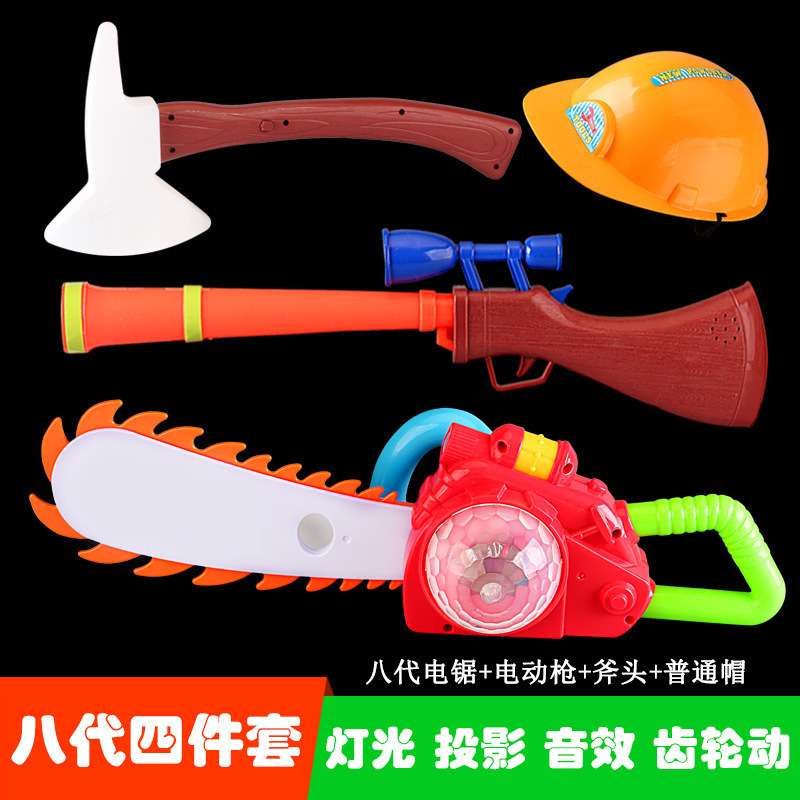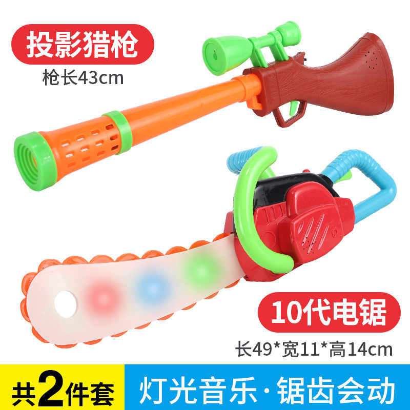 대머리 전기 톱 장난감 나무 절단 도구 톱 벌목 장비 전기 프로젝션 총 세트 3 세 어린이 장난감