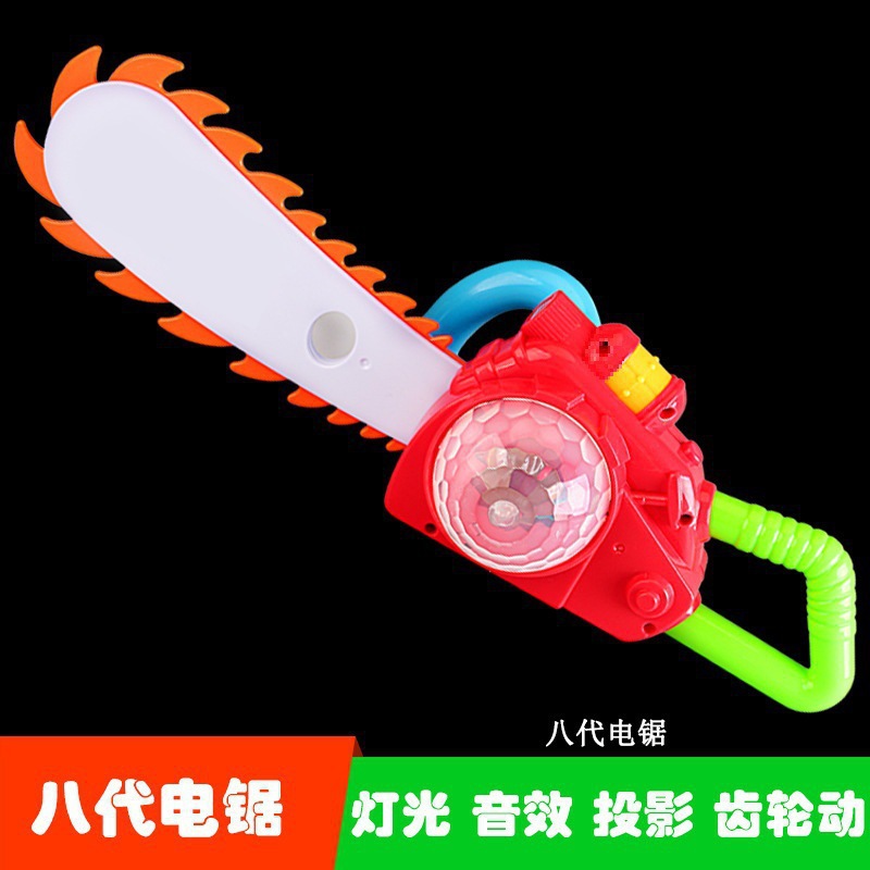 대머리 전기 톱 장난감 나무 절단 도구 톱 벌목 장비 전기 프로젝션 총 세트 3 세 어린이 장난감스토어 가기