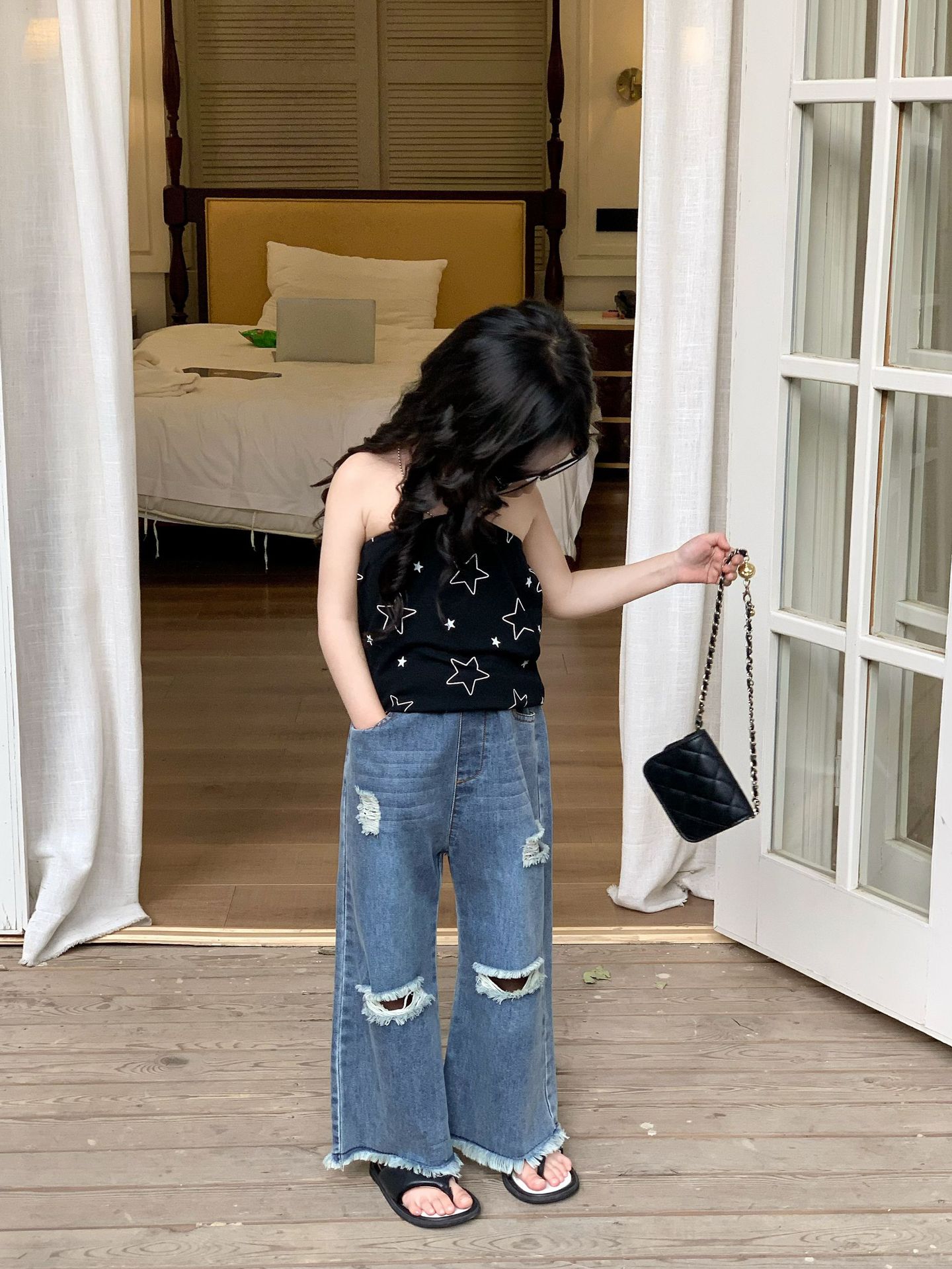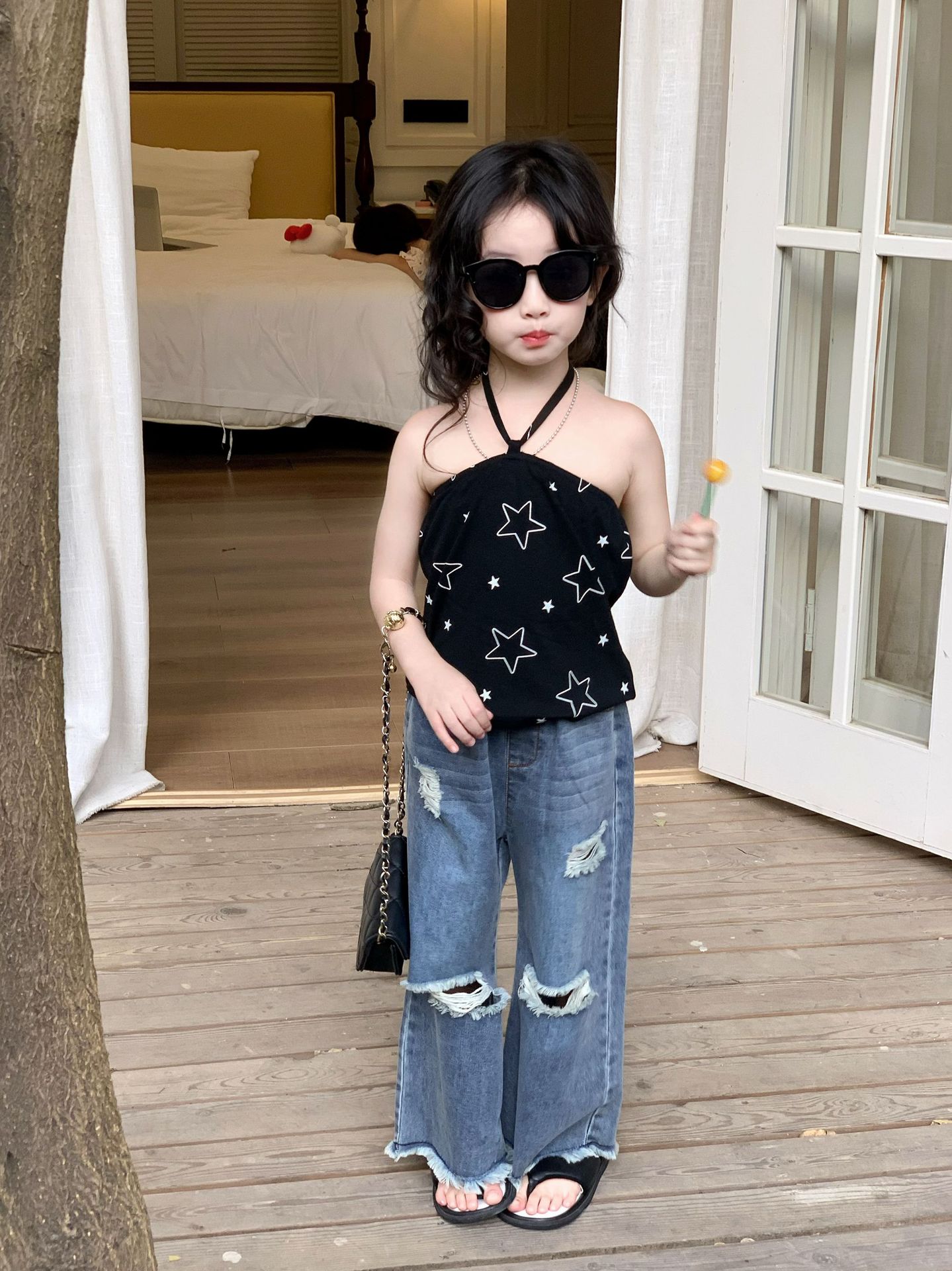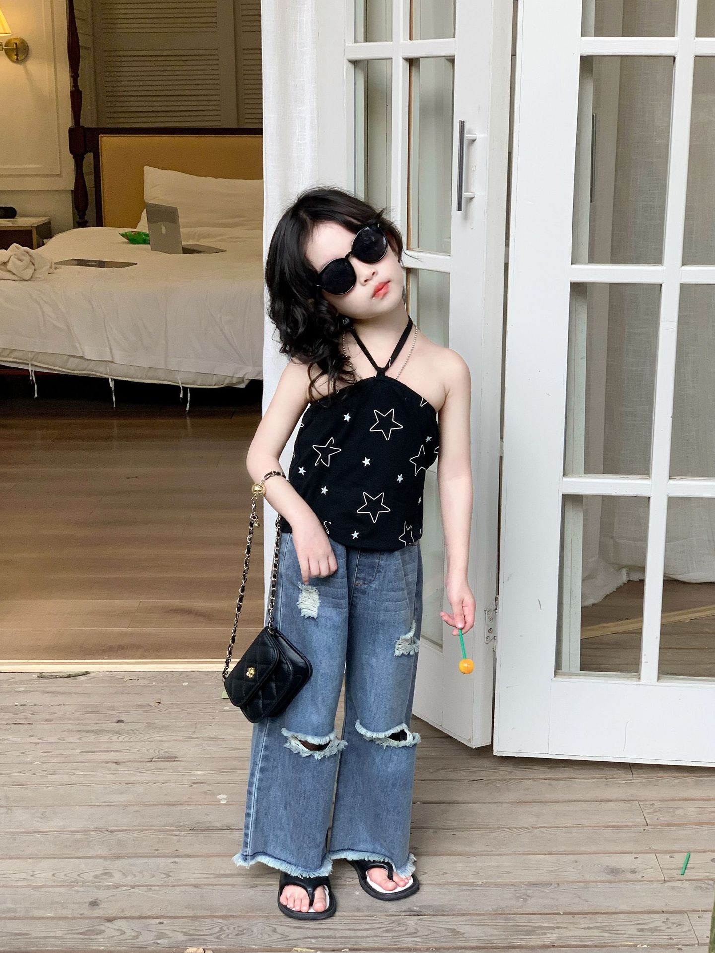 여자 조끼 2025 여름 새 어린이 2 ~ 7 세 한국 스타일 한방 조끼 어린이 스트랩 탑스토어 가기