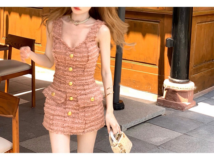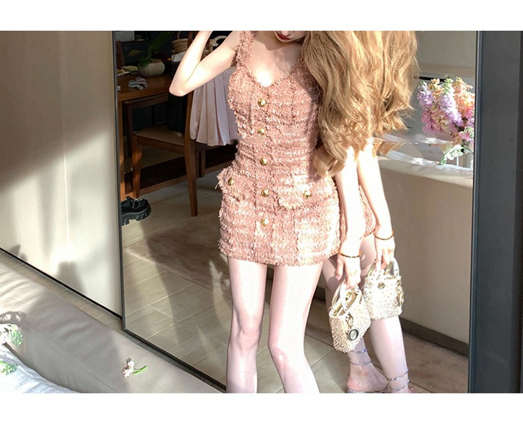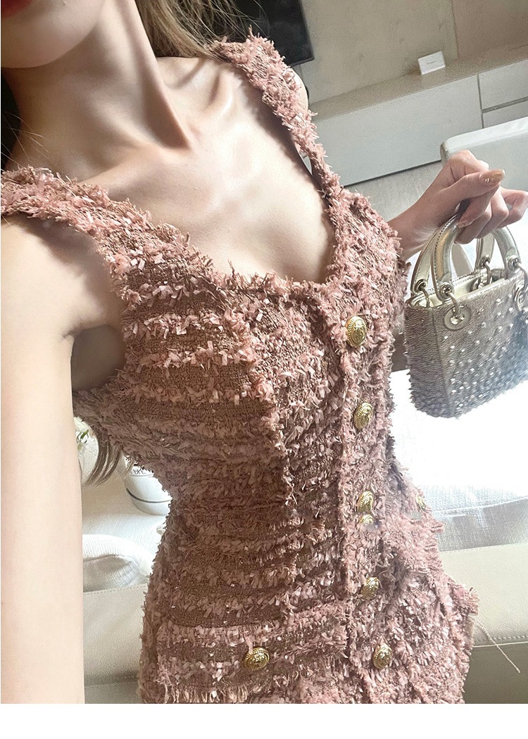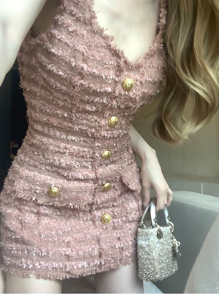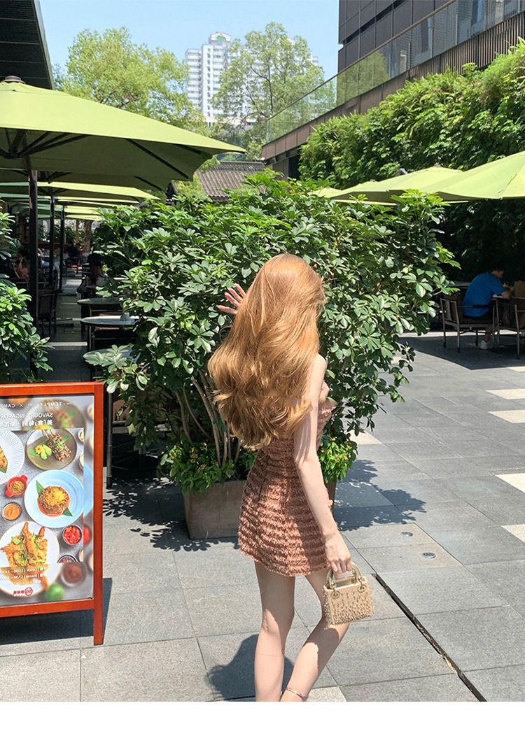 향수 미니 버스이 문제 B 중공업 낮잠 과정에 골드 버클 세트 염료 화이트 기질 슬링 원피스 여성의 새로운스토어 가기
