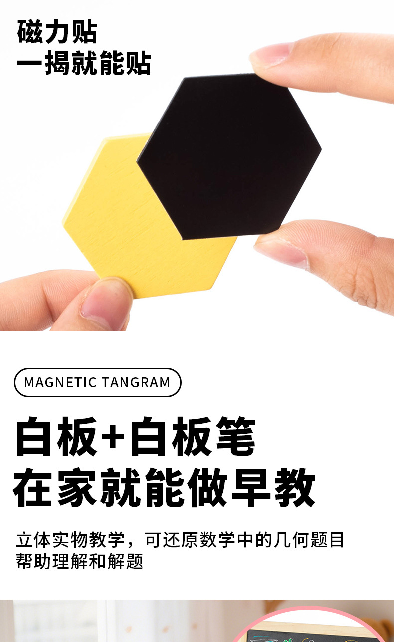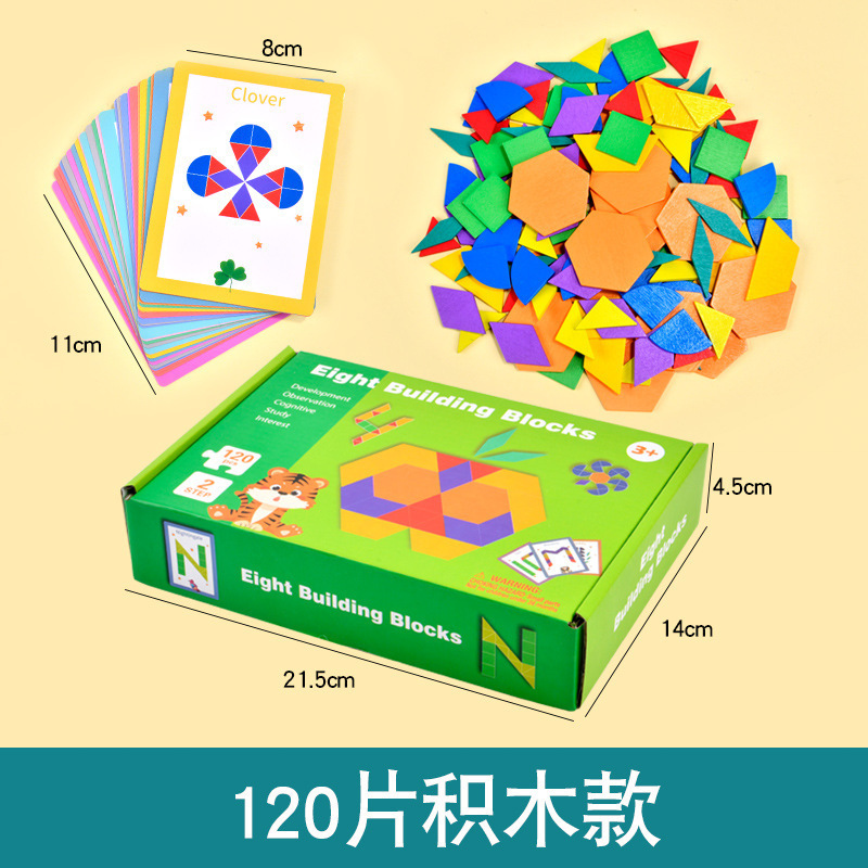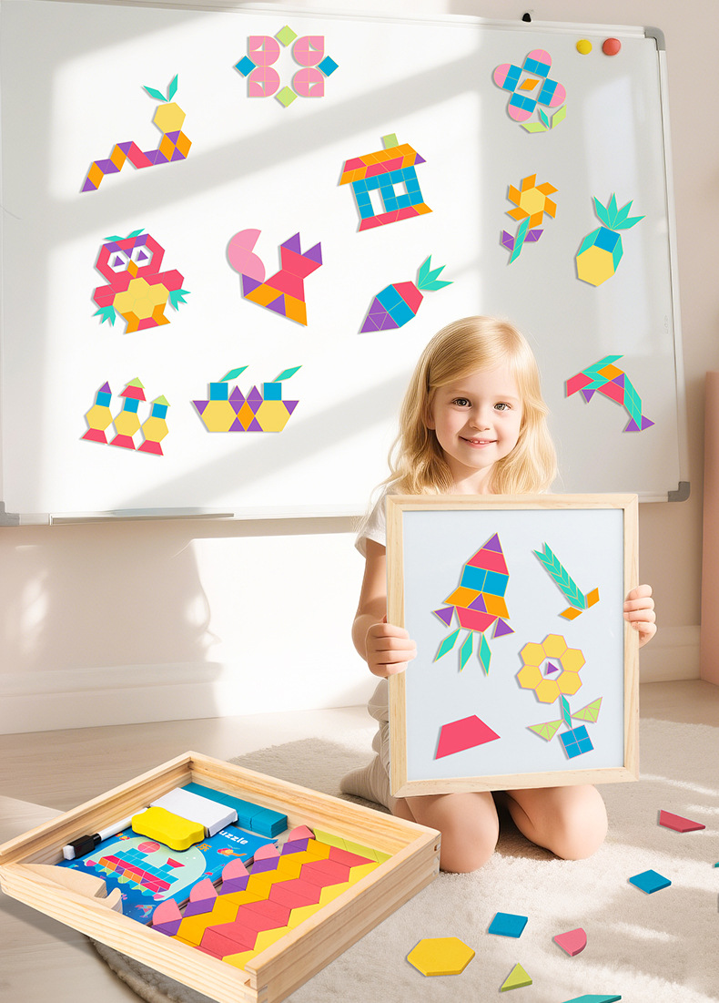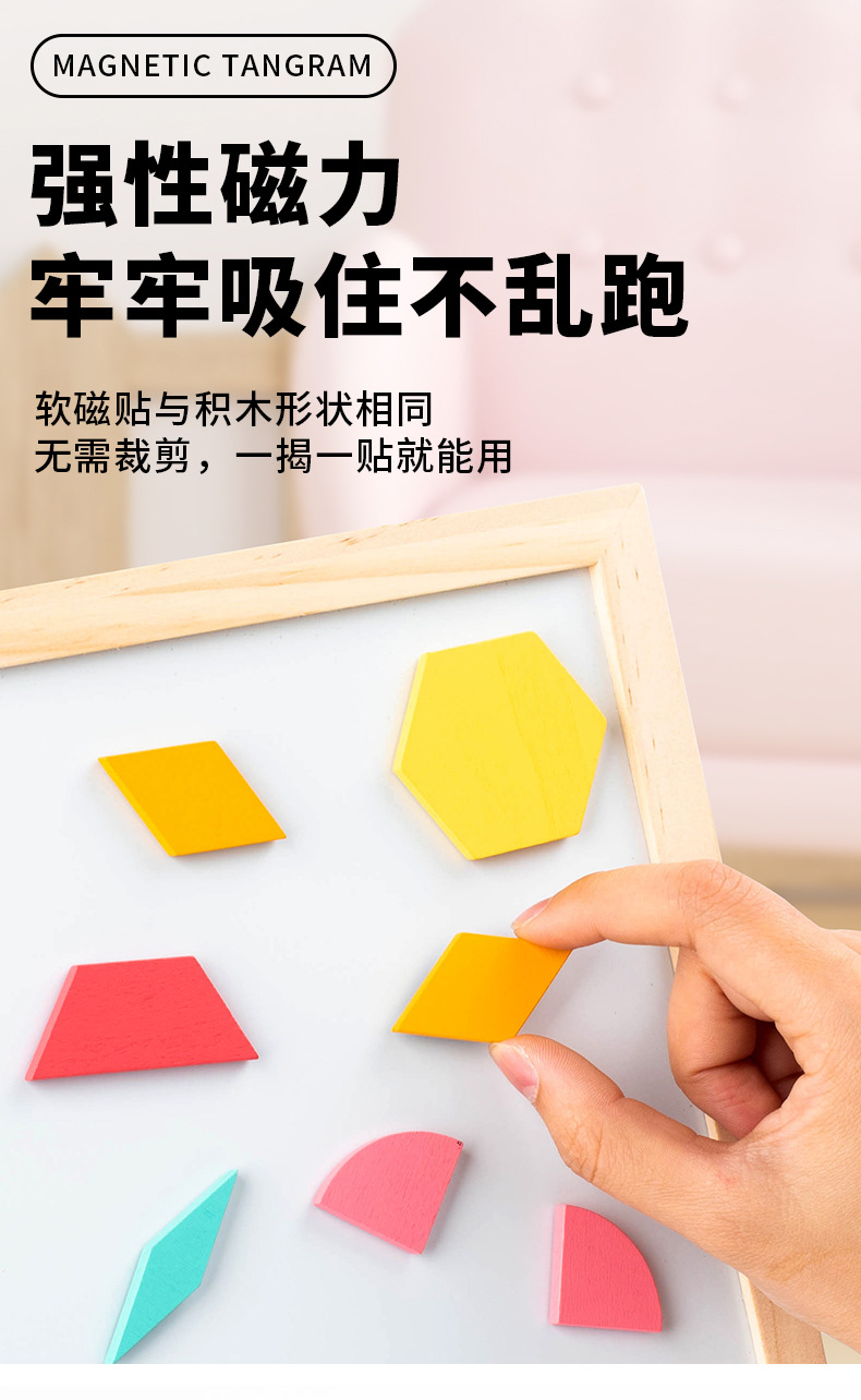 128片磁力几何七巧板拼图:1kg/18*18*4.5,木制收纳盒