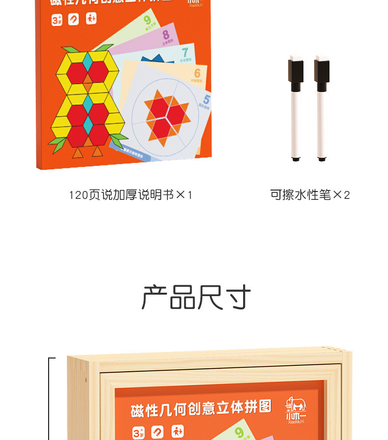 磁力几何拼图标准款180片:0.75kg 牛皮盒 产品尺寸22.5*22.5*3.8