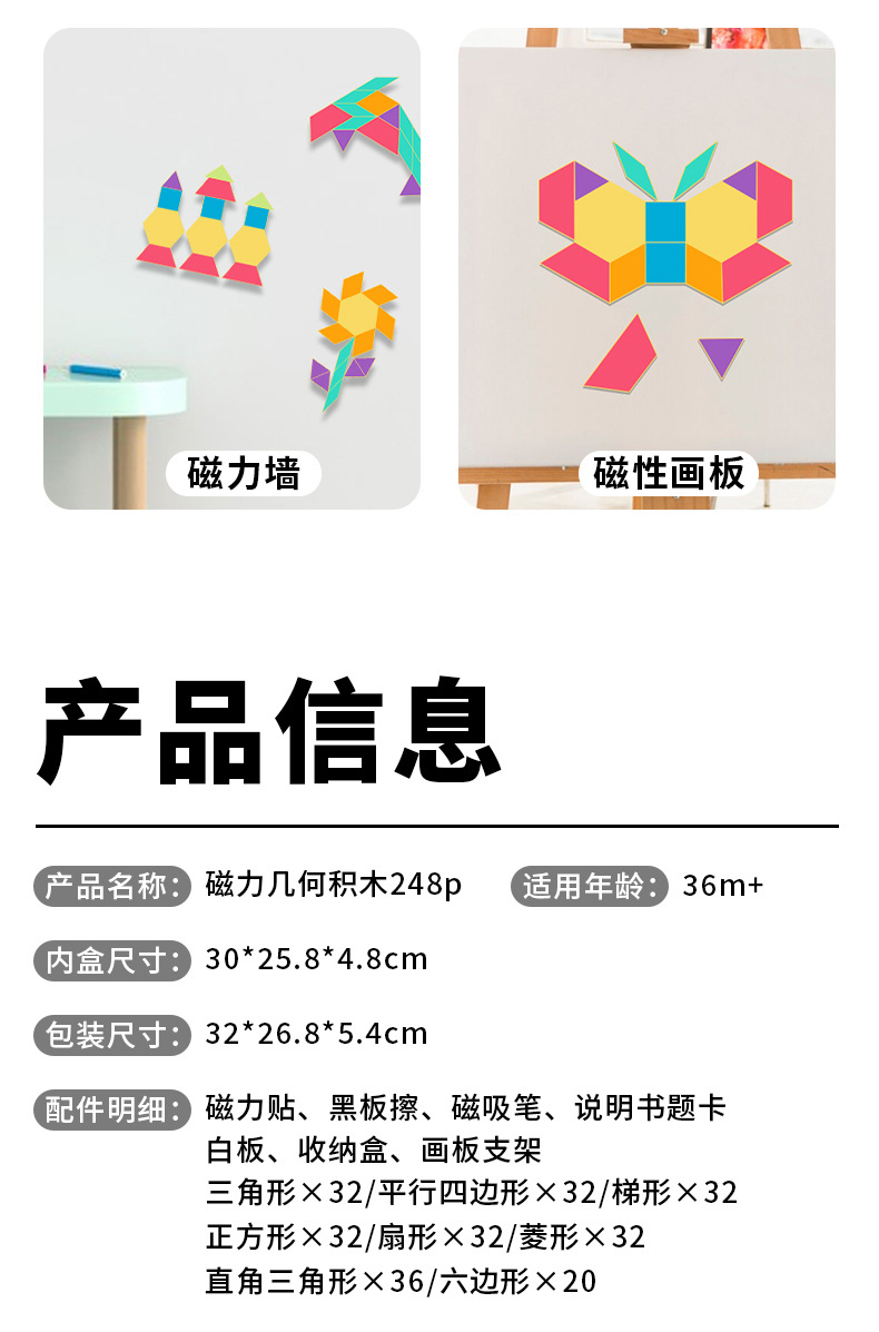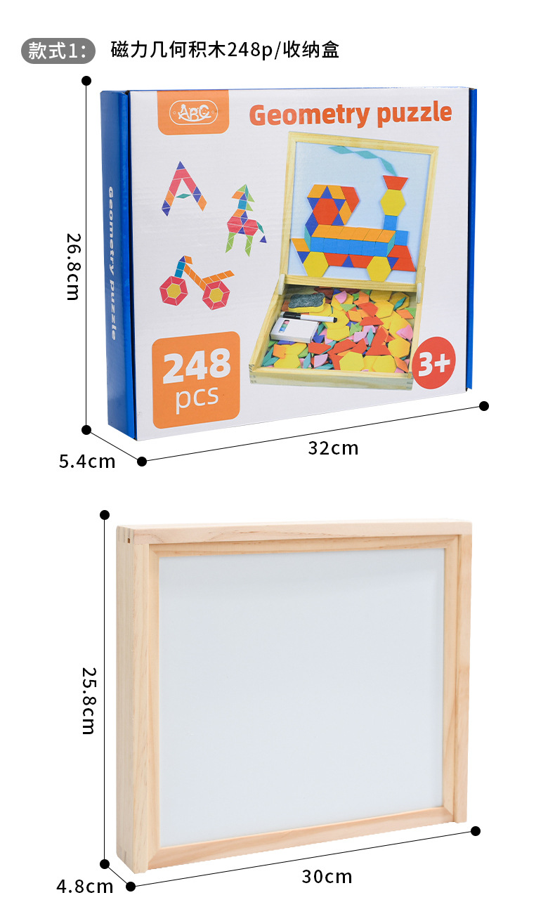 248片木盒磁性几何七巧板(CPC/CE):1.45kg / 32*27*5cm,20套 / 56.5*33*56cm / 29kg