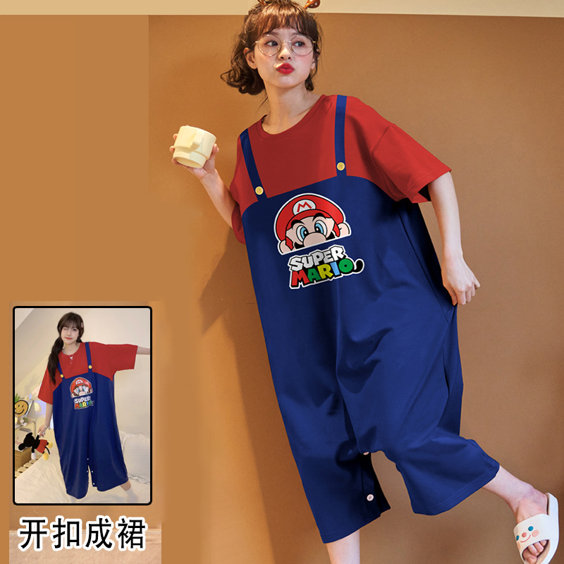 나이트가운 여성 2025 년 여름 반팔 한 부분 잠옷 플러스 사이즈 안티 라이트 귀여운 임산부 통통녀 홈 의류스토어 가기