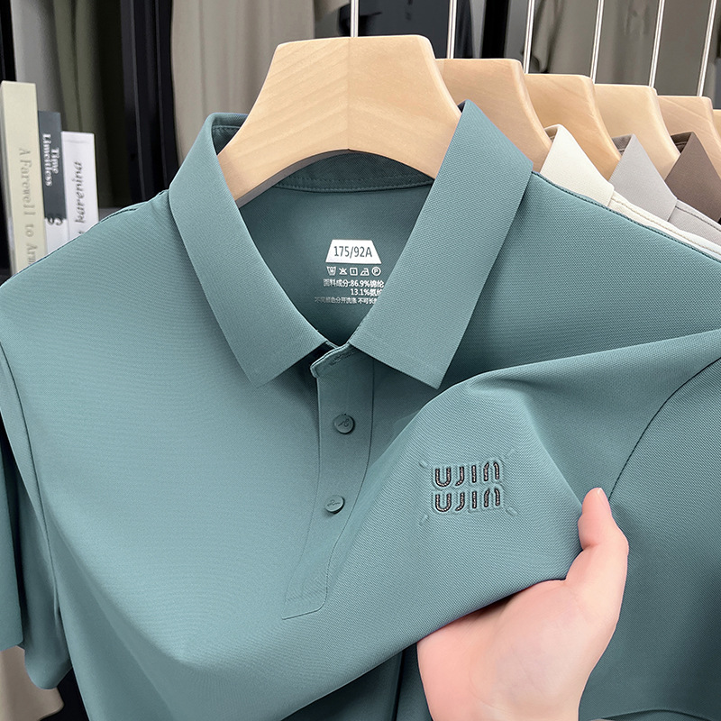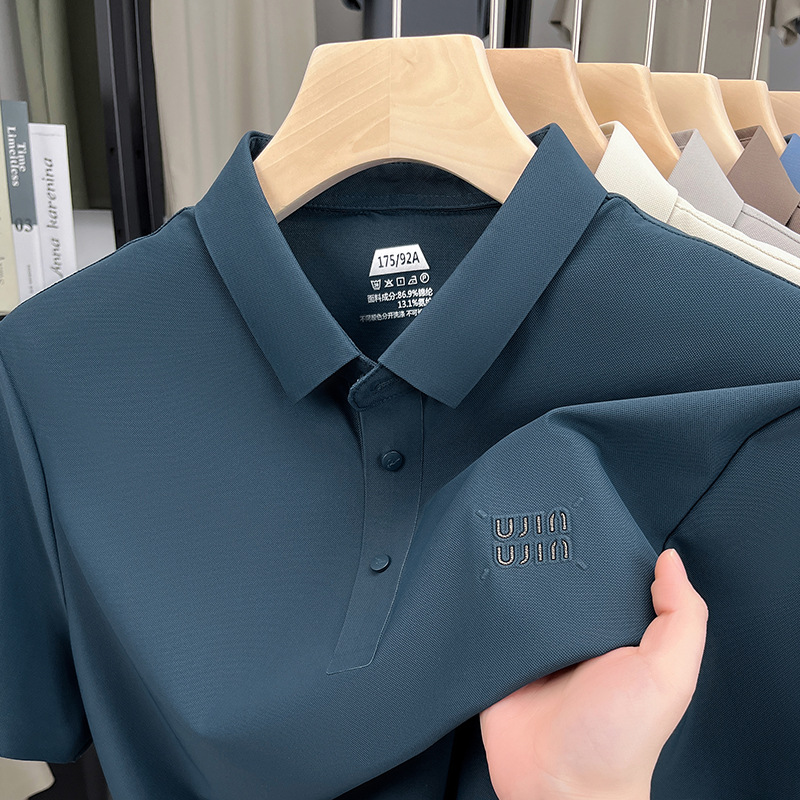 여름 새로운 아이스 실크 반팔 남성 티셔츠 traceless 나일론 냉각 쿨 센스 비즈니스 고급 남성 티셔츠 여름스토어 가기