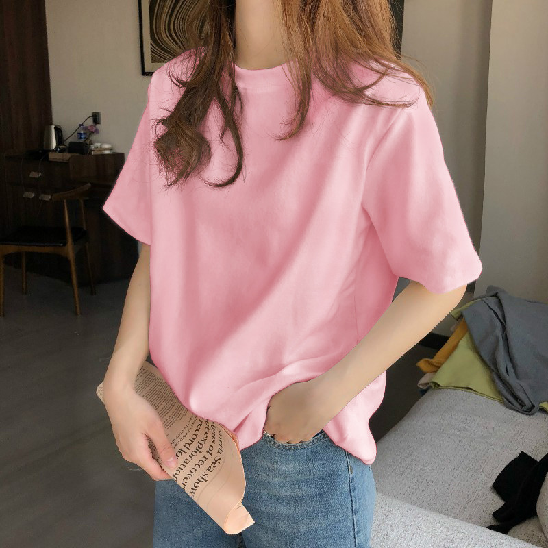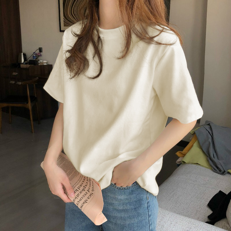 어깨 반팔 흰색 티셔츠 여성용 둥근 목 여름 봄과 가을 내베이스 셔츠 느슨한 플러스 사이즈 티셔츠 심플 탑스토어 가기