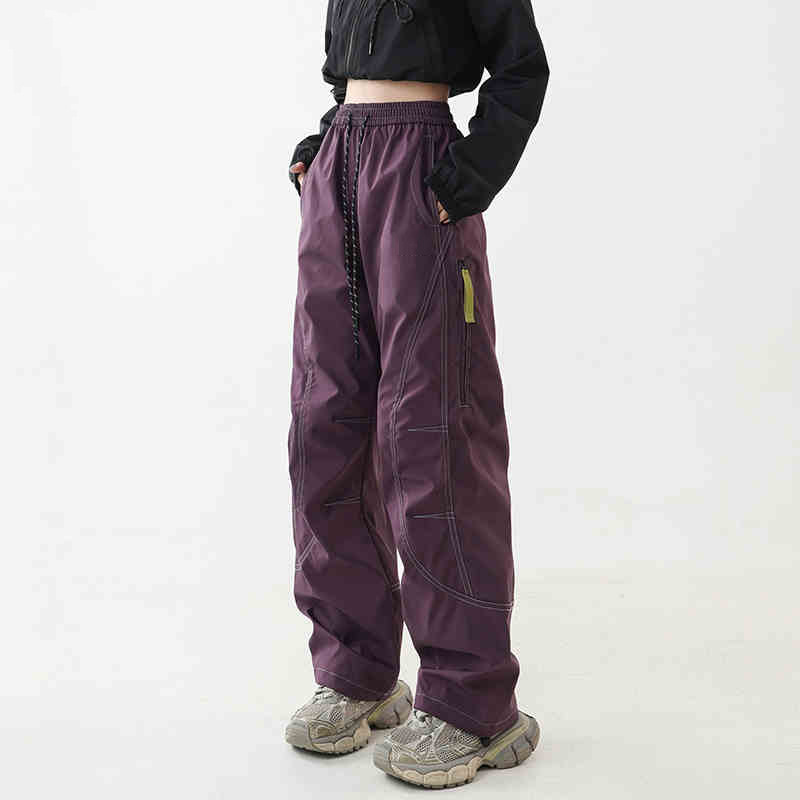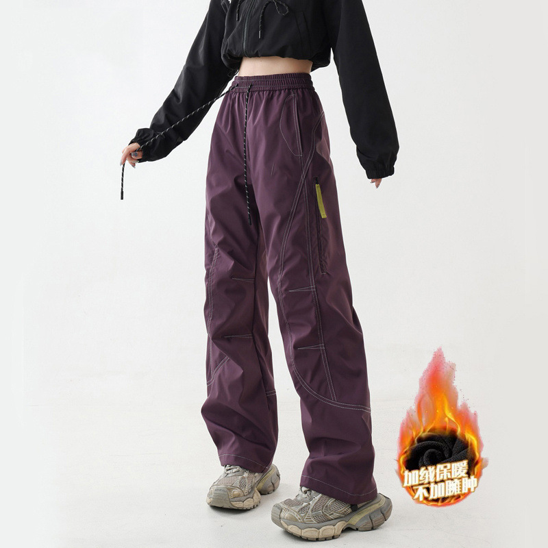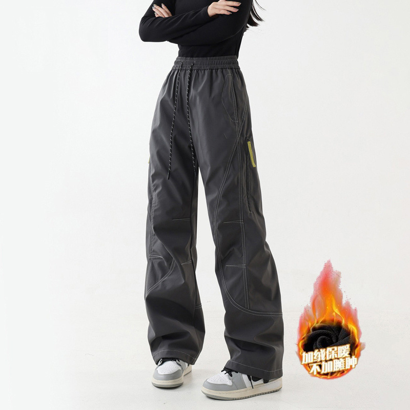 플리스 안감 낙하산부복 스타일 팬츠 남녀공용 2025 가을 겨울 야외 방풍 방수 스트레이트 와이드 레그 등산 작업복 바지스토어 가기