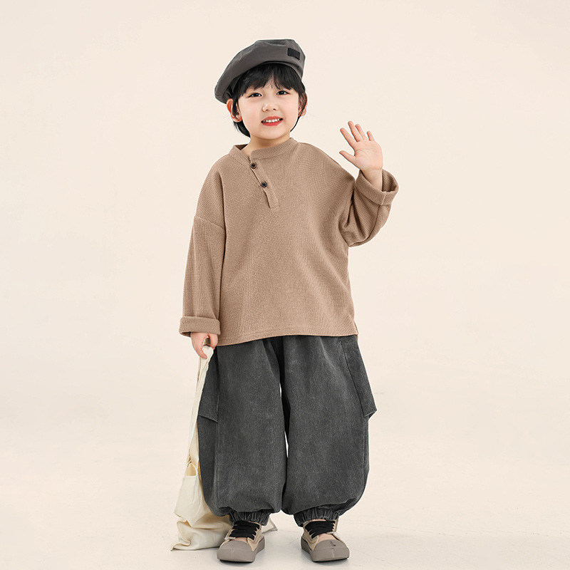 창구아동복 남아 티셔츠 긴팔 봄옷 신상 아동 한국 스타일 사선 카라 상의 유아동 봄가을옷