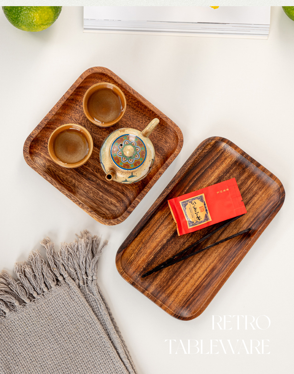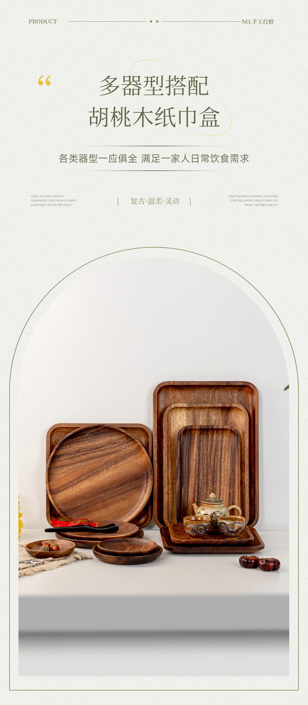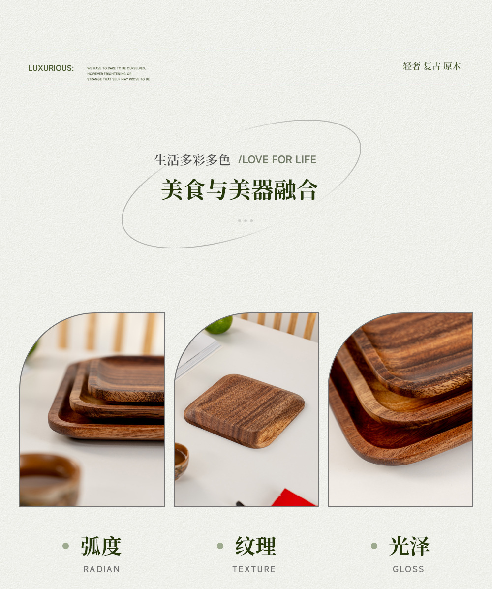 호두나무 접시 직사각형 나무 트레이 통나무 차 접시 식사 접시 간식 접시 통나무 공예품