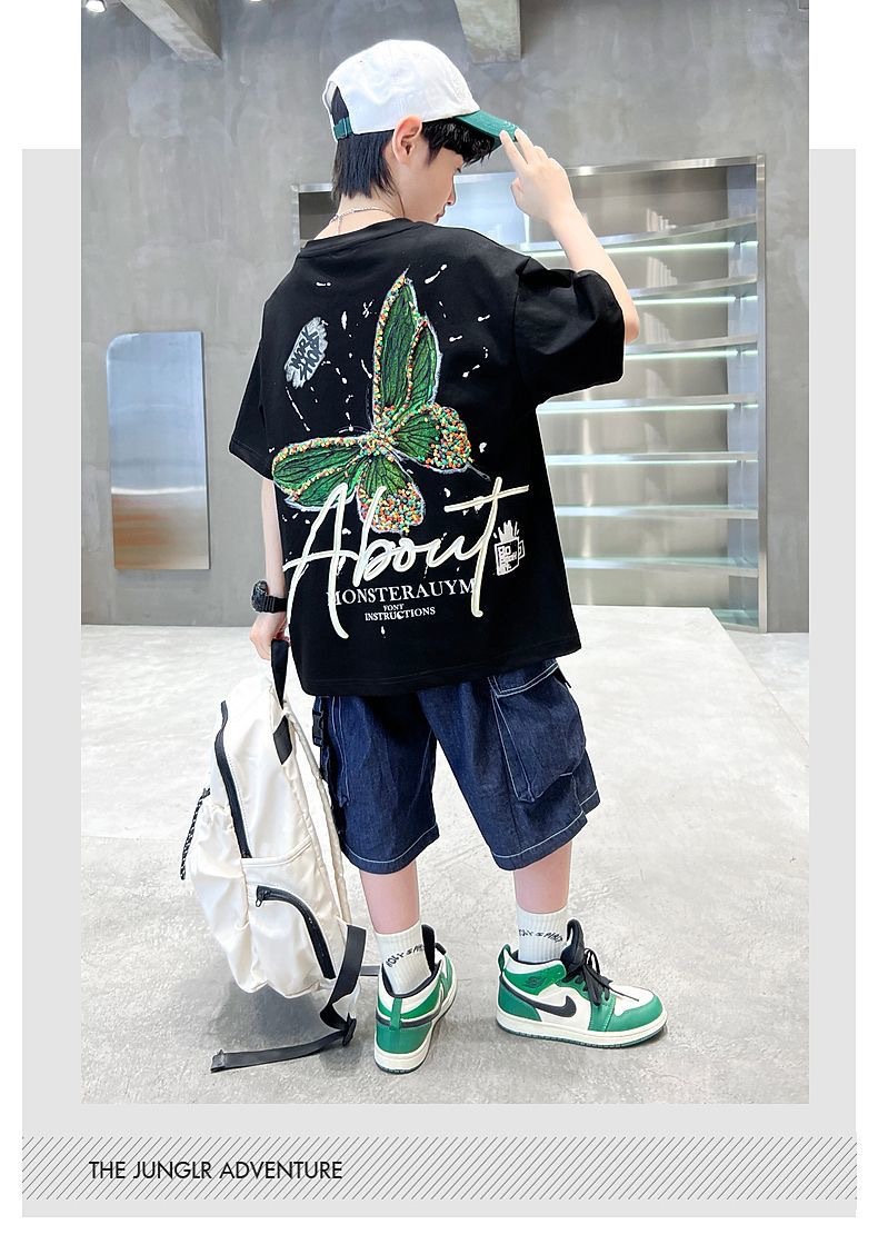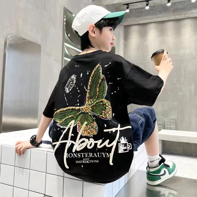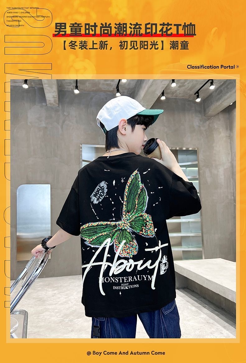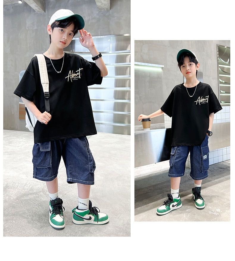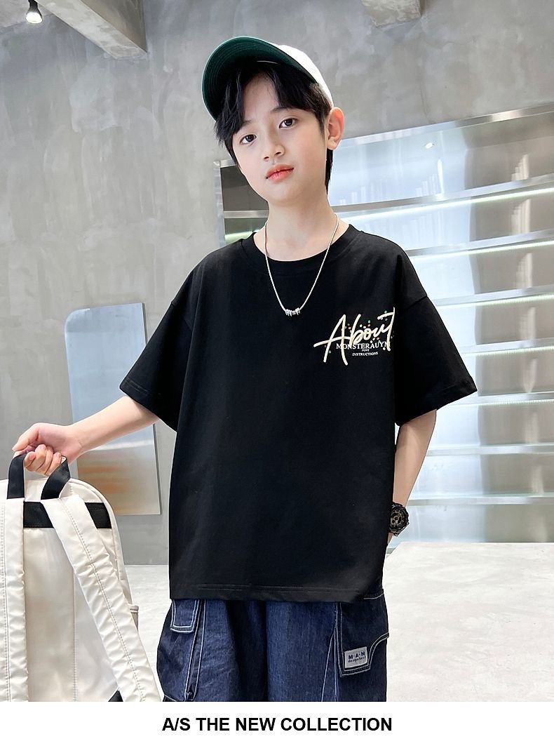 남자들의 여름 코튼 티셔츠 2025 새로운 반팔 유행 어린이 빅 보이 핫 스타일 트렌디 온라인 인기 스타일스토어 가기